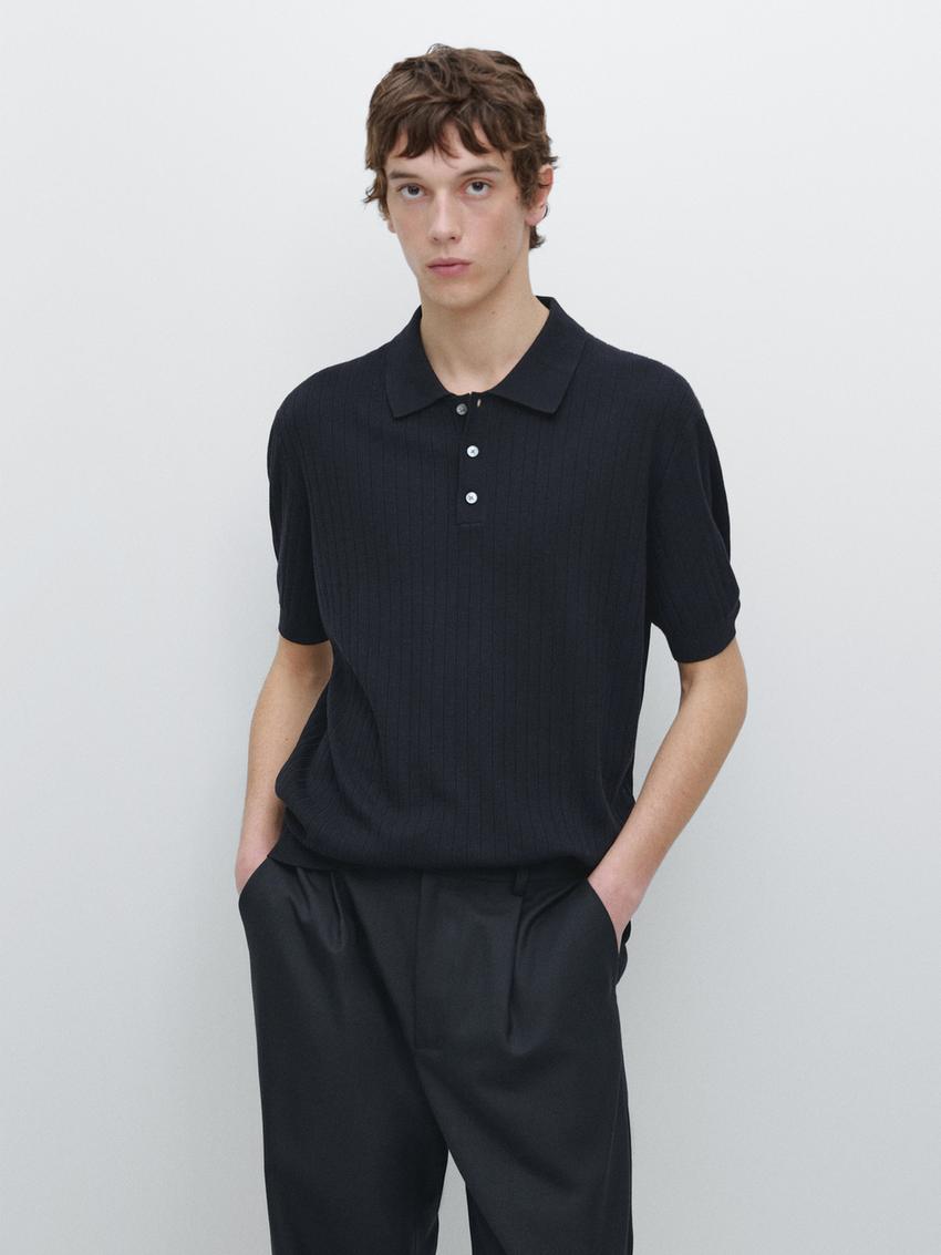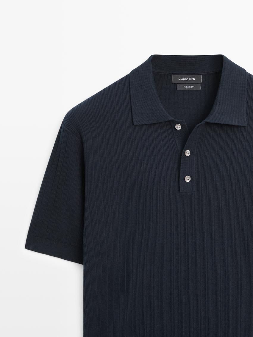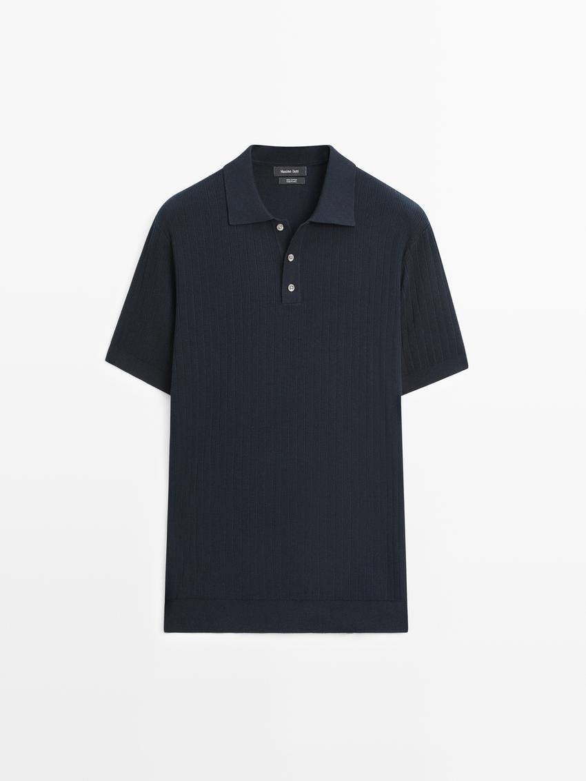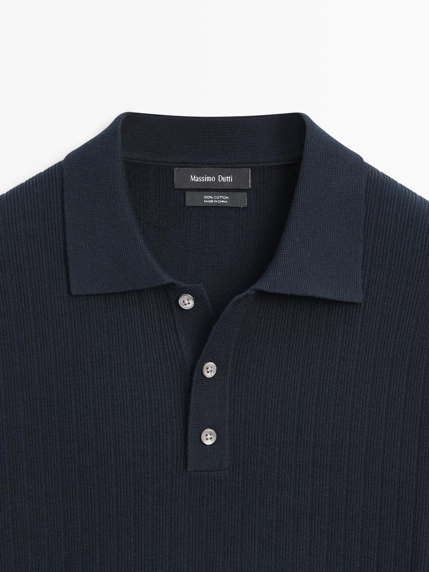 Massimo Dutti Поло из хлопковой трикотажной резинки, темно-синий