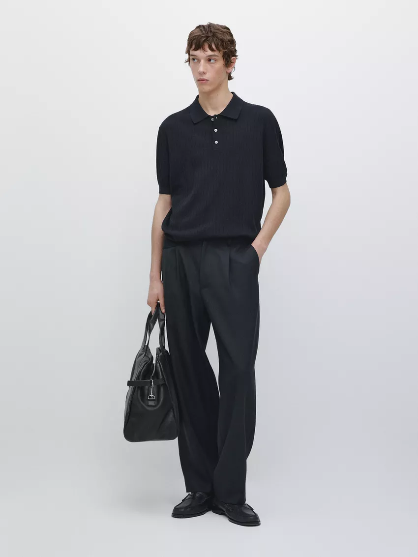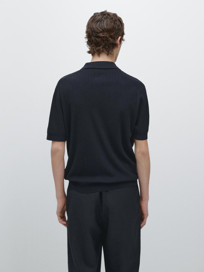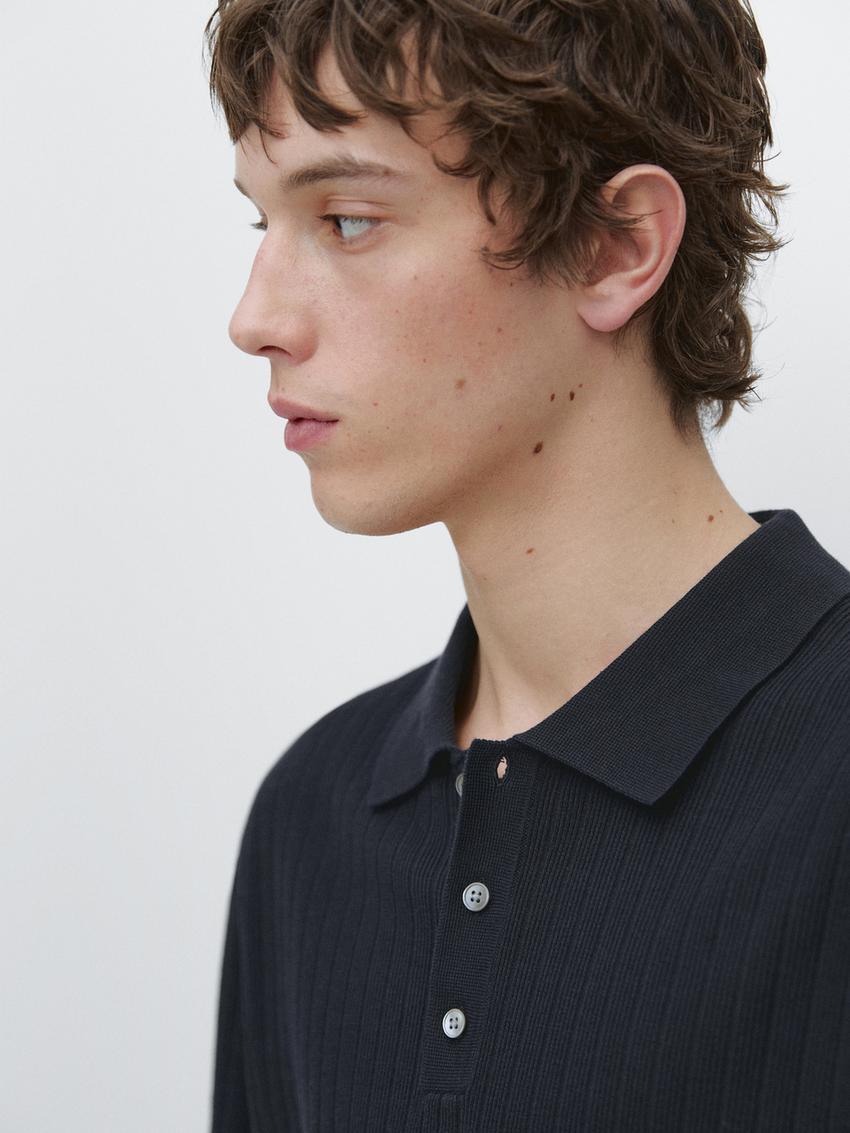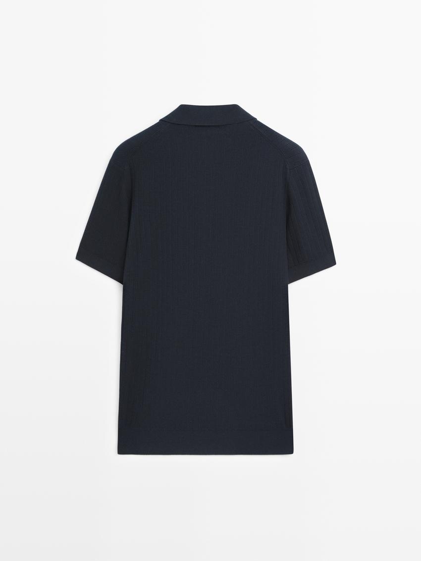 Massimo Dutti Поло из хлопковой трикотажной резинки, темно-синий