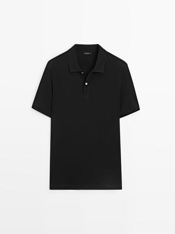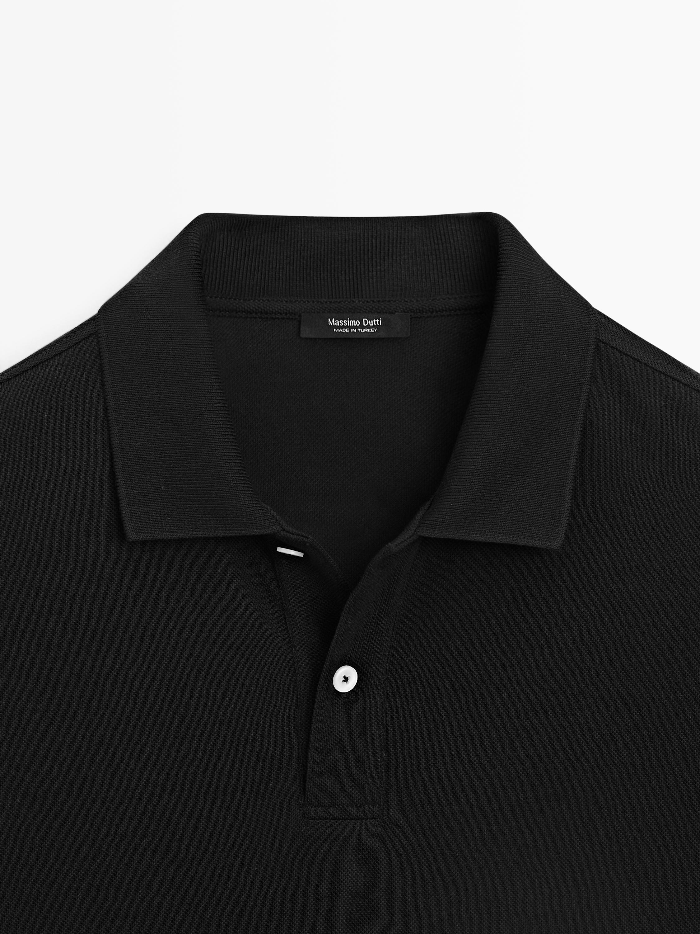 Massimo Dutti Поло из рельефного хлопка, черный