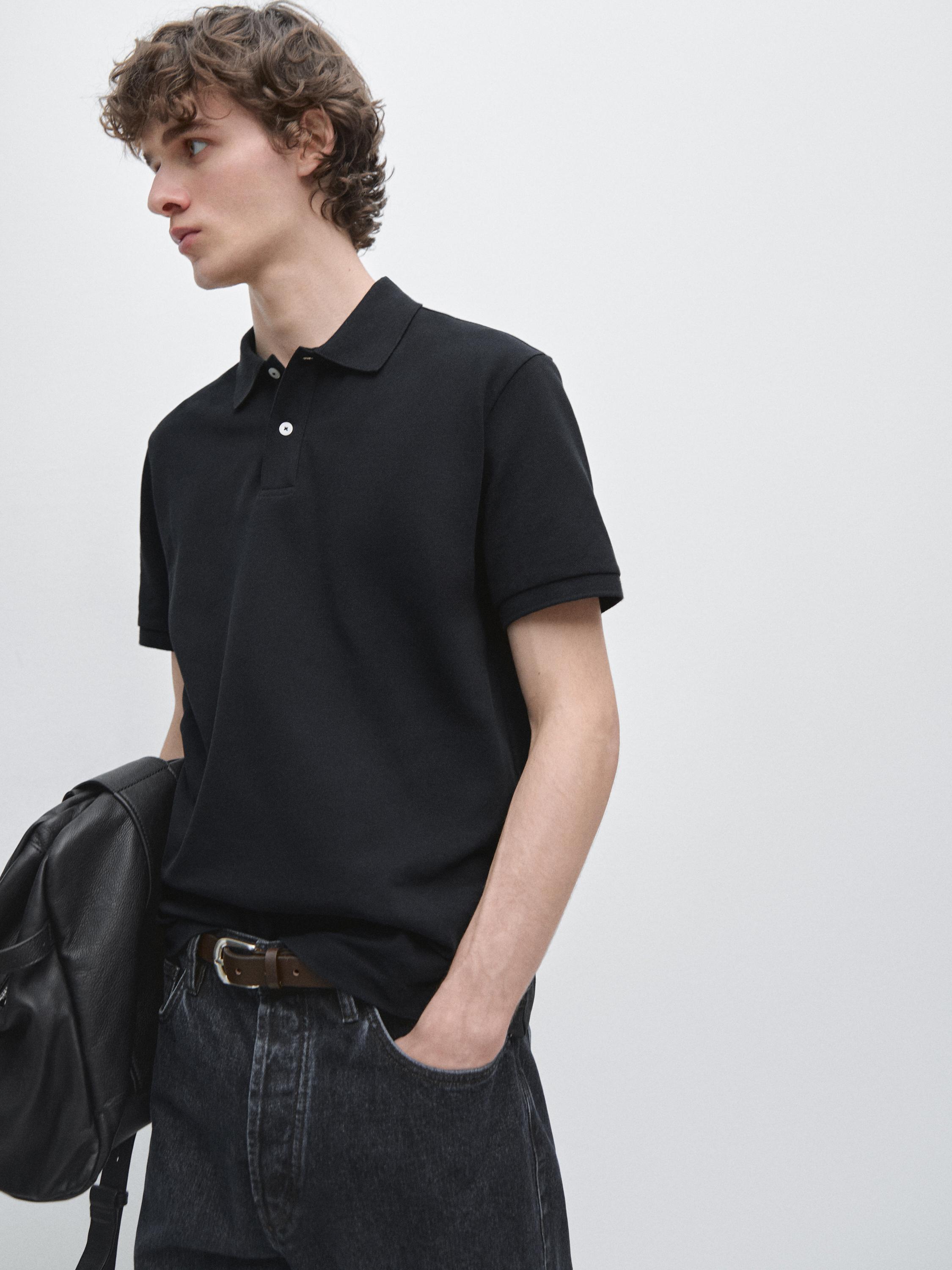Massimo Dutti Поло из рельефного хлопка, темно-синий