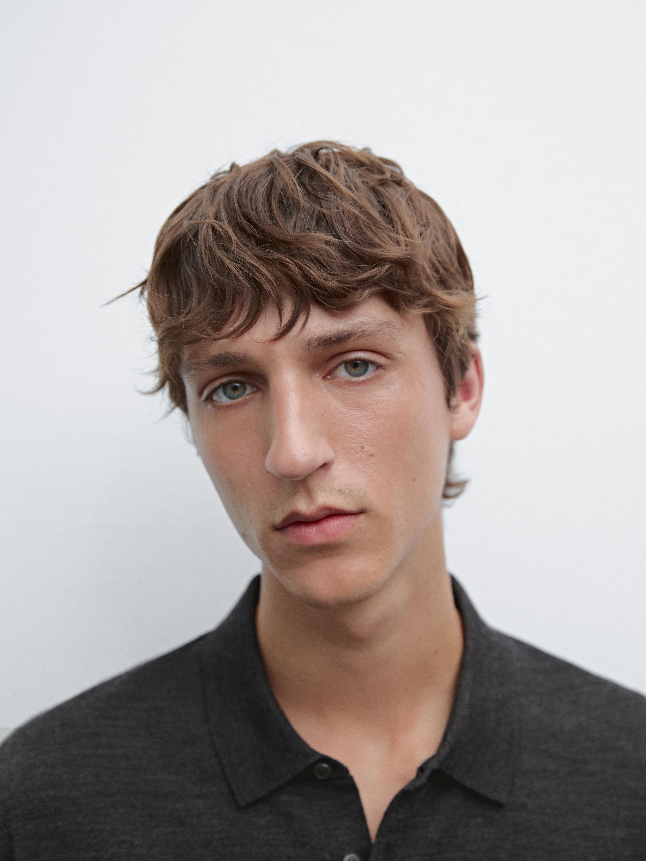 Поло из смесовой шерсти. Поло из смесовой шерсти. Короткие рукава. Воротник на пуговицах. Воротник-поло на пуговицах. Ткань из мериносовой шерсти.