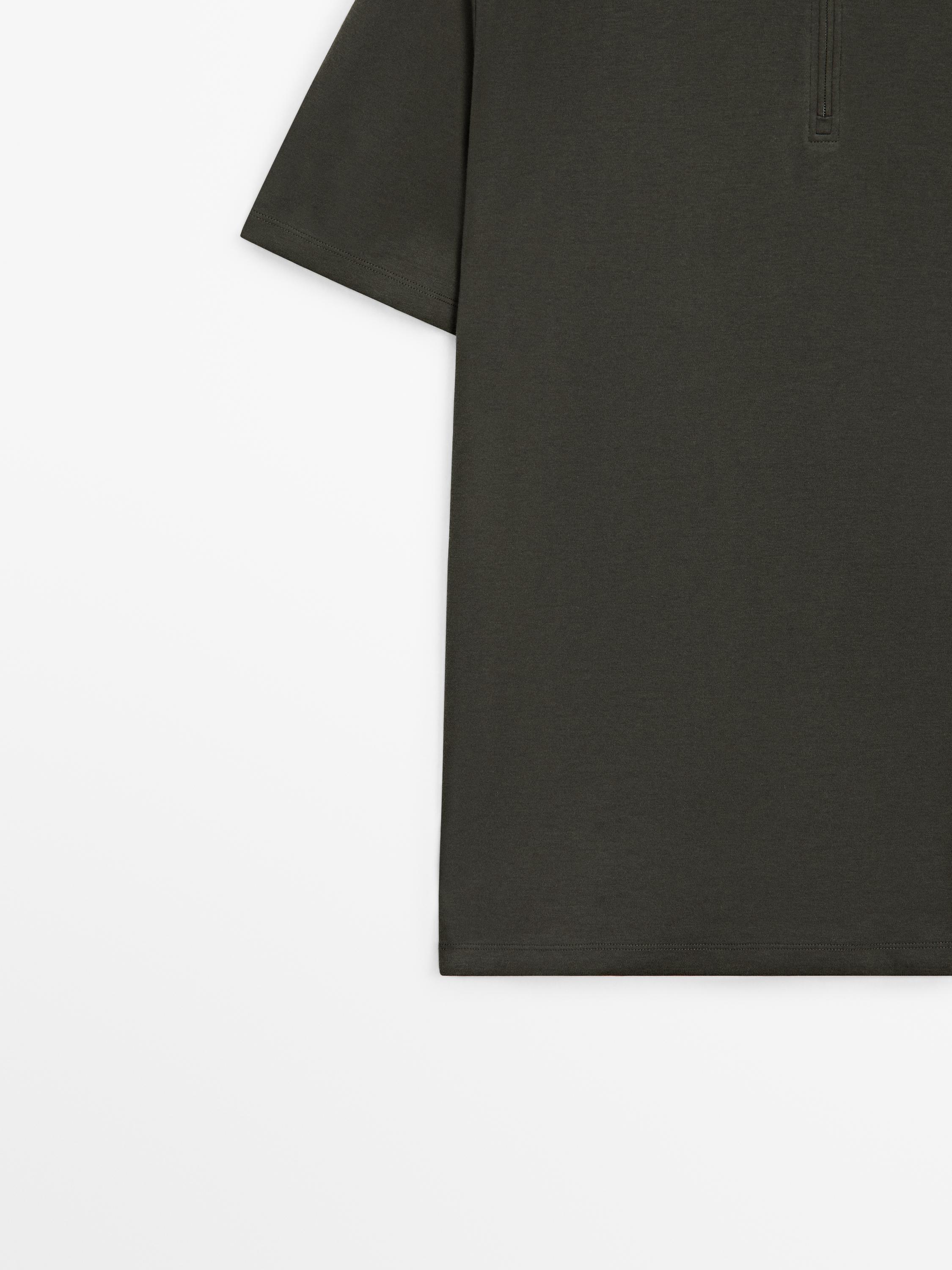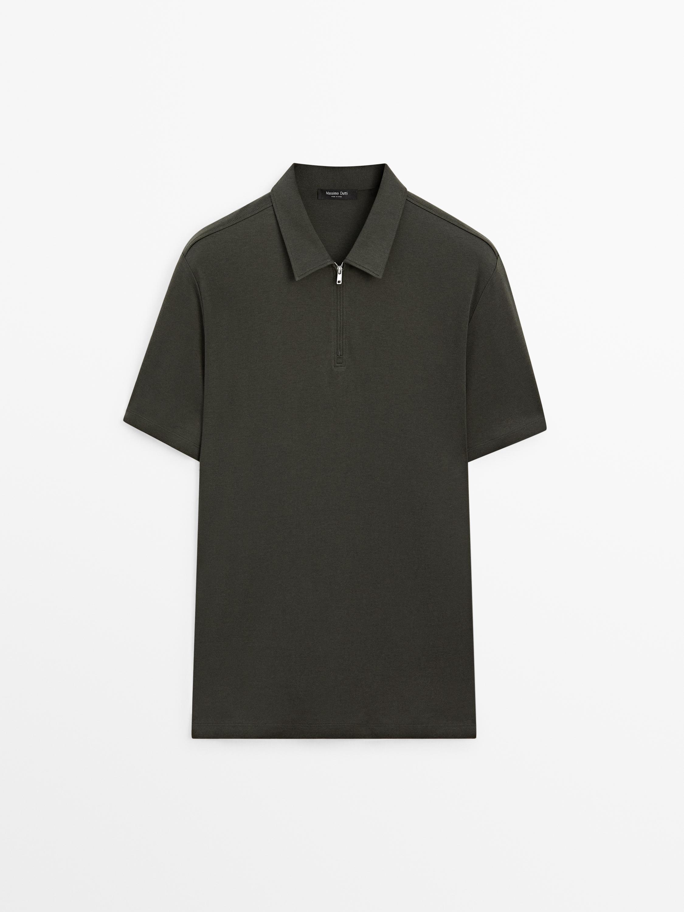 Massimo Dutti Поло с короткими рукавами и молнией, темно-зеленый