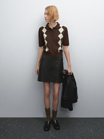 Massimo Dutti Поло с короткими рукавами и узором «ромбы», коричневый