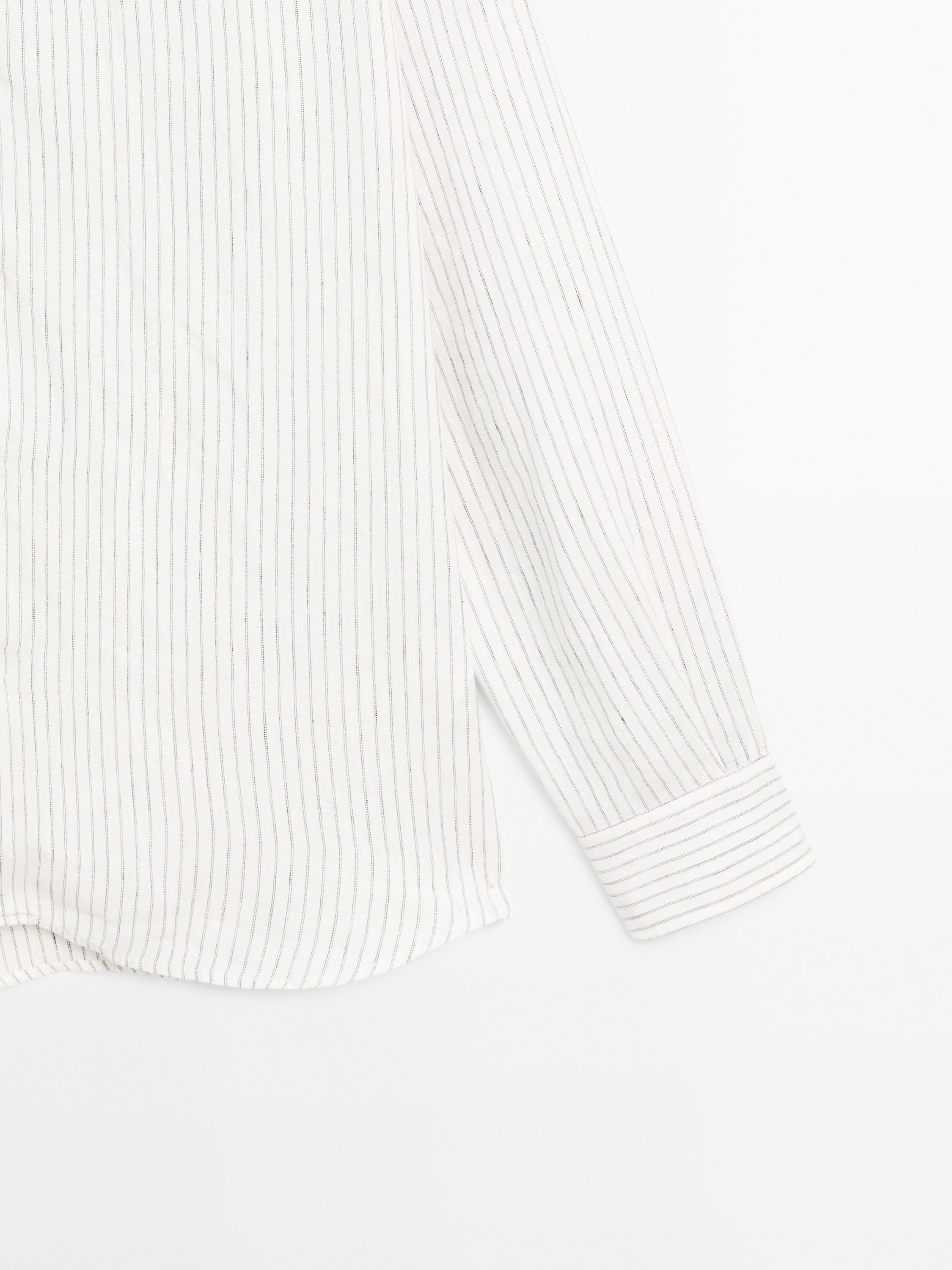 Massimo Dutti Полосатая льняная рубашка приталенного кроя, белый