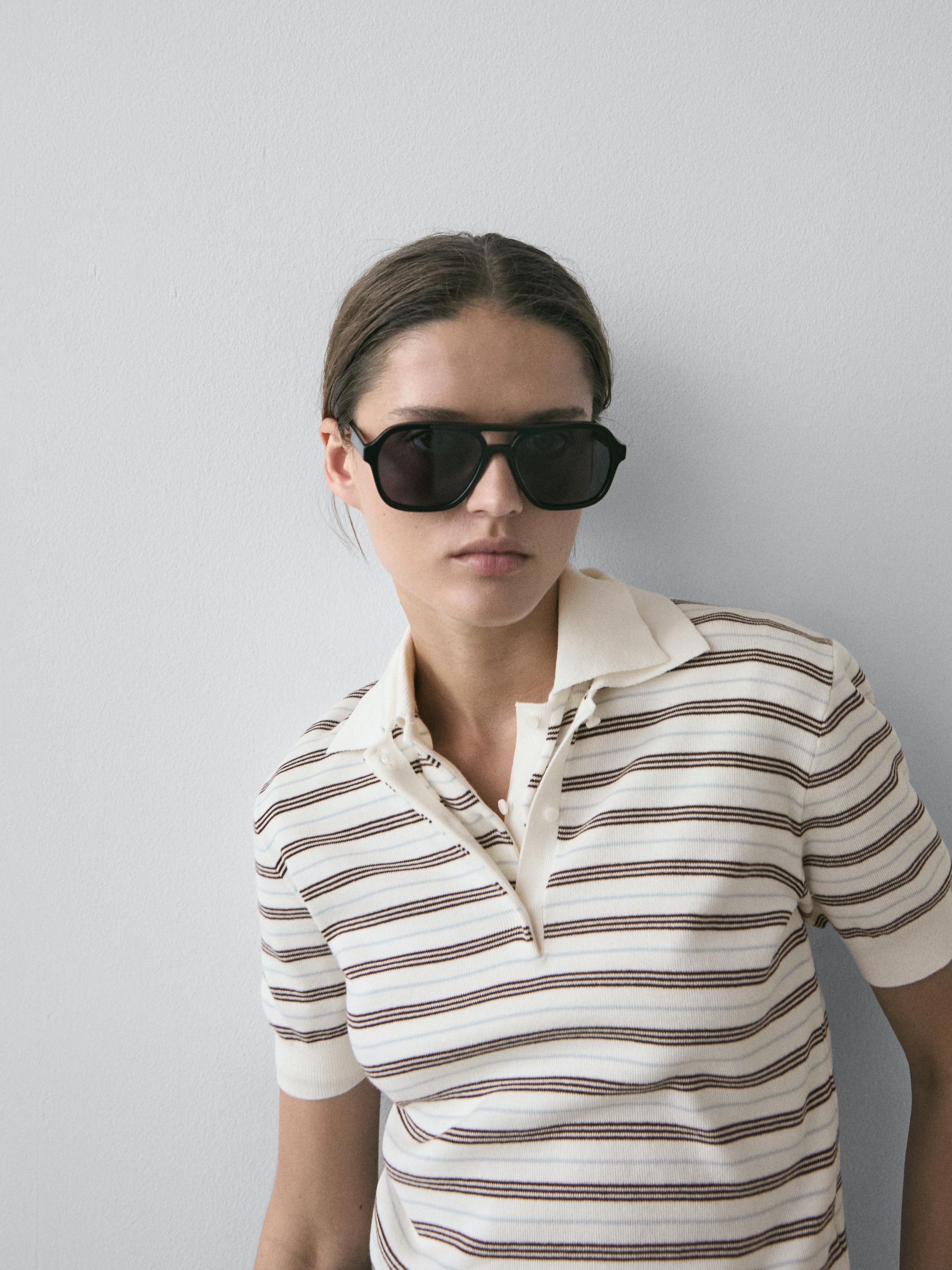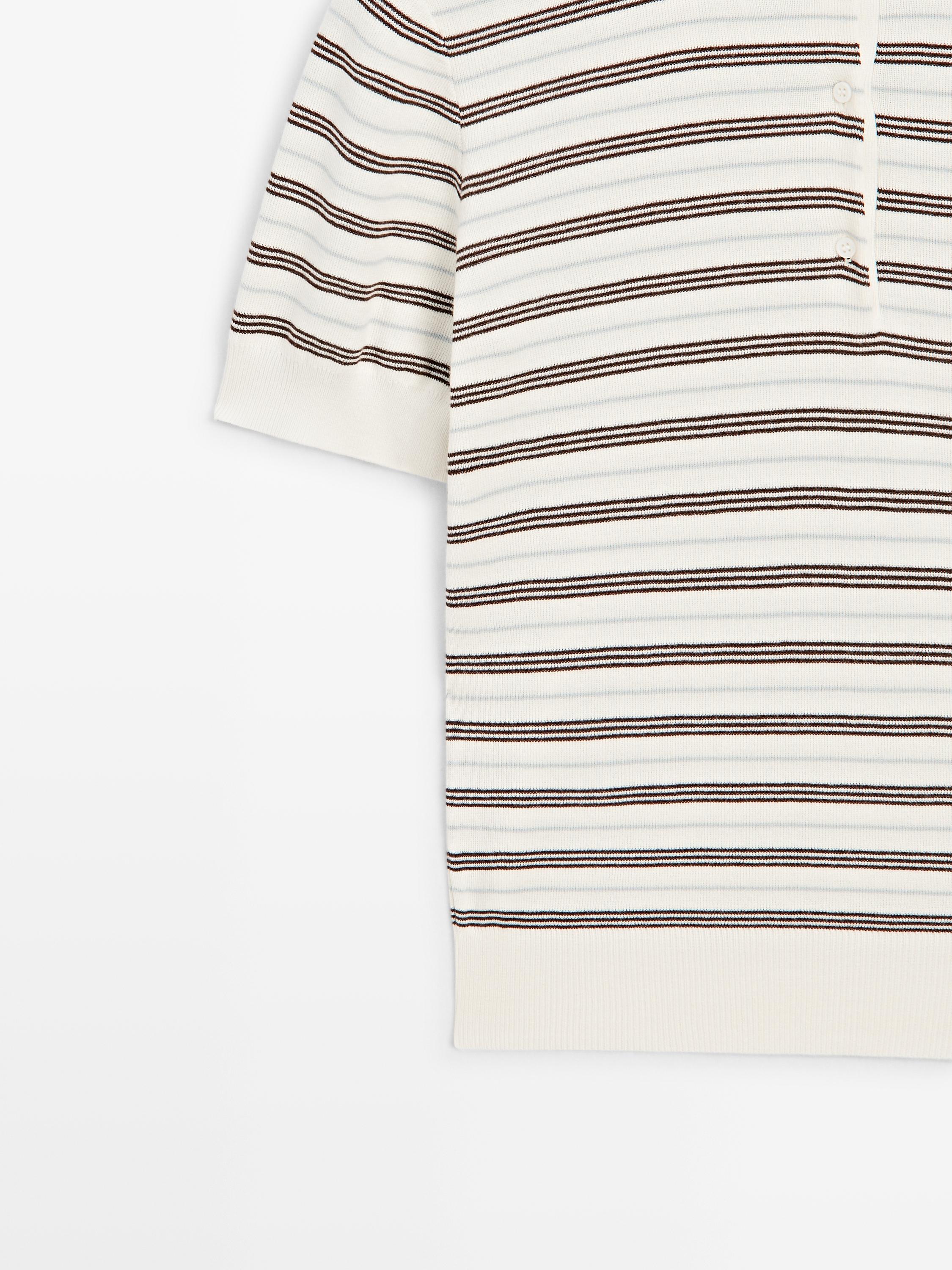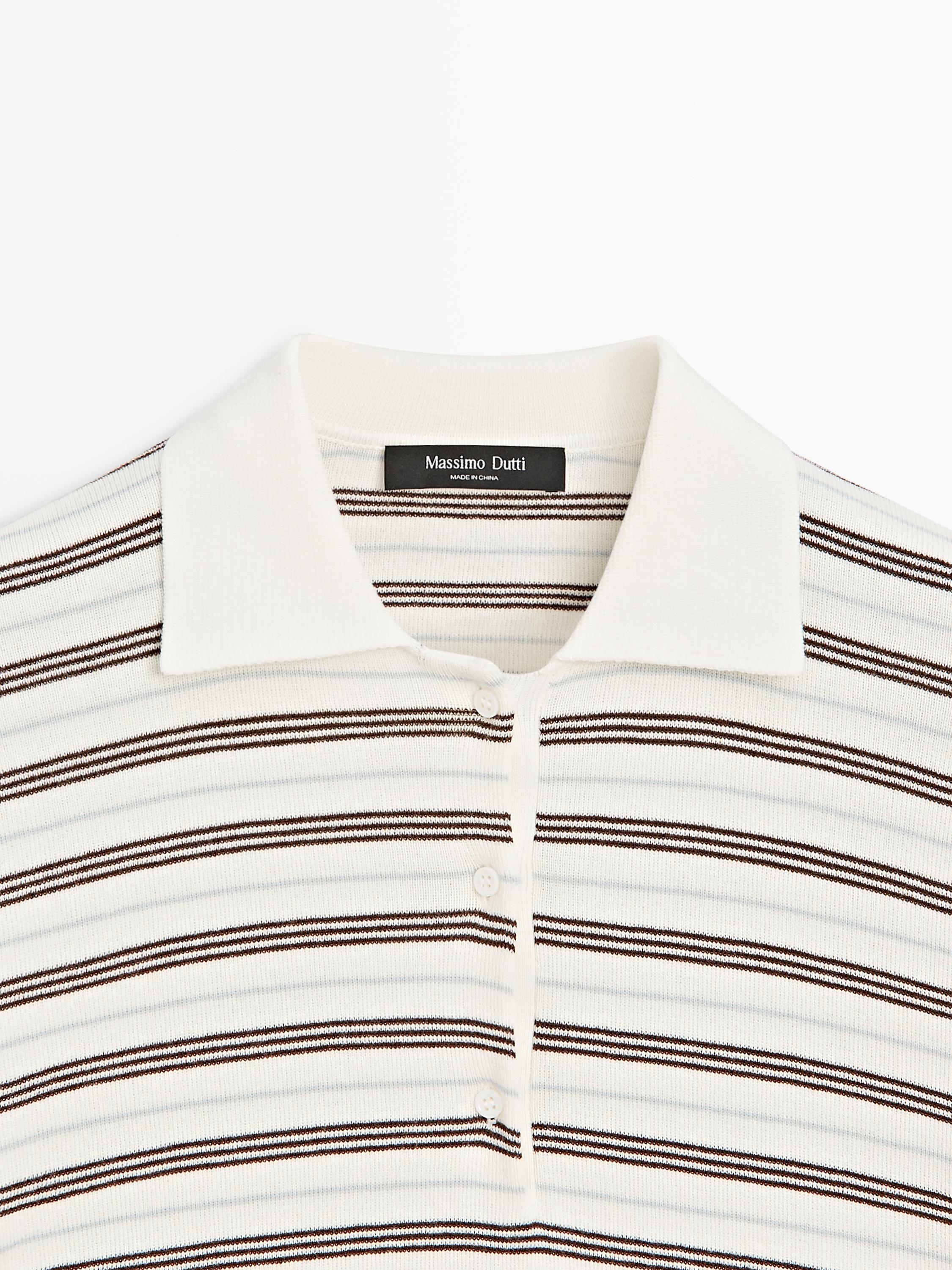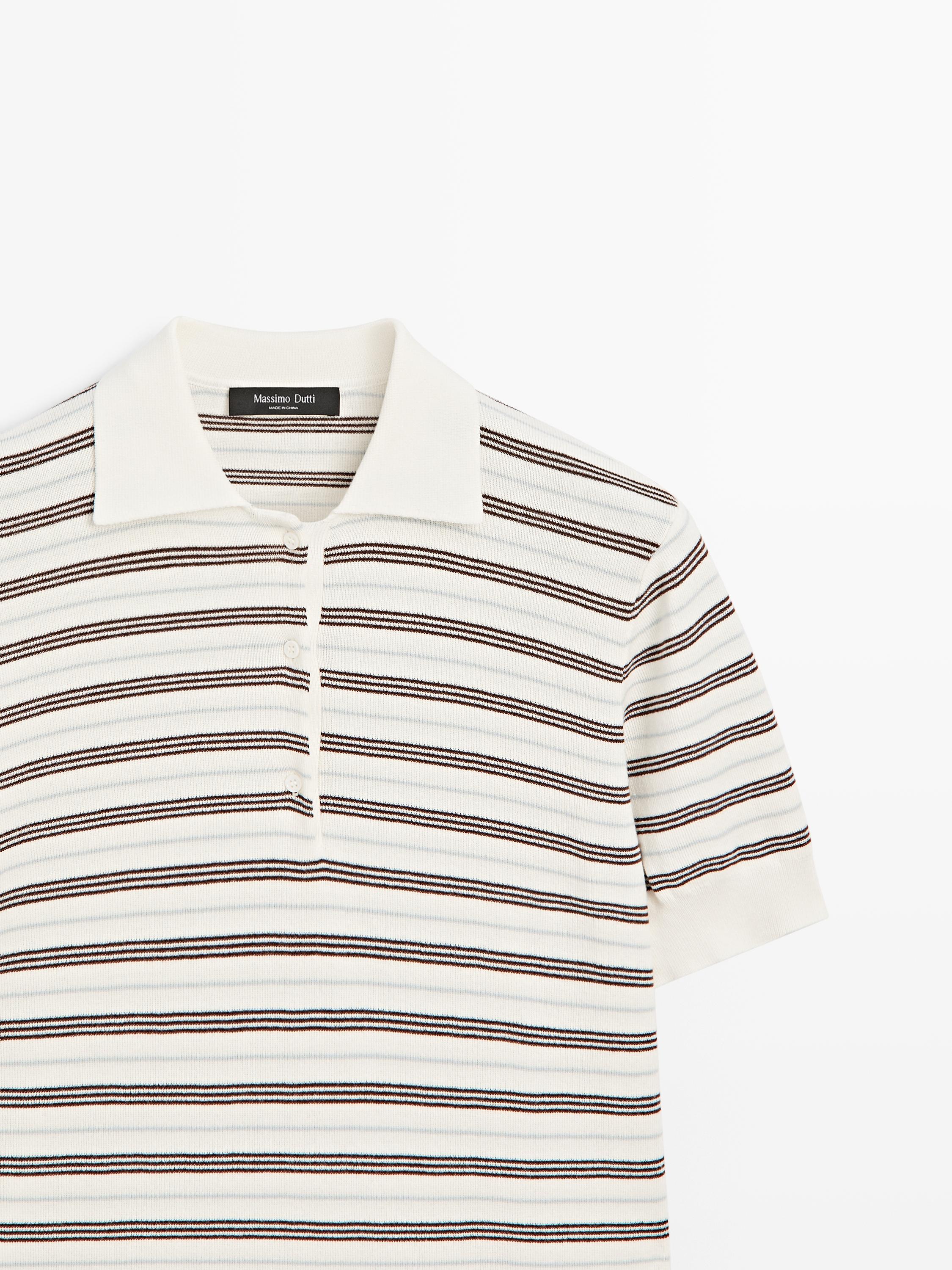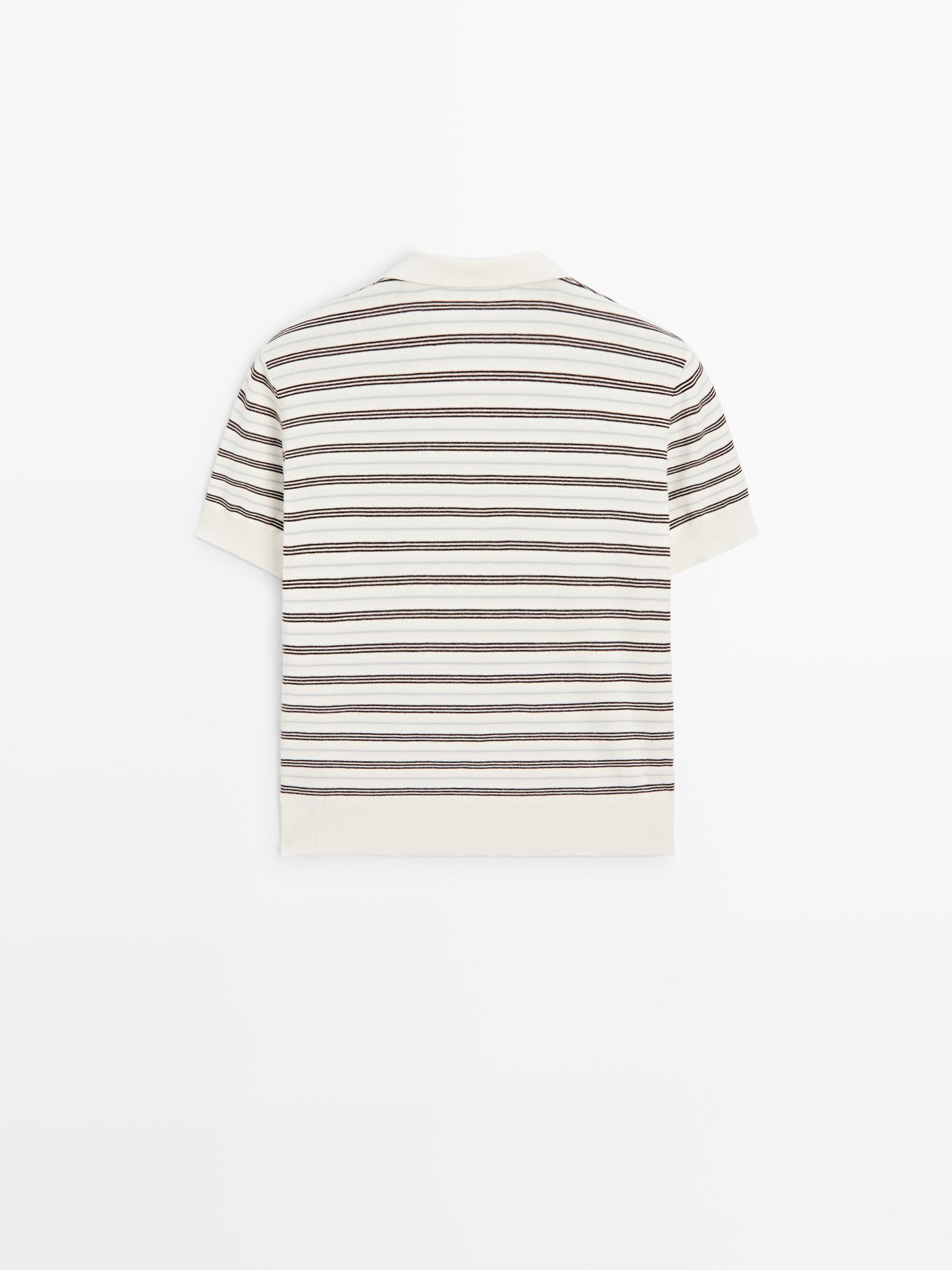 Massimo Dutti Полосатая рубашка-поло с коротким рукавом, кремовый