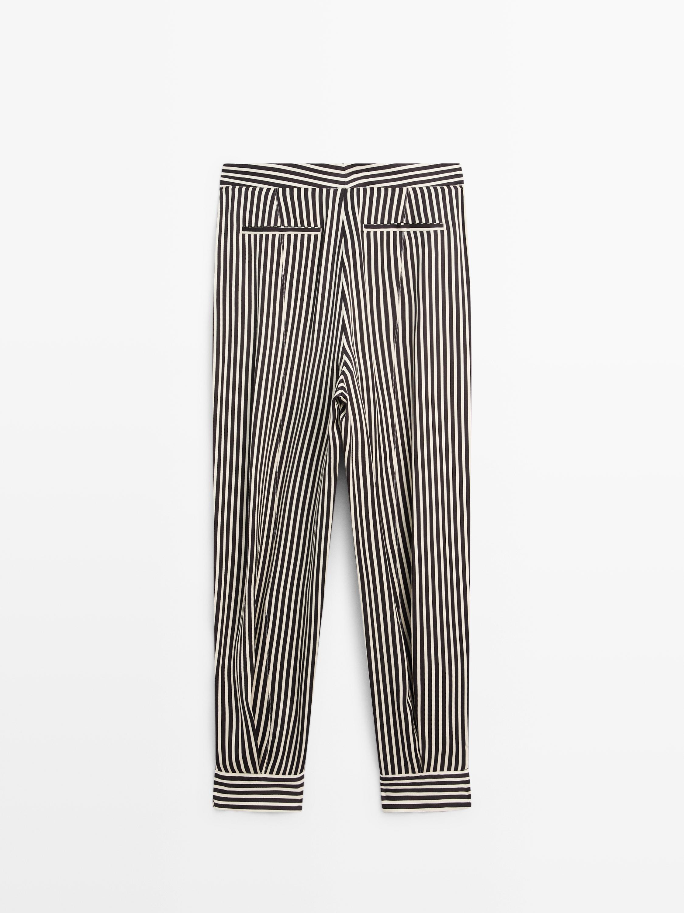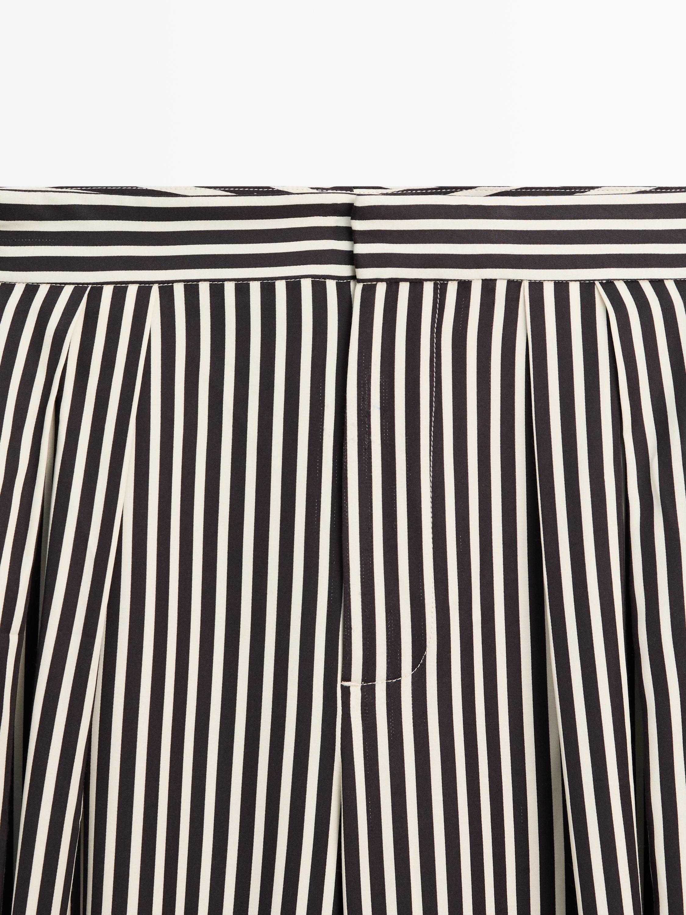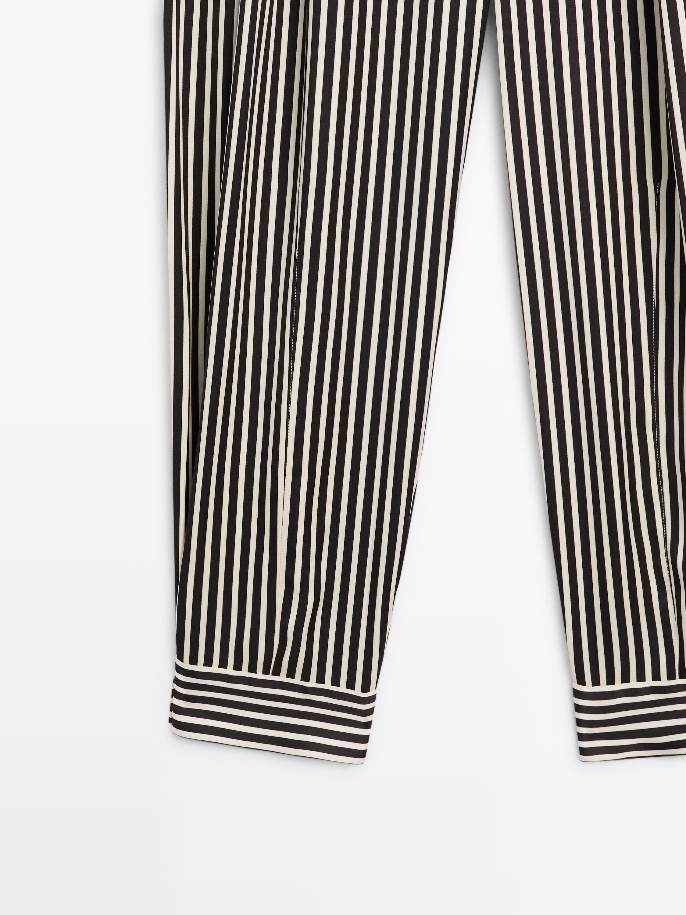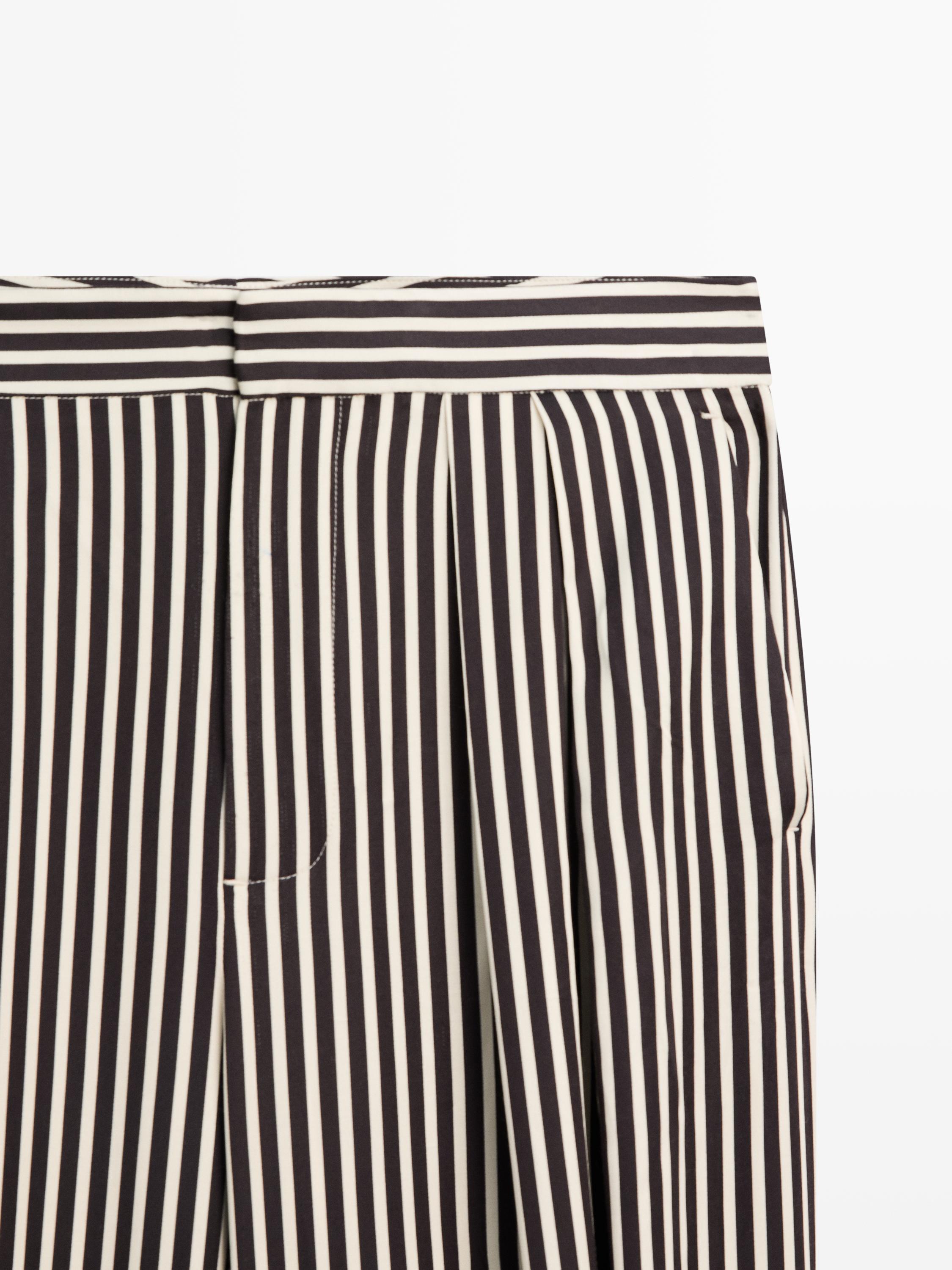Massimo Dutti Полосатые драпированные брюки с вытачками, черный/белый