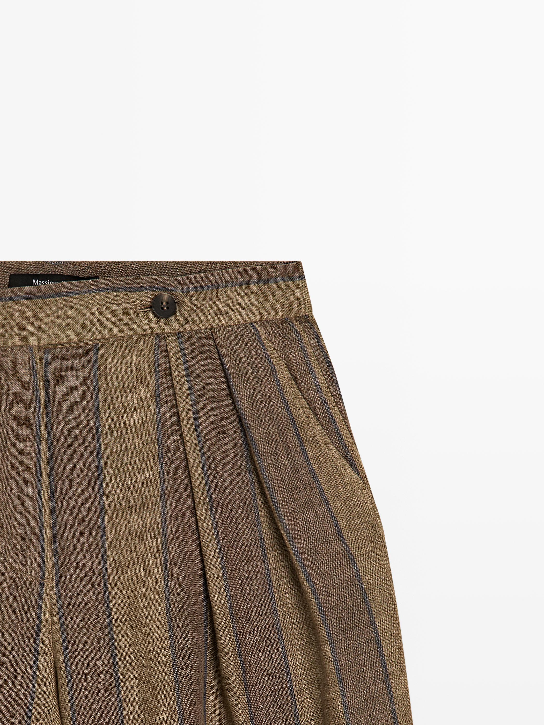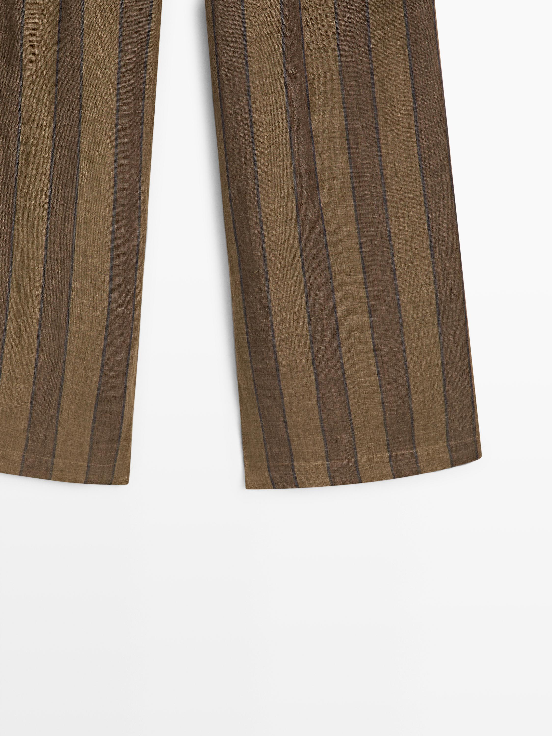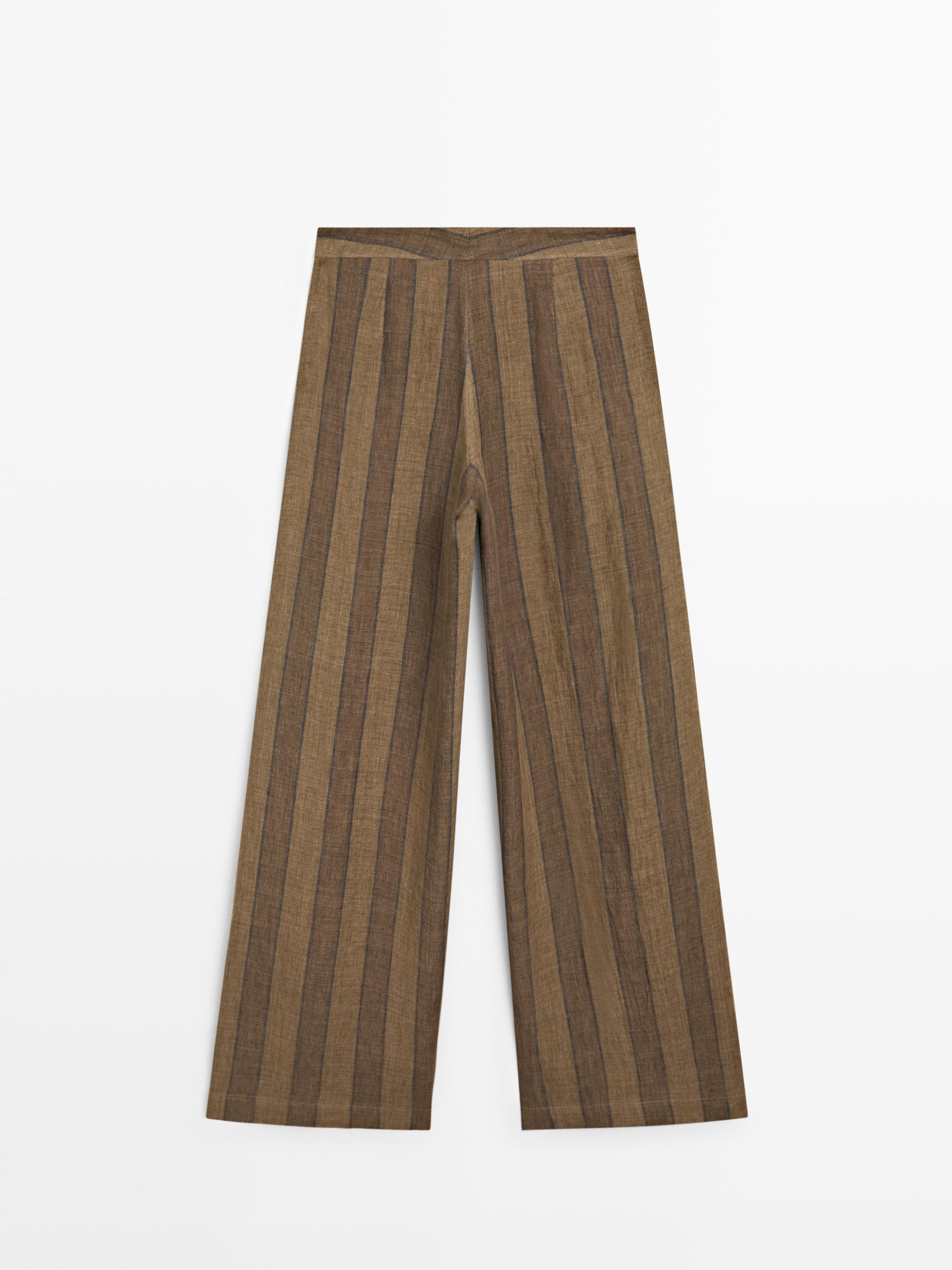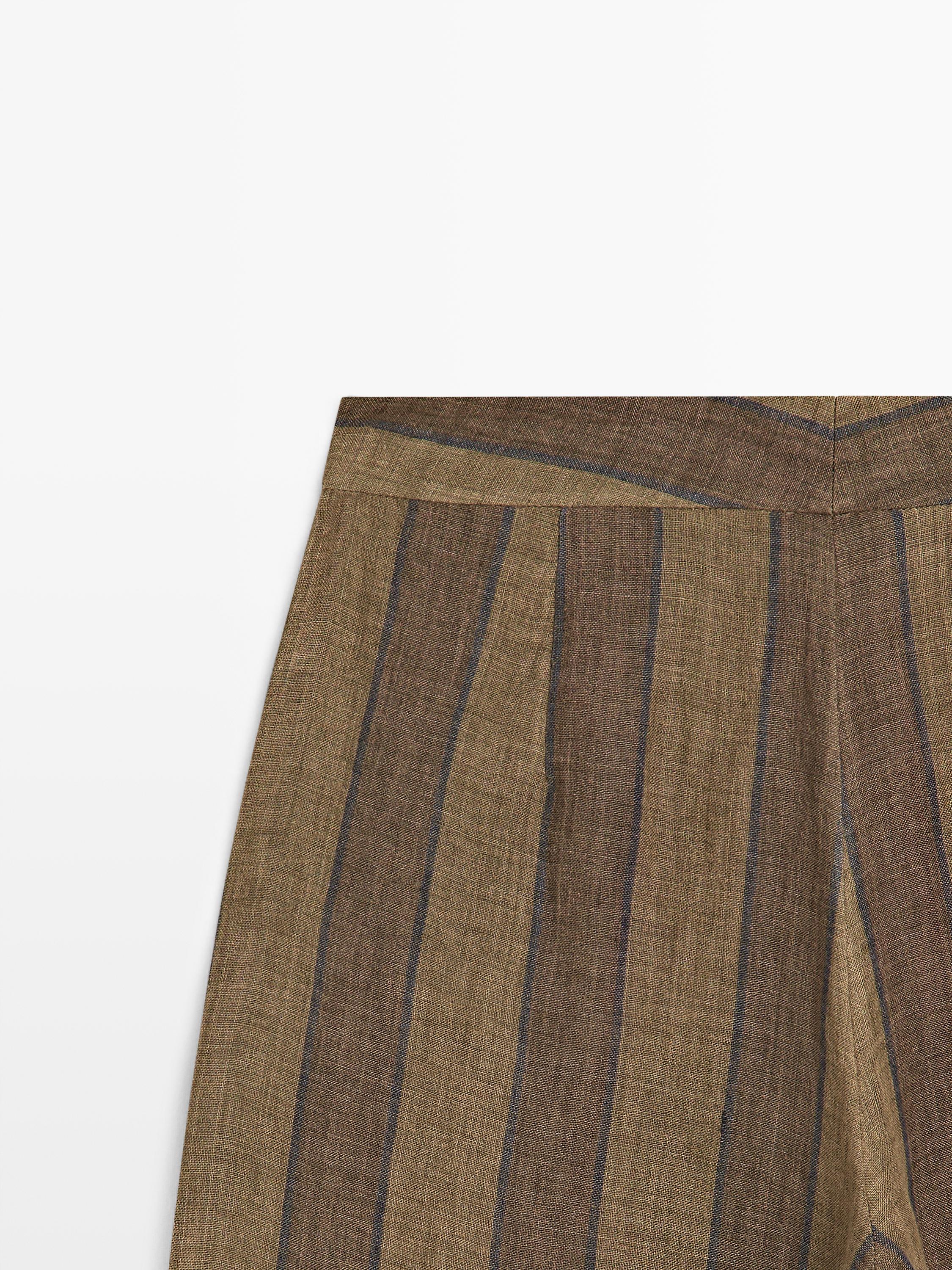 Massimo Dutti Полосатые льняные брюки с широкими штанинами, хаки