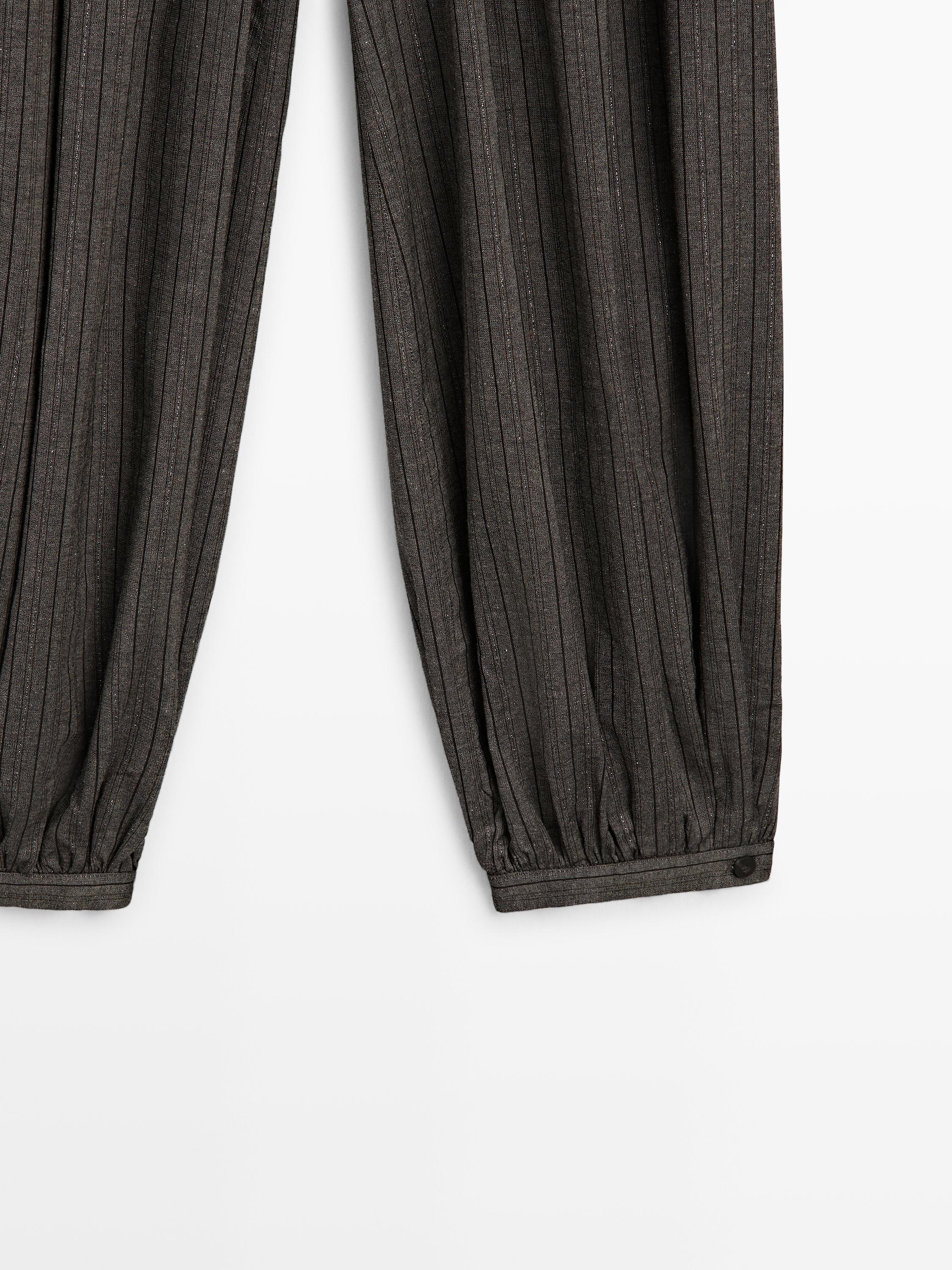 Massimo Dutti Полосатые струящиеся брюки-баллоны, средне-серый