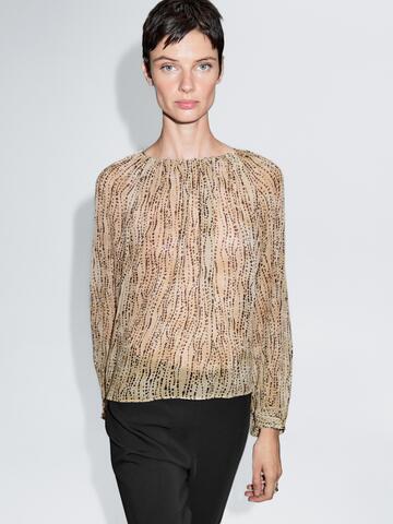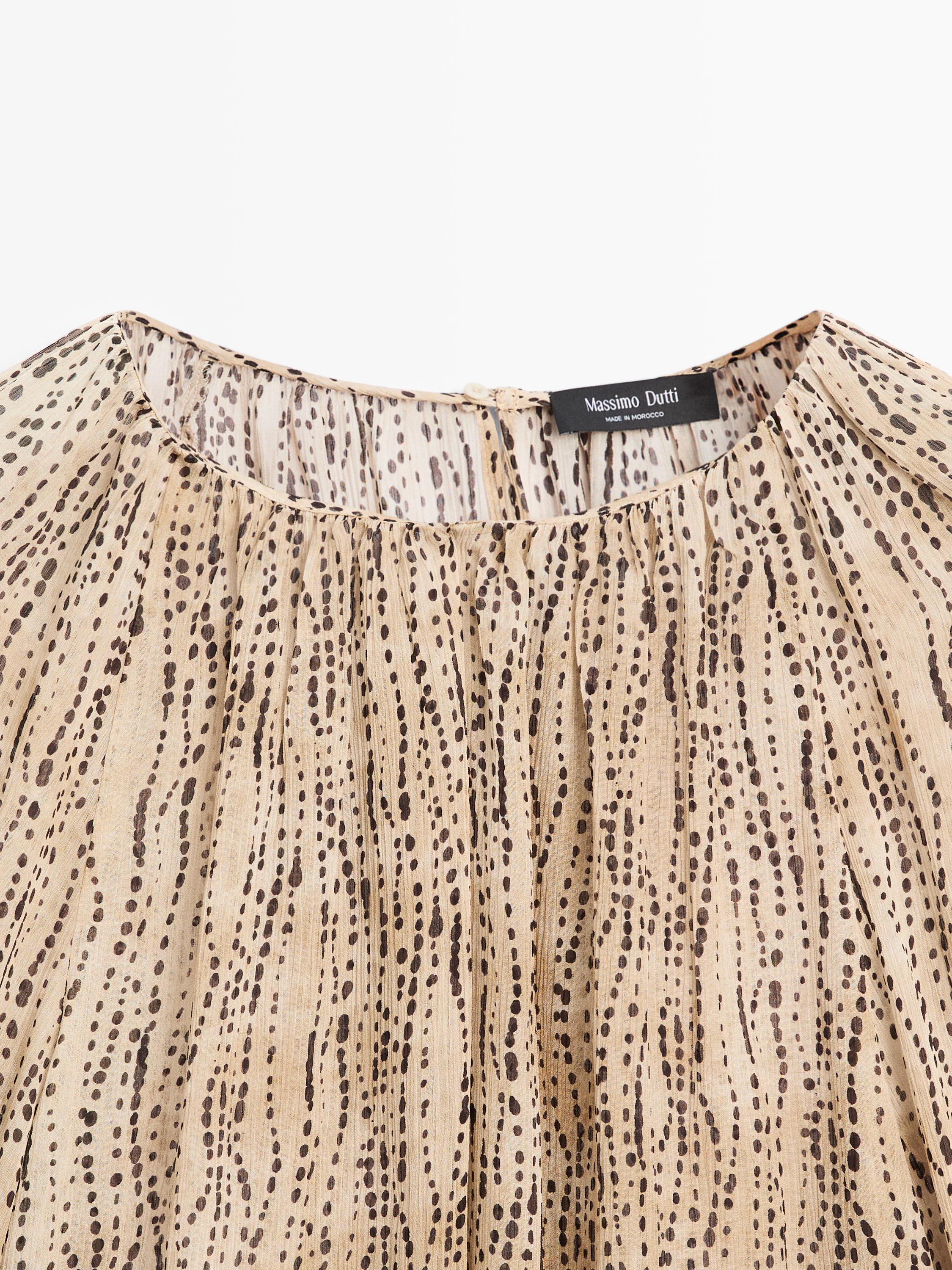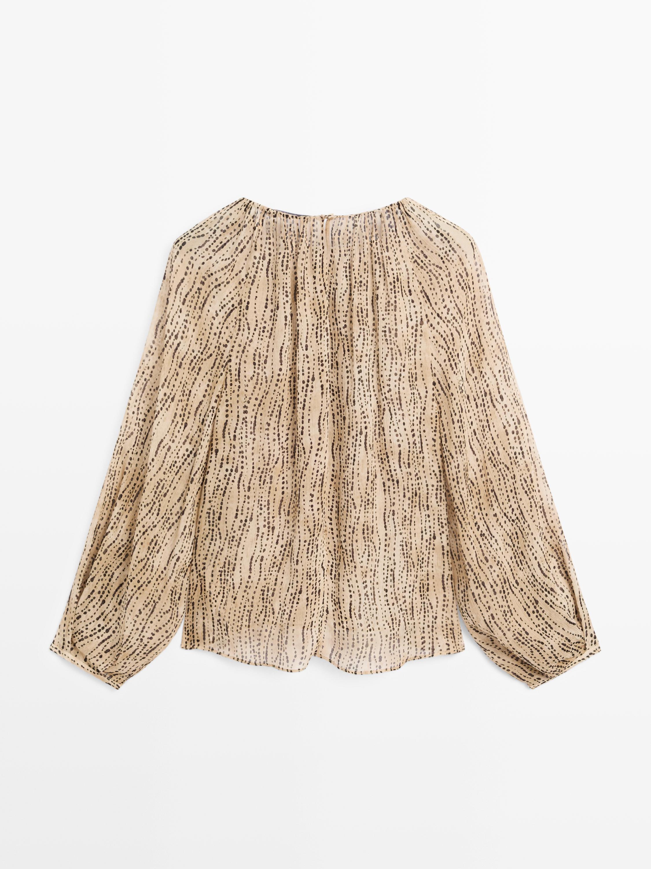 Massimo Dutti Полупрозрачная драпированная блузка, каменно-серый