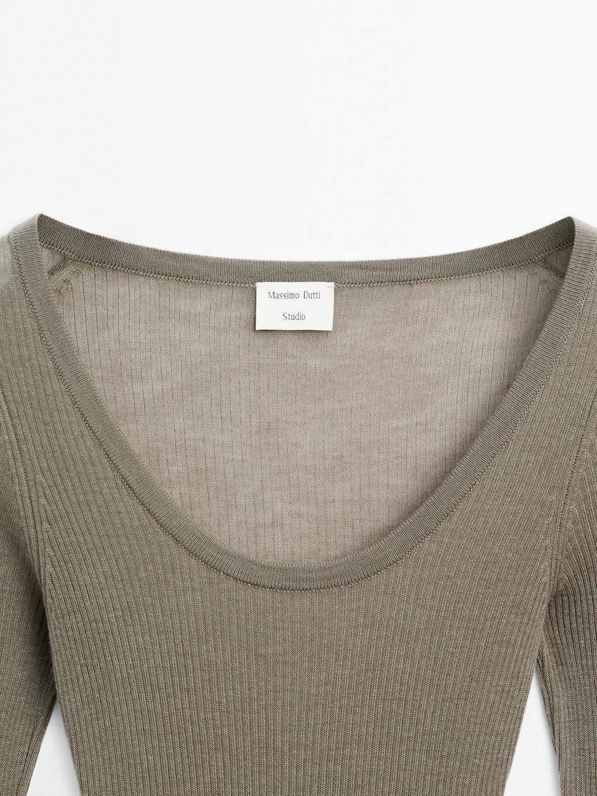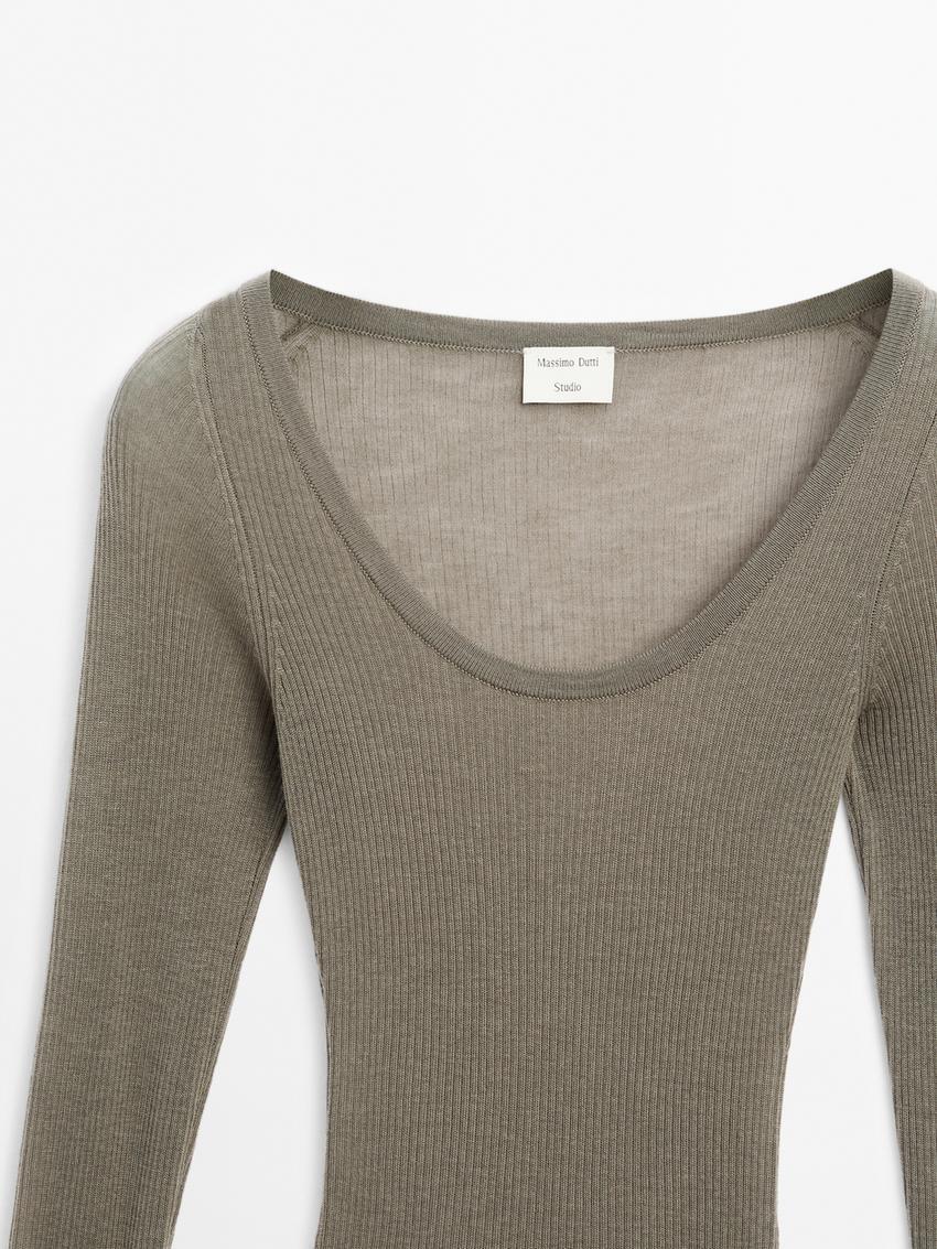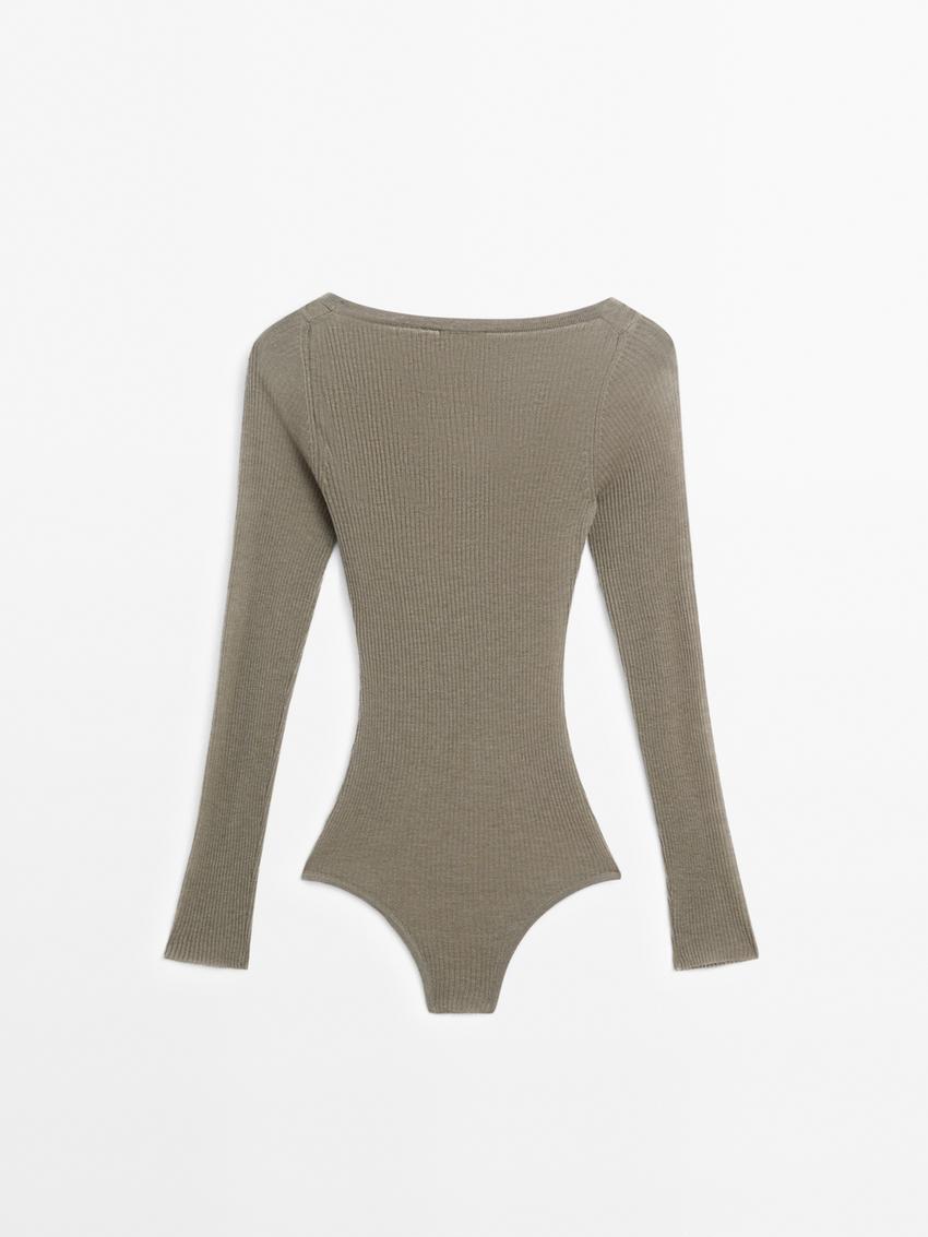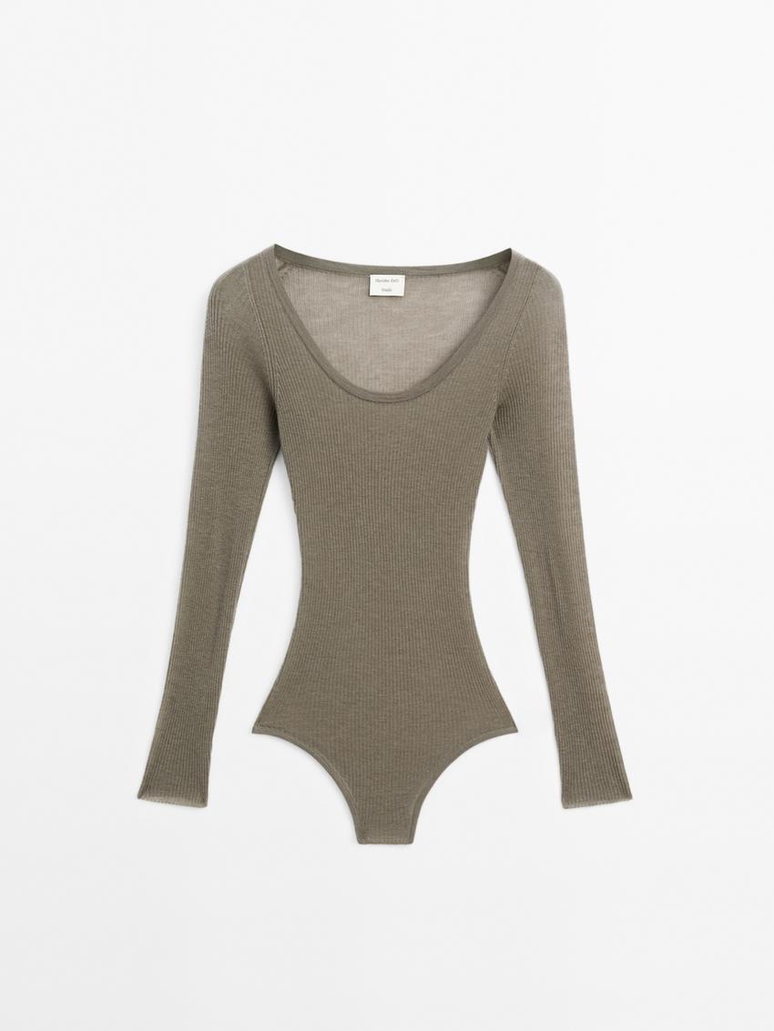 Massimo Dutti Полупрозрачный боди из 100% шерсти - STUDIO, зеленоватый