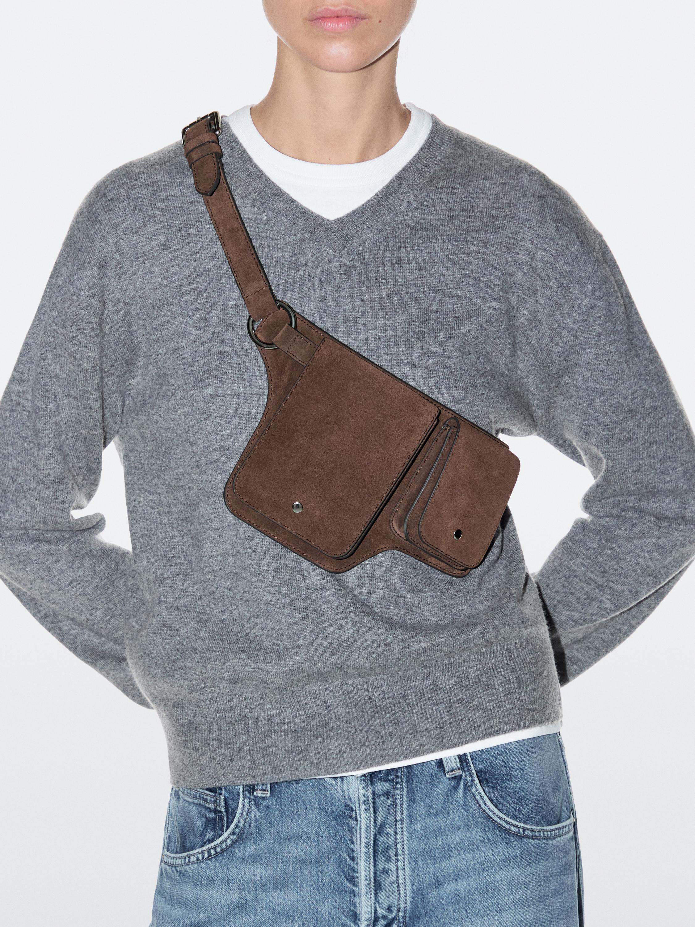 Massimo Dutti Поясная сумка из замши с двумя отделениями, норка