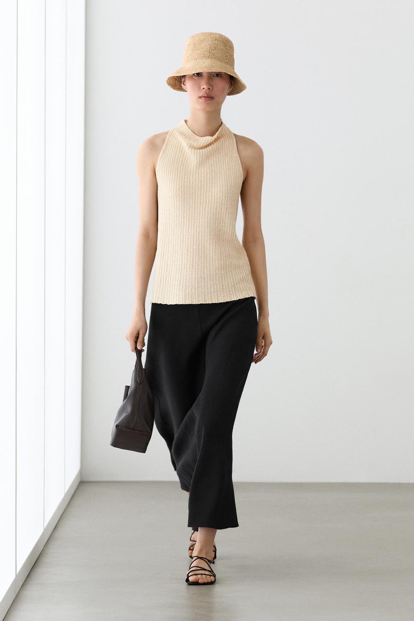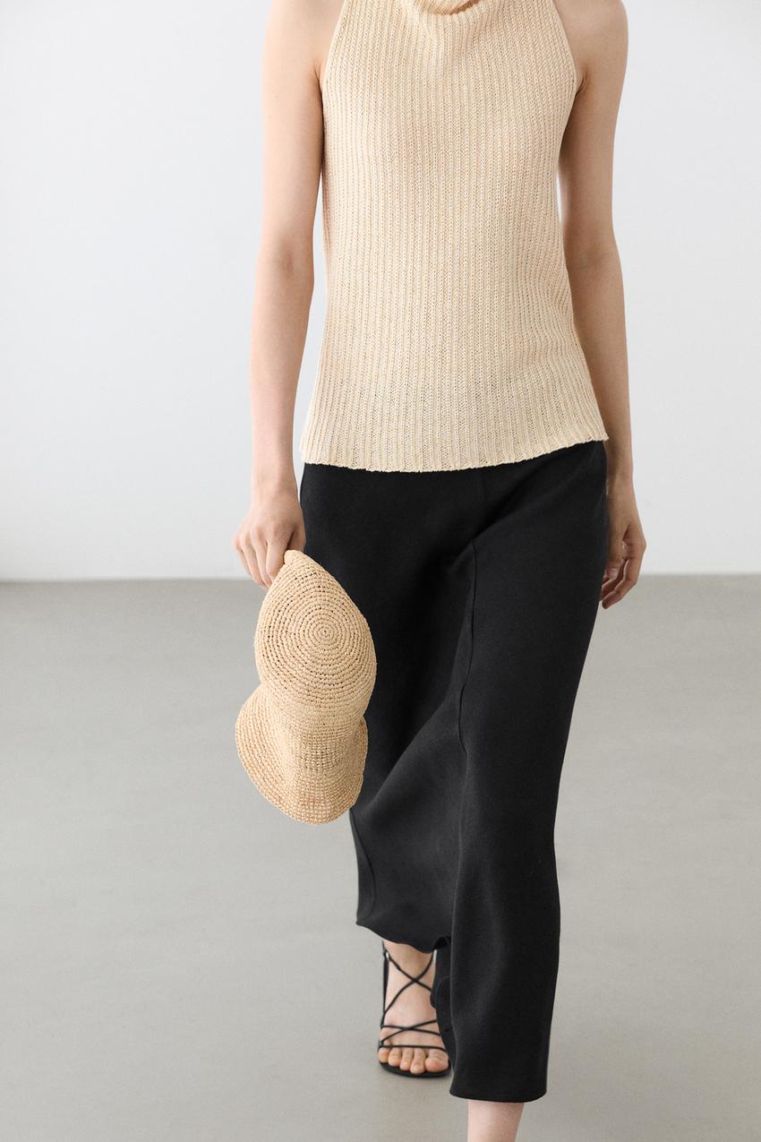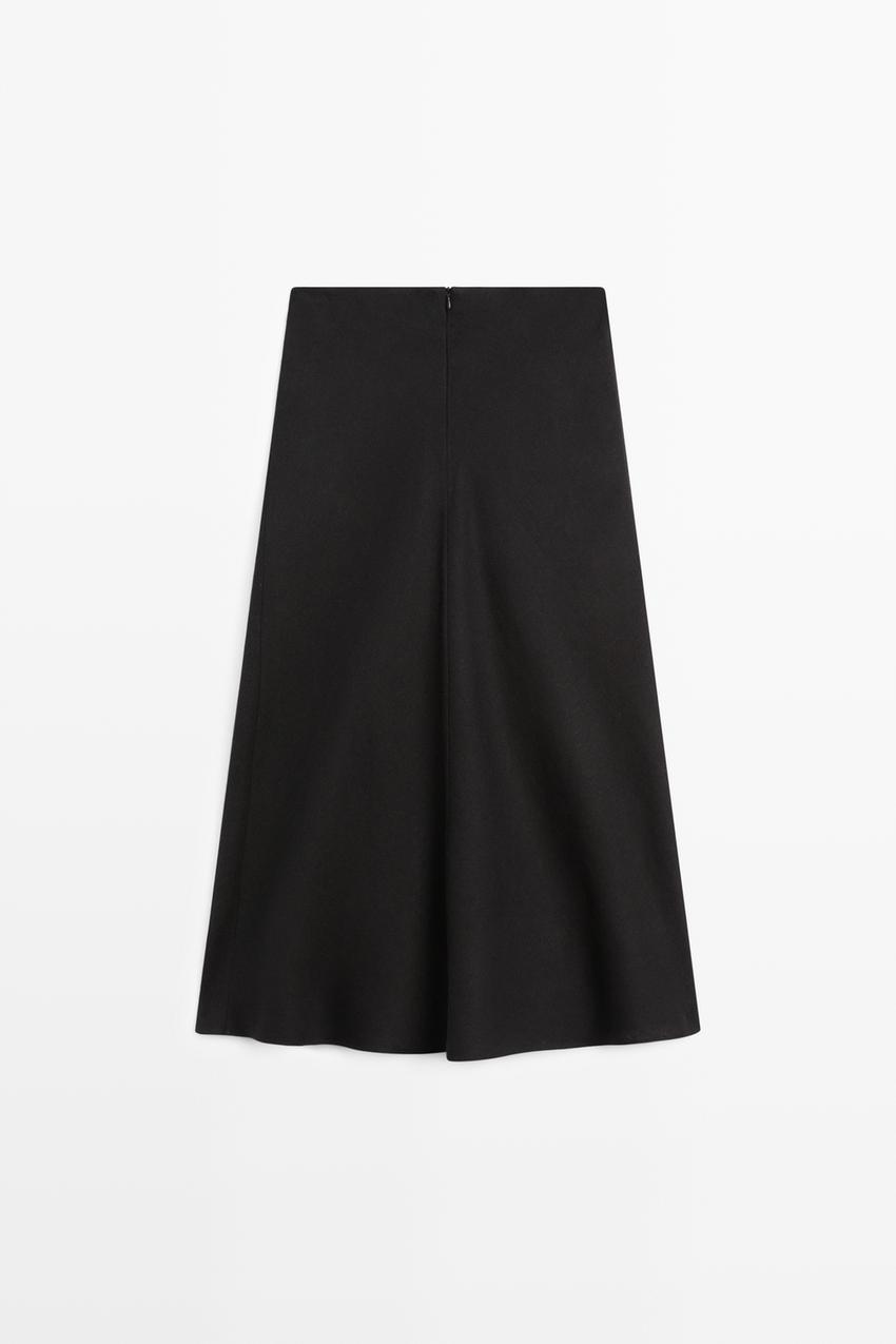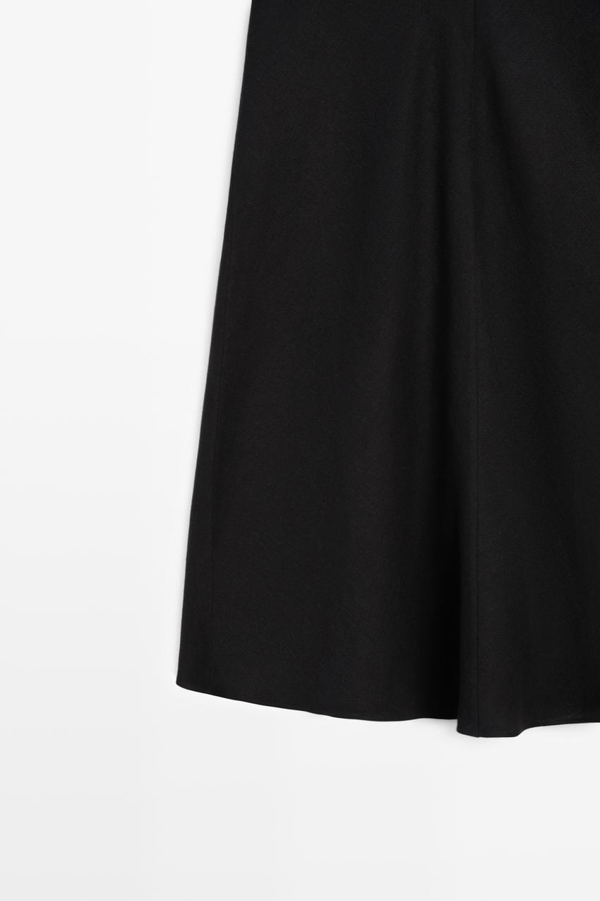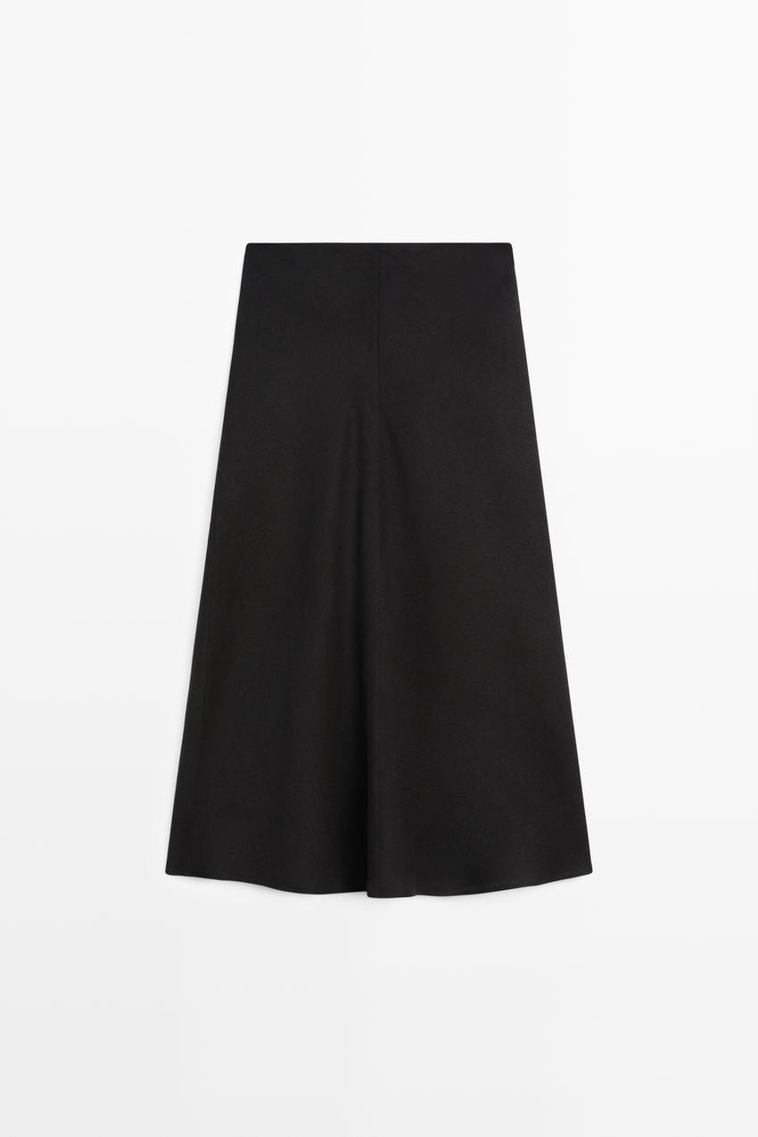 Massimo Dutti Прямая льняная юбка миди, черный