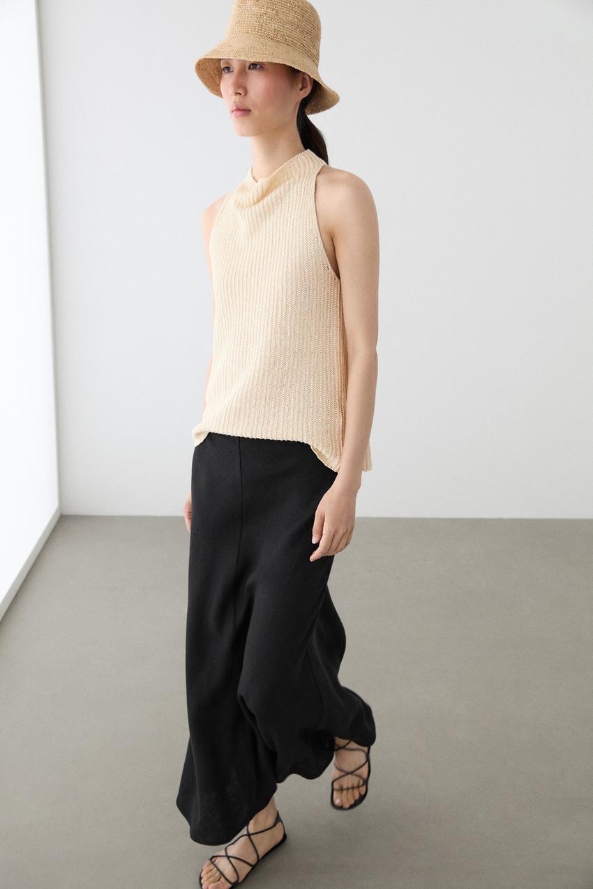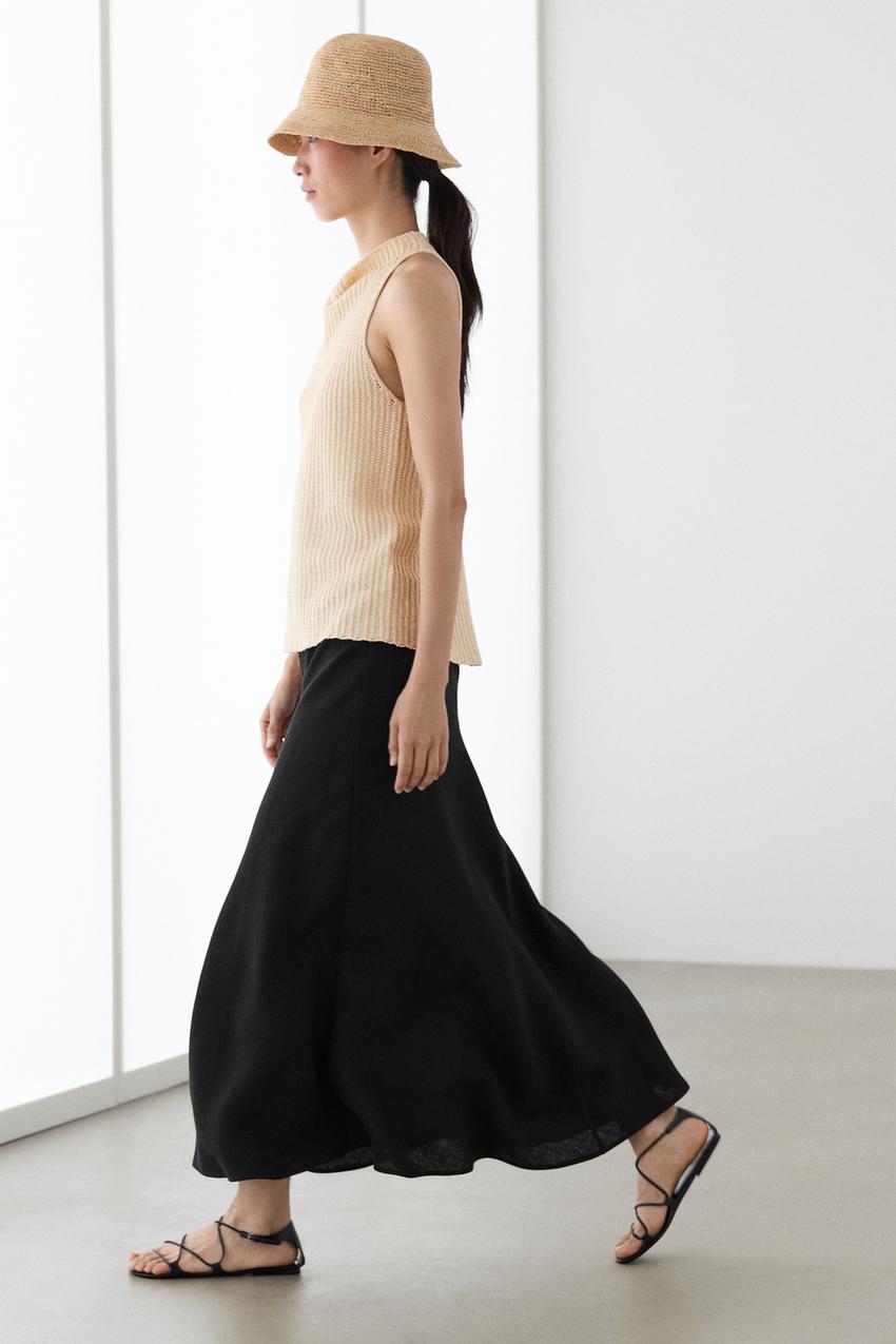 Юбка миди из 100% льна. Застежка-молния сзади.