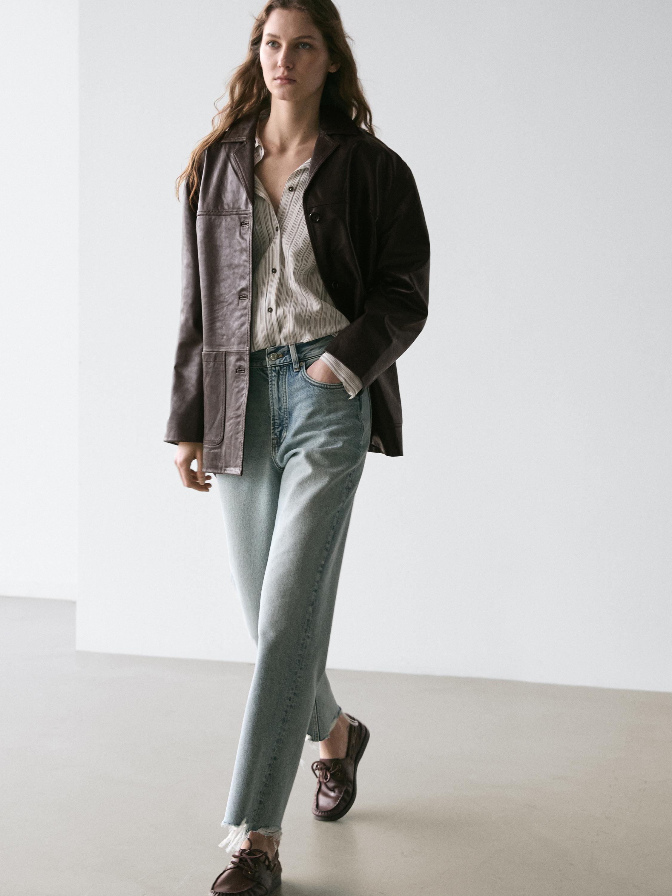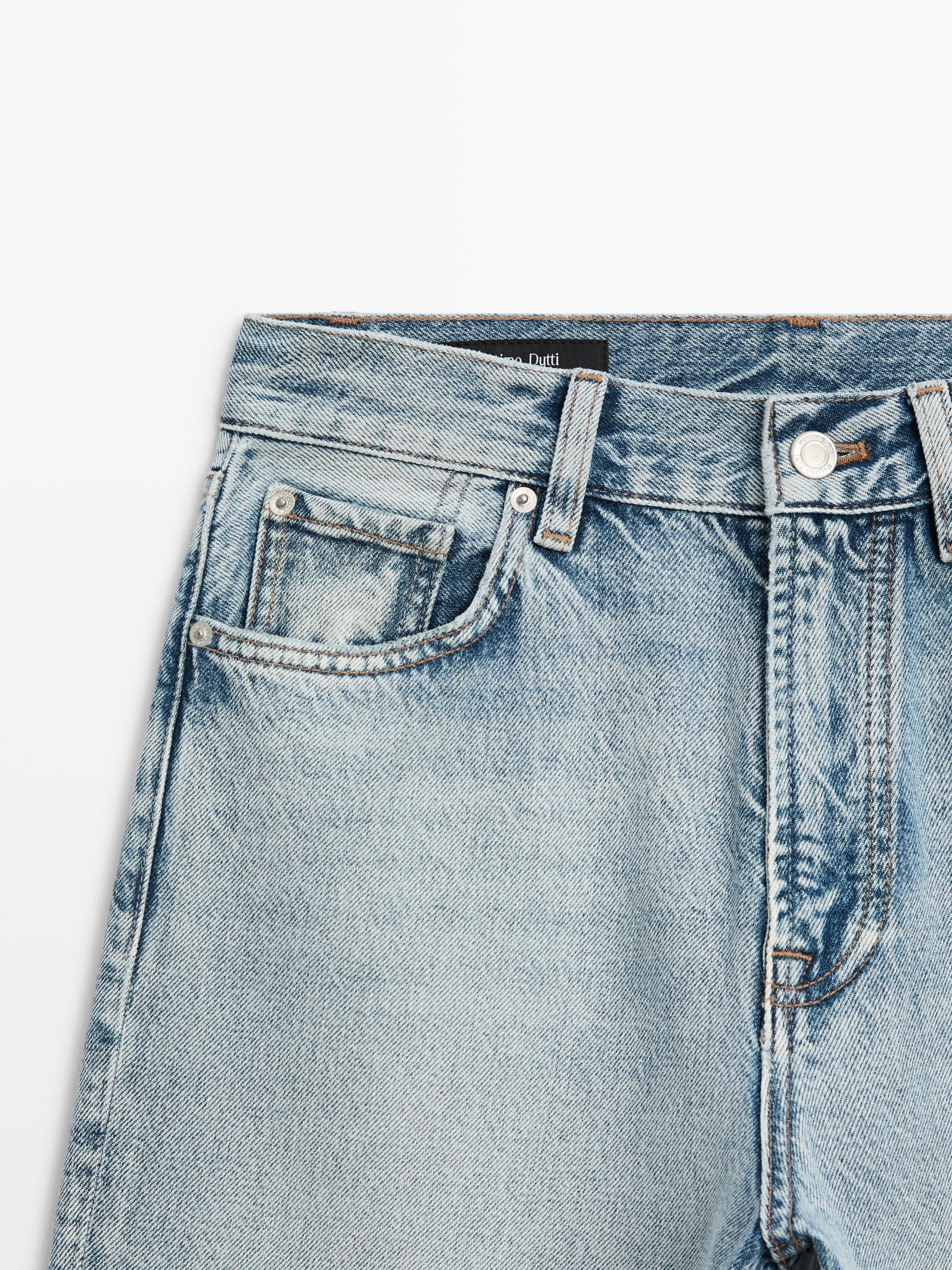 Massimo Dutti Прямые джинсы с высокой талией, светло-голубой