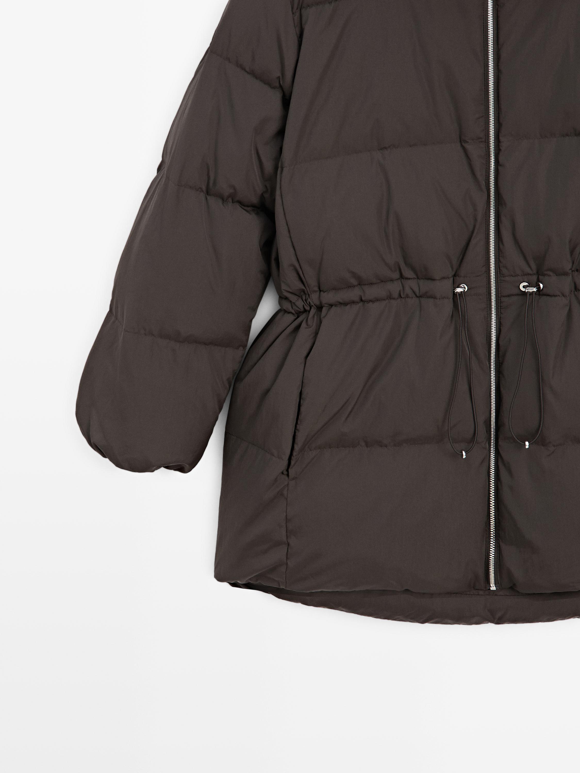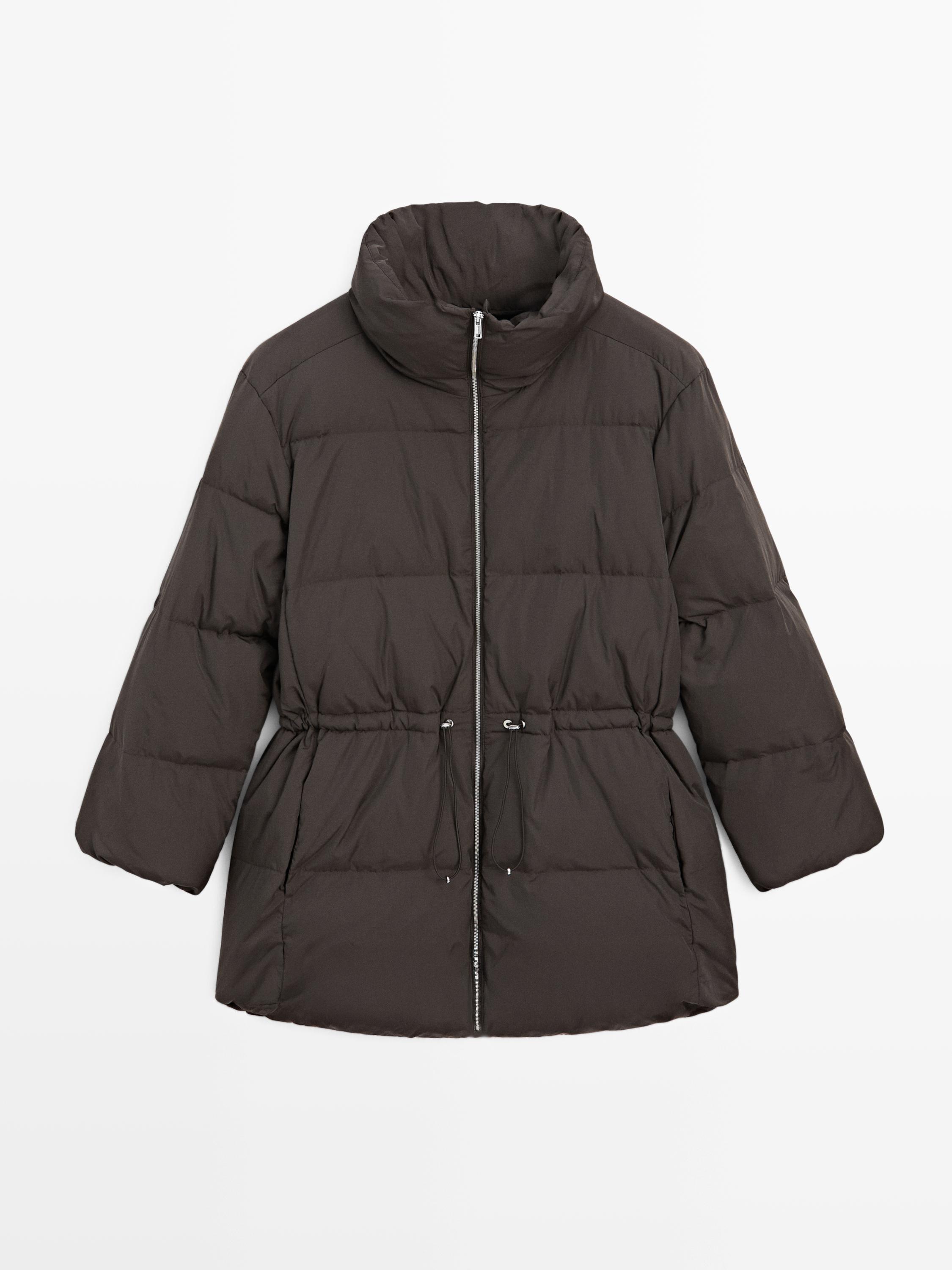 Massimo Dutti Пуховик с эластичным поясом и водоотталкивающей пропиткой, кротово-коричневый