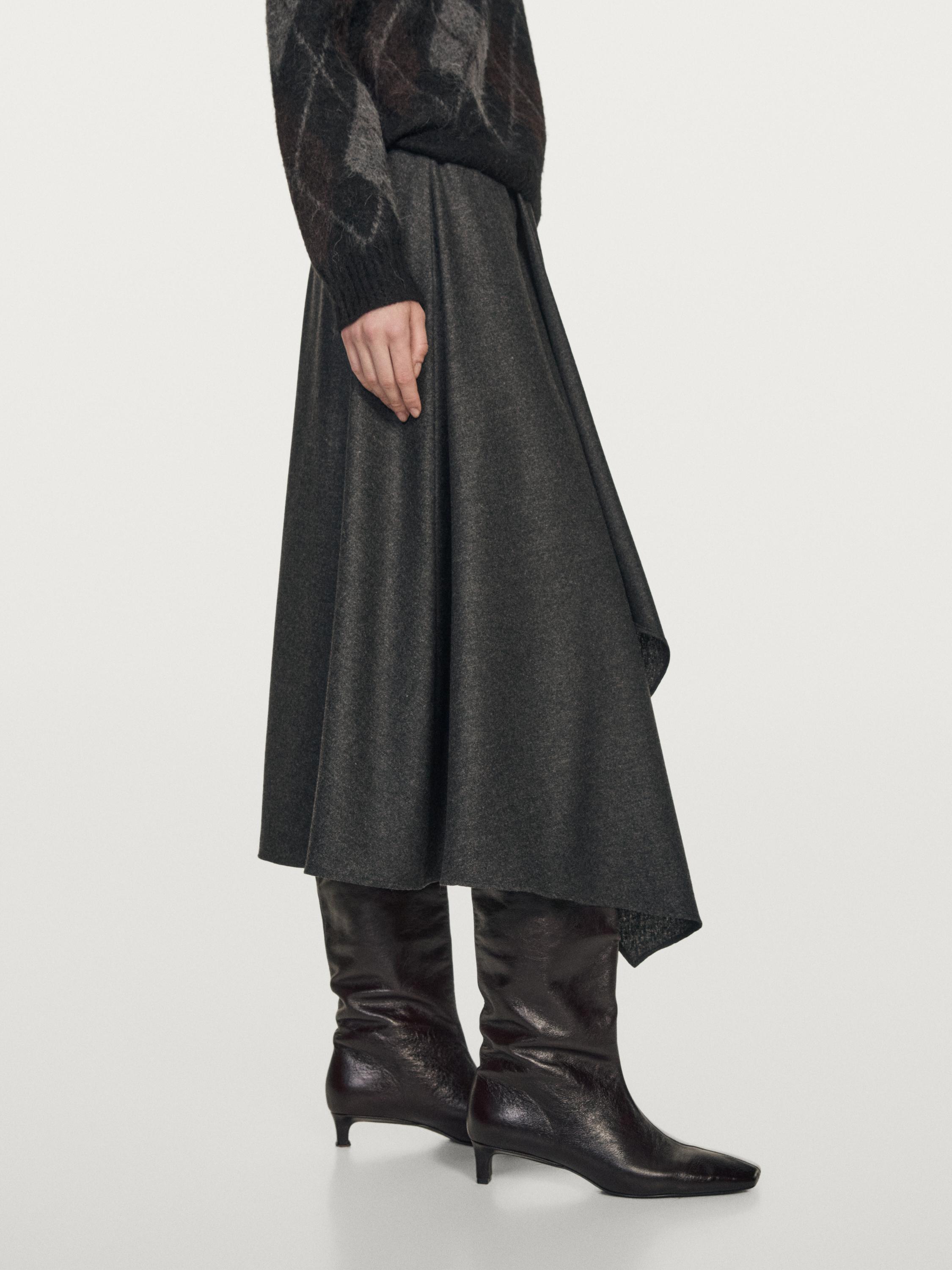 Massimo Dutti Расклешенная юбка миди из смесовой шерсти со складками, серый