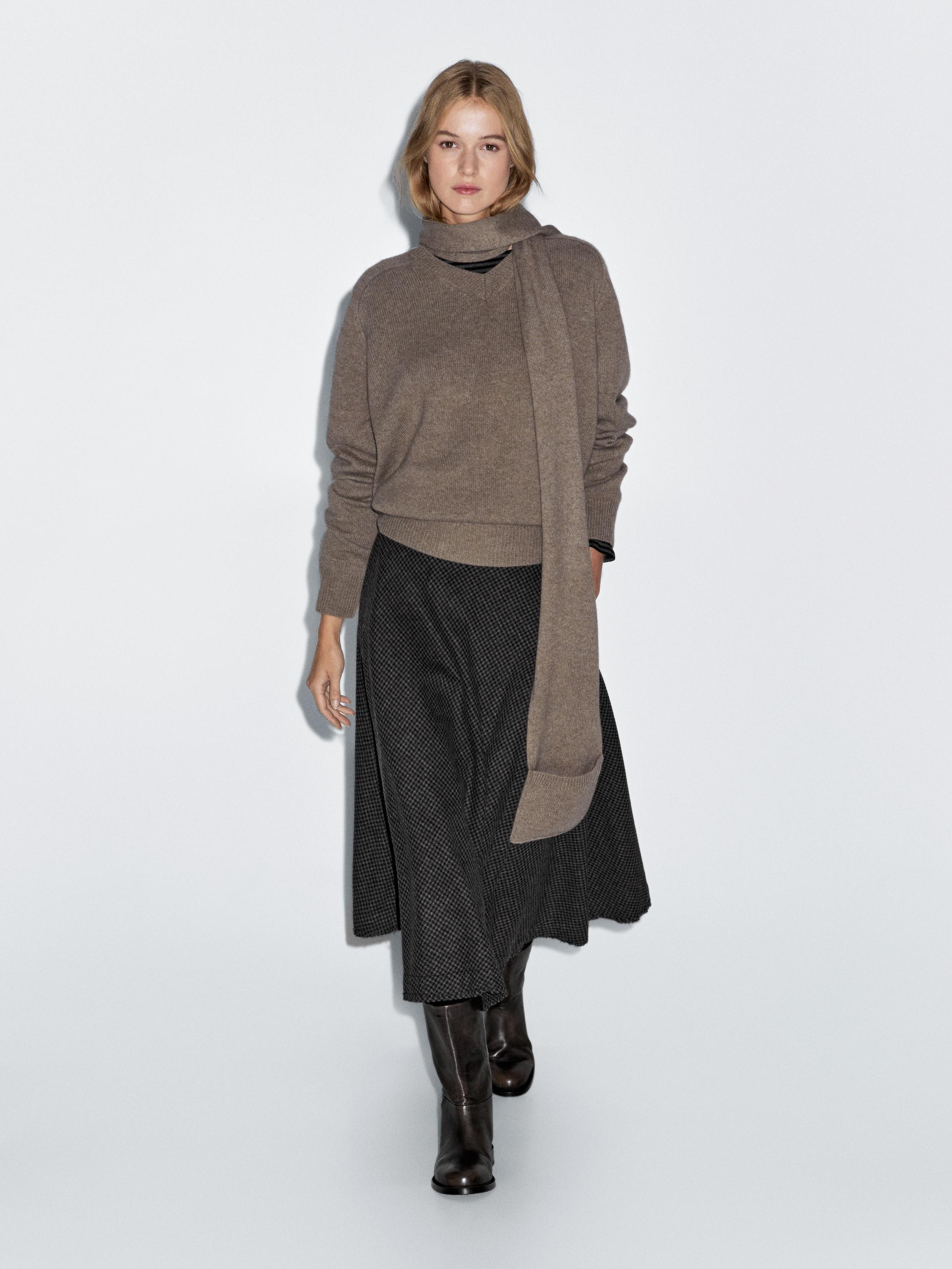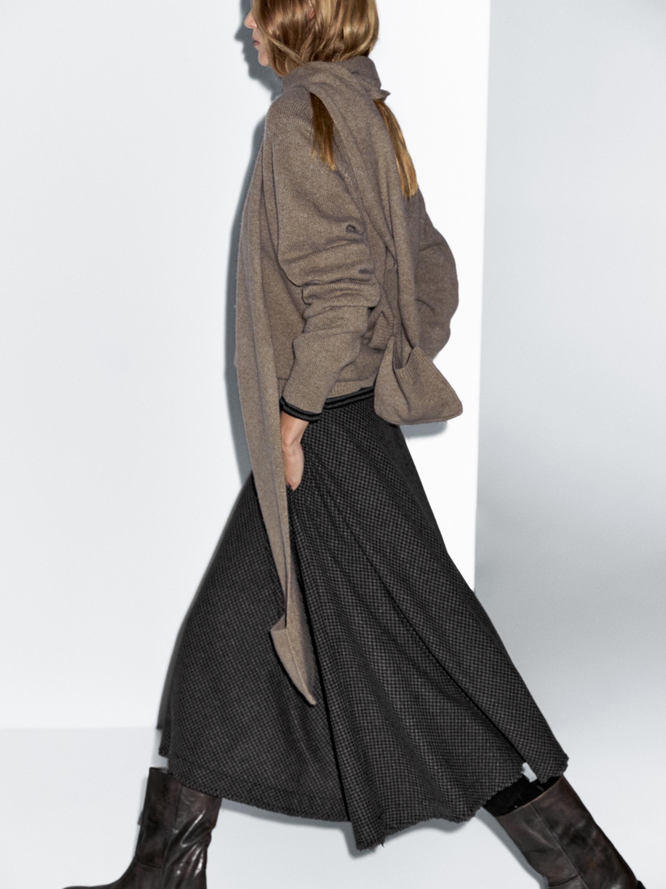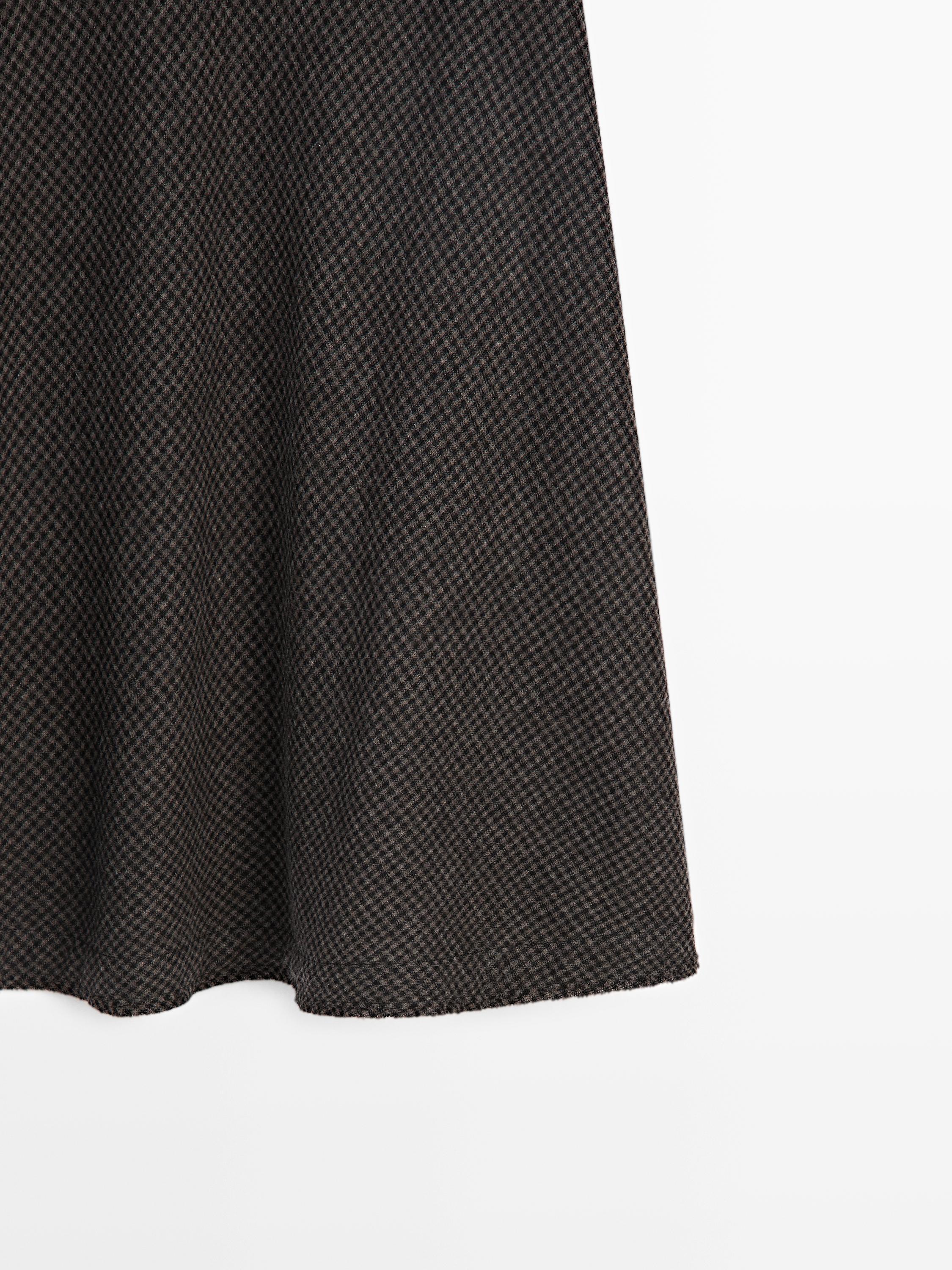 Massimo Dutti Расклешенная юбка миди в клетку виши, черный