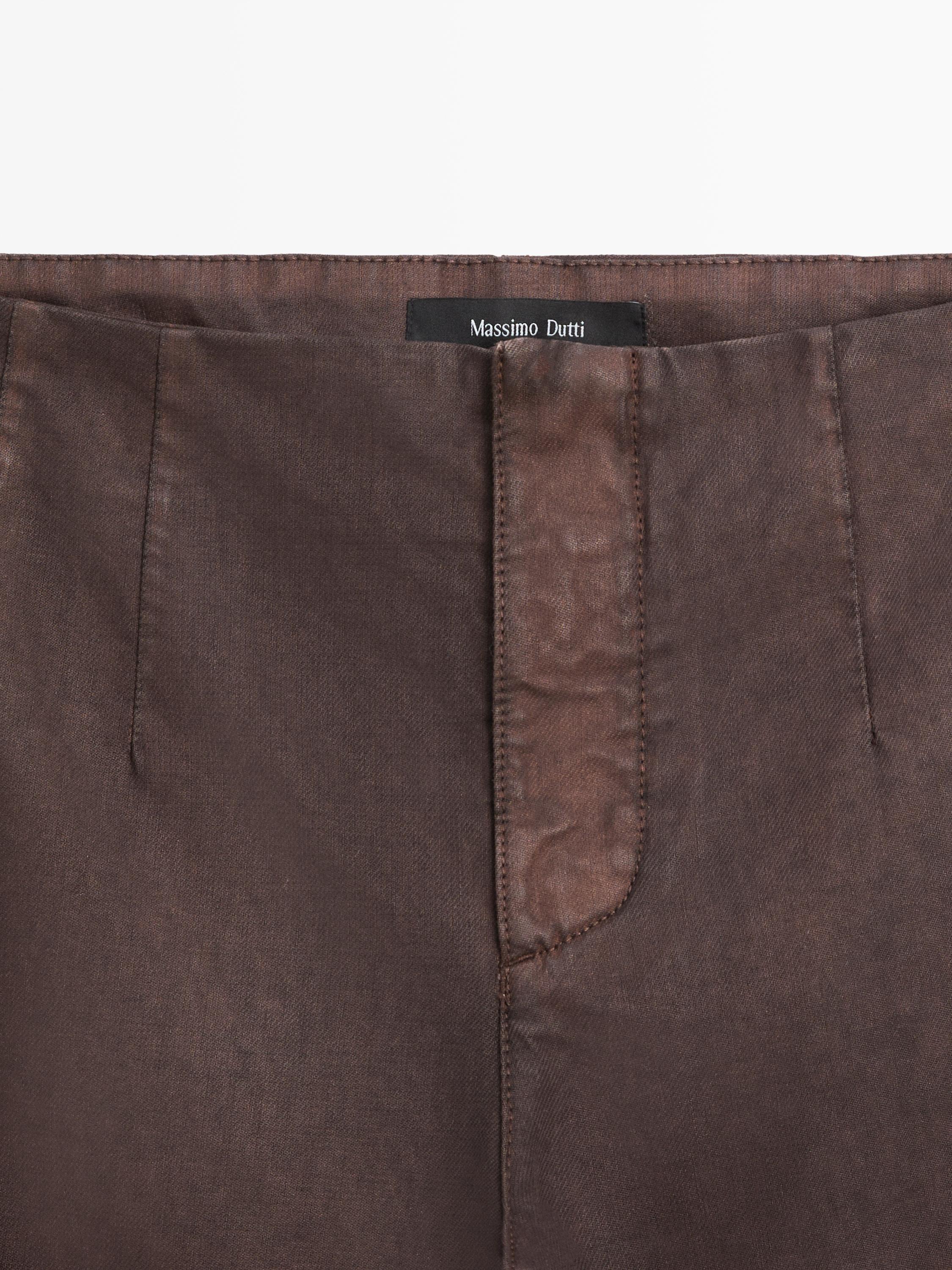 Брюки-клеш: этот крой постепенно расширяется от колена до щиколотки, визуально удлиняя ноги. Скрытая застежка-молния с планкой на пуговицах. Вытачки спереди и сзади.