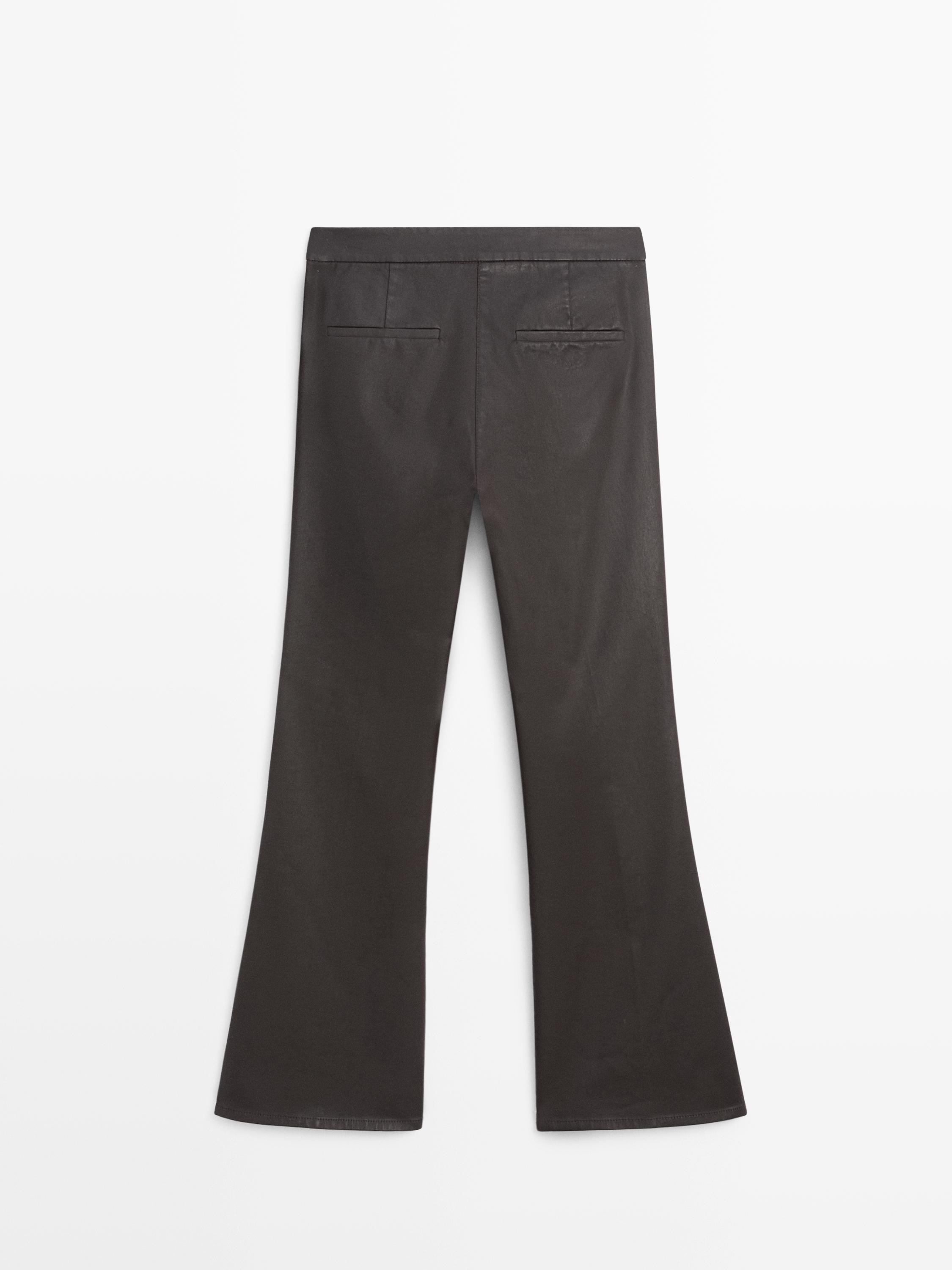Massimo Dutti Расклешенные брюки с покрытием, коричневый