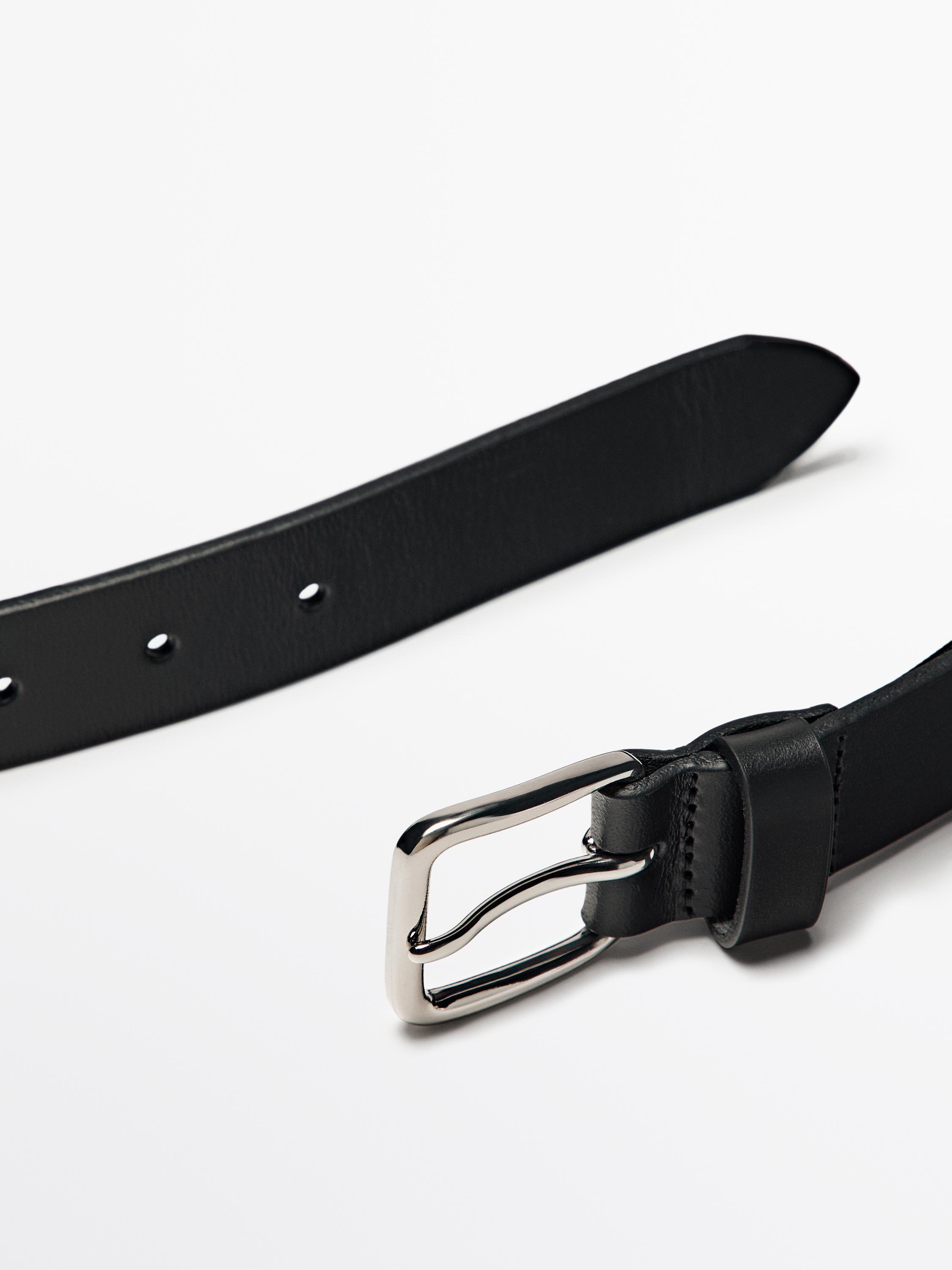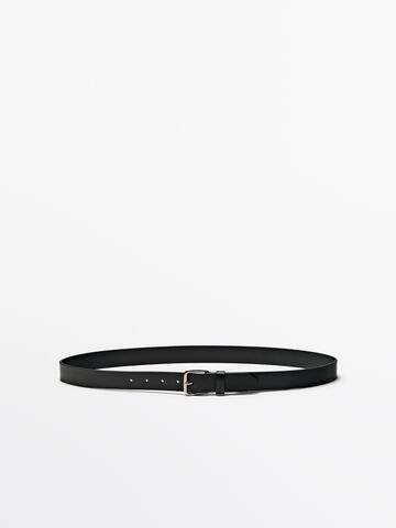 Massimo Dutti Ремень из кожи наппа с квадратной пряжкой, черный