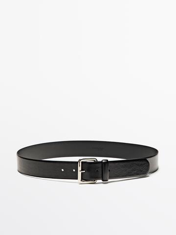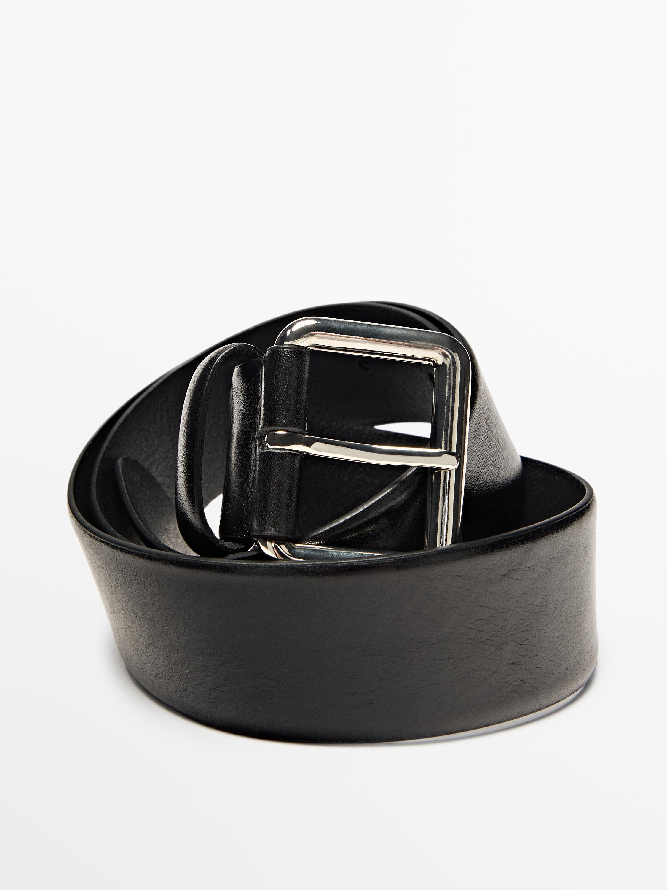 Massimo Dutti Ремень из кожи наппа с квадратной пряжкой, черный