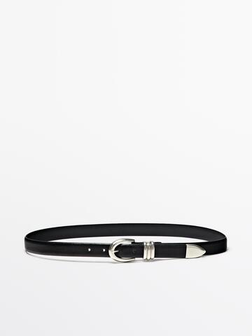 Massimo Dutti Ремень из кожи наппа с металлическими деталями, черный