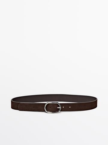 Massimo Dutti Ремень из нубуковой кожи с овальной пряжкой, коричневый