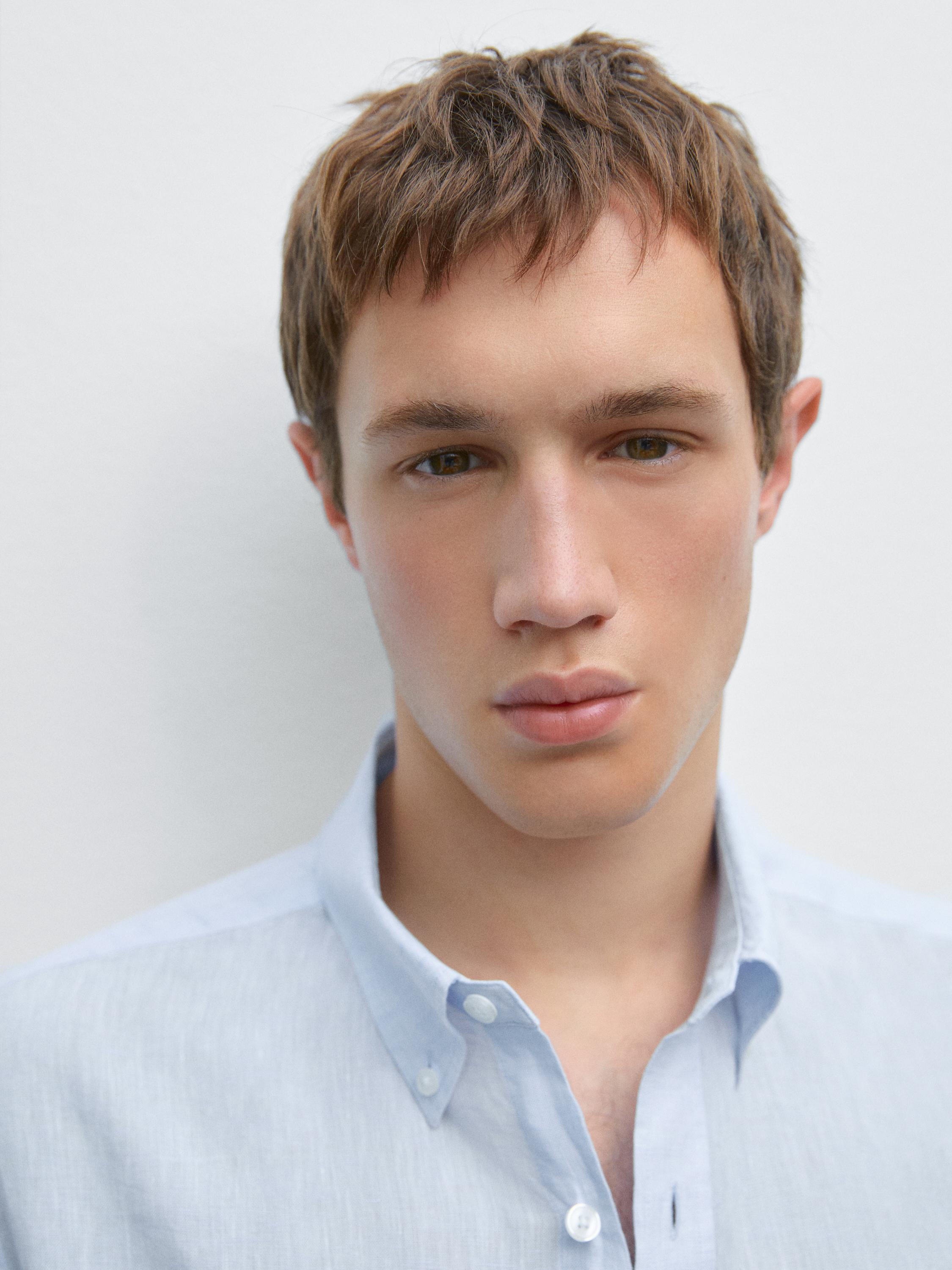 Massimo Dutti Рубашка из 100% льна, стандартного кроя, небесно-голубой