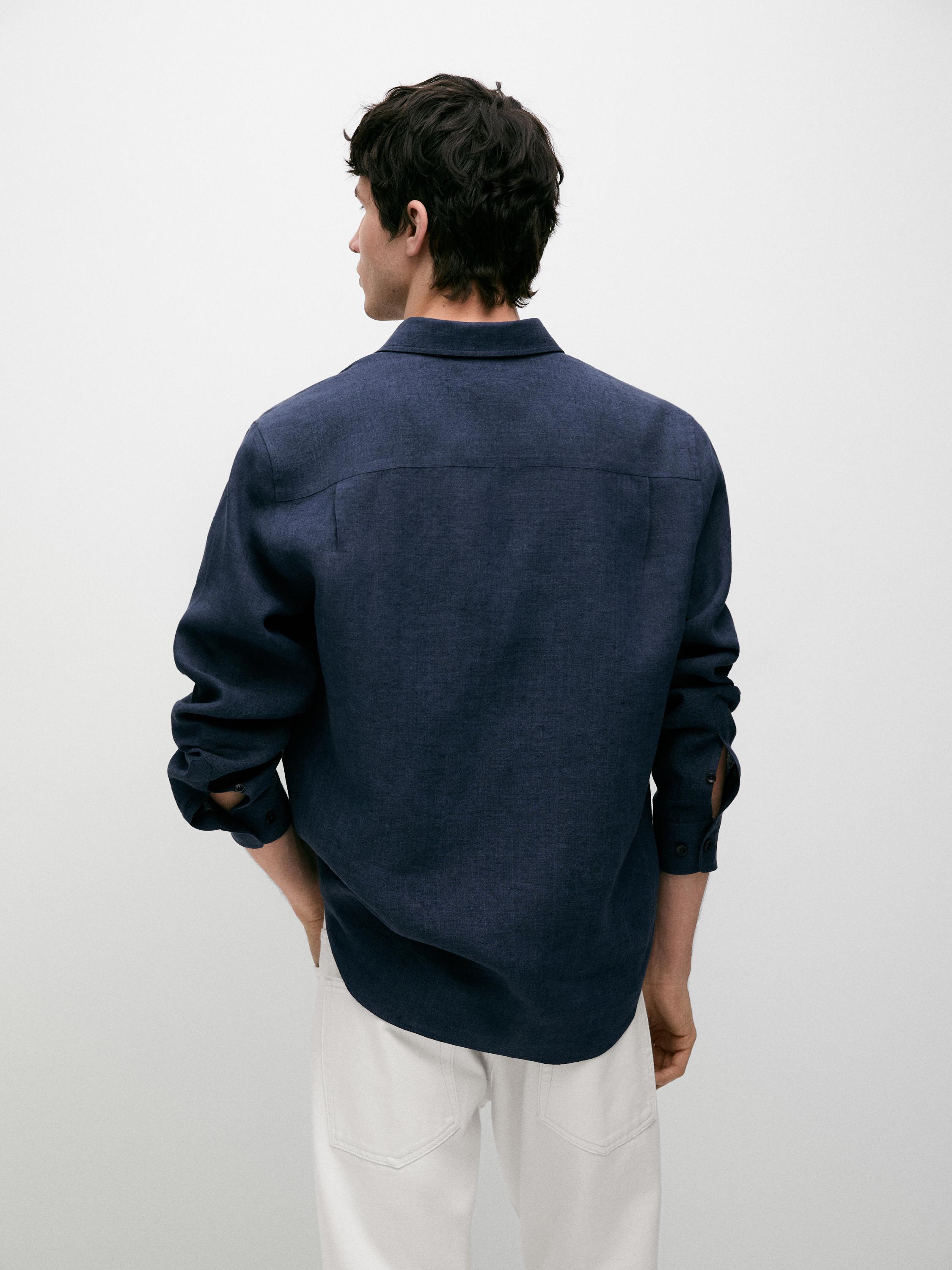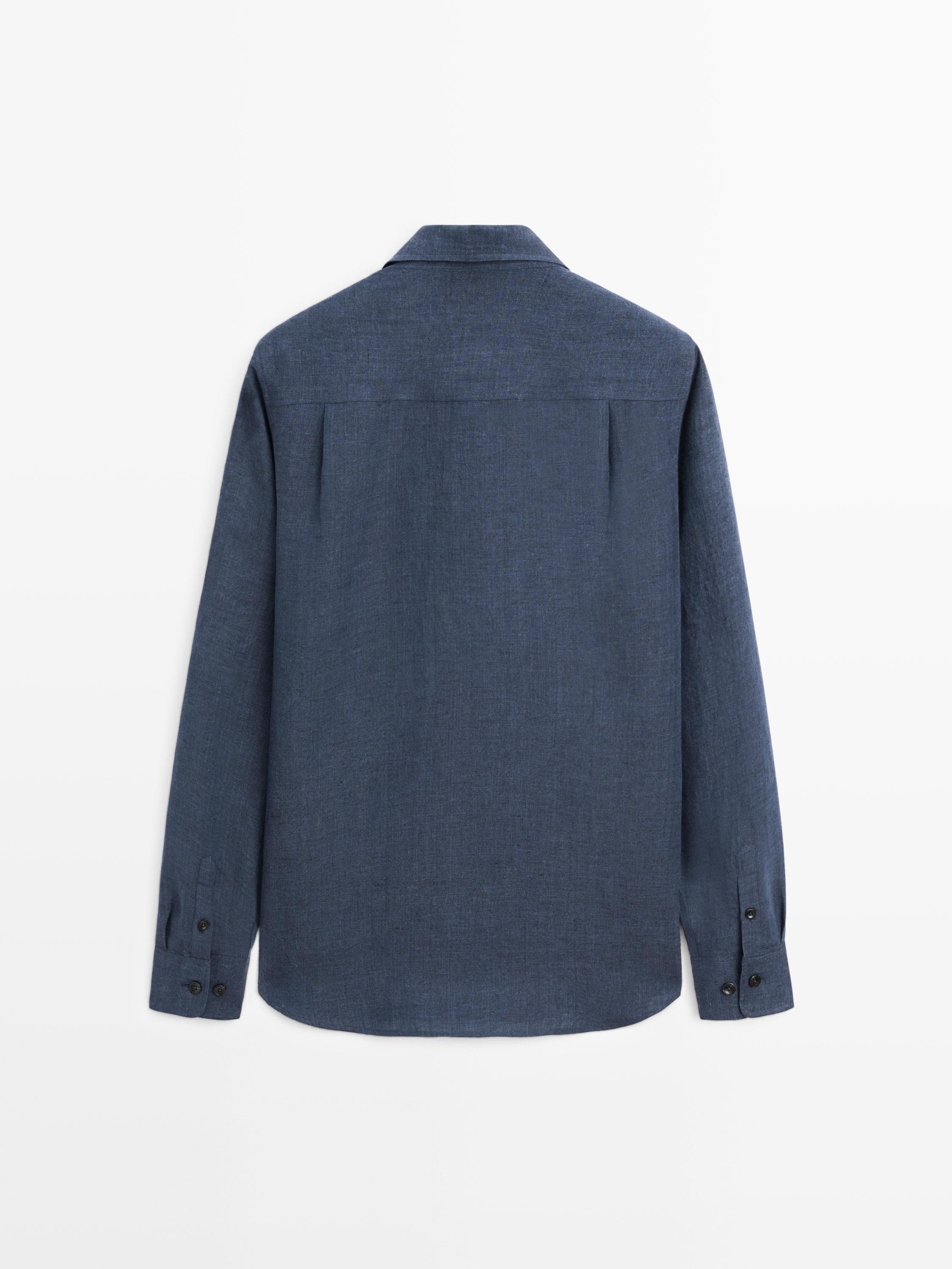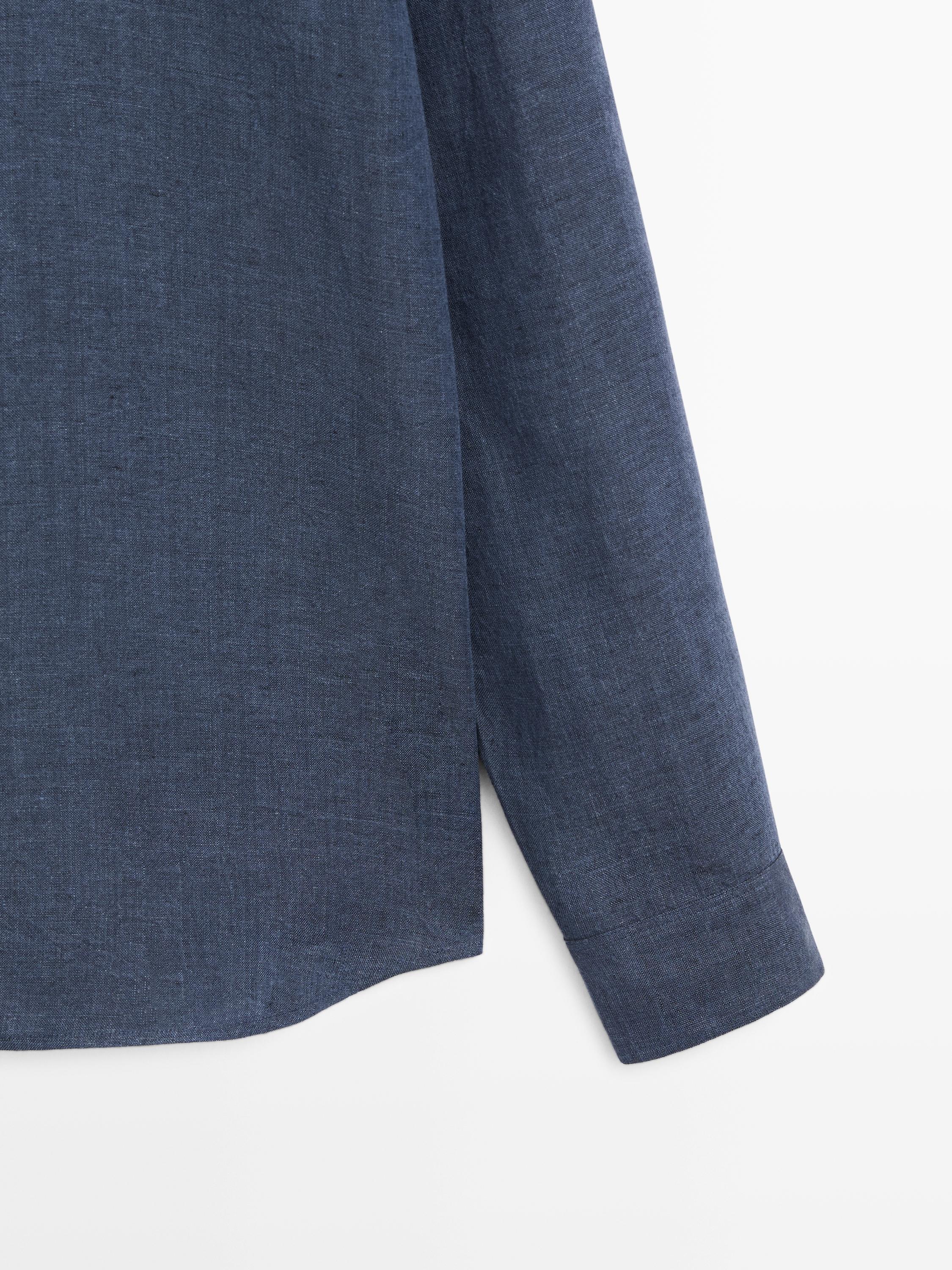 Massimo Dutti Рубашка из 100% льна, стандартного кроя, выцветший синий