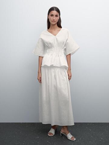Massimo Dutti Рубашка из смесового хлопка, кремовый