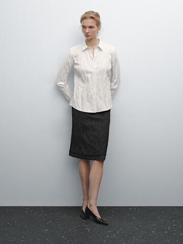 Massimo Dutti Рубашка из смесового хлопка с рельефным узором, белый