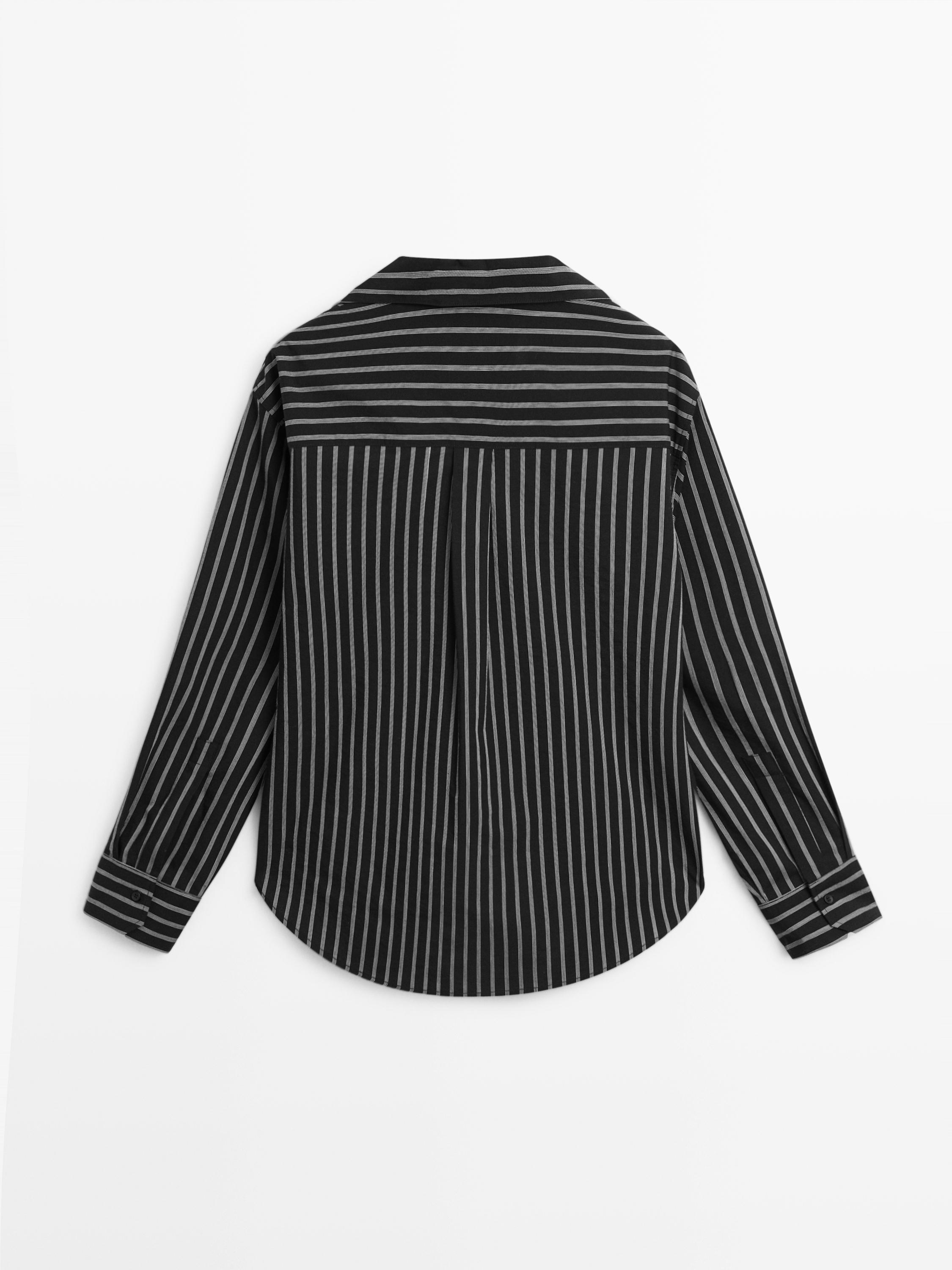 Massimo Dutti Рубашка из смесового хлопка в полоску, черный