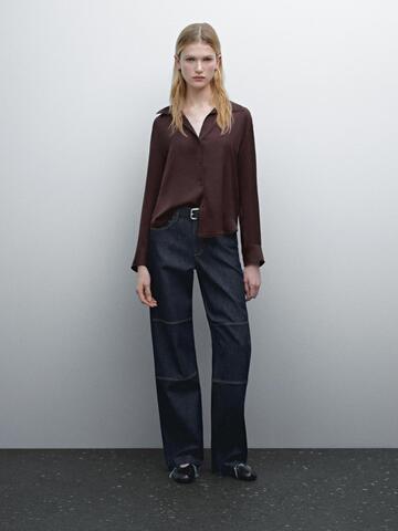 Massimo Dutti Рубашка из струящегося атласа, гранатовый