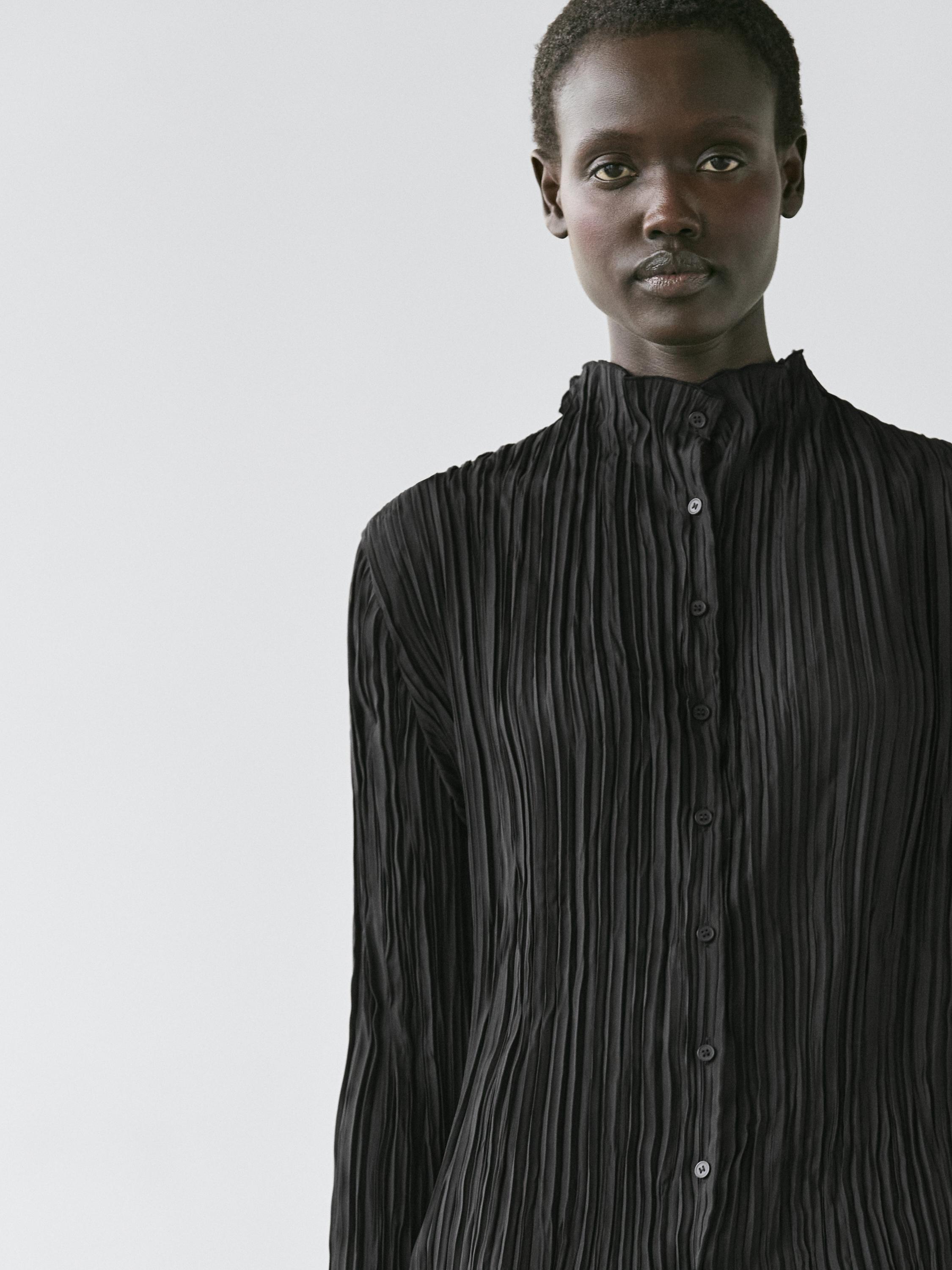 Massimo Dutti Рубашка из струящейся ткани со складками, черный