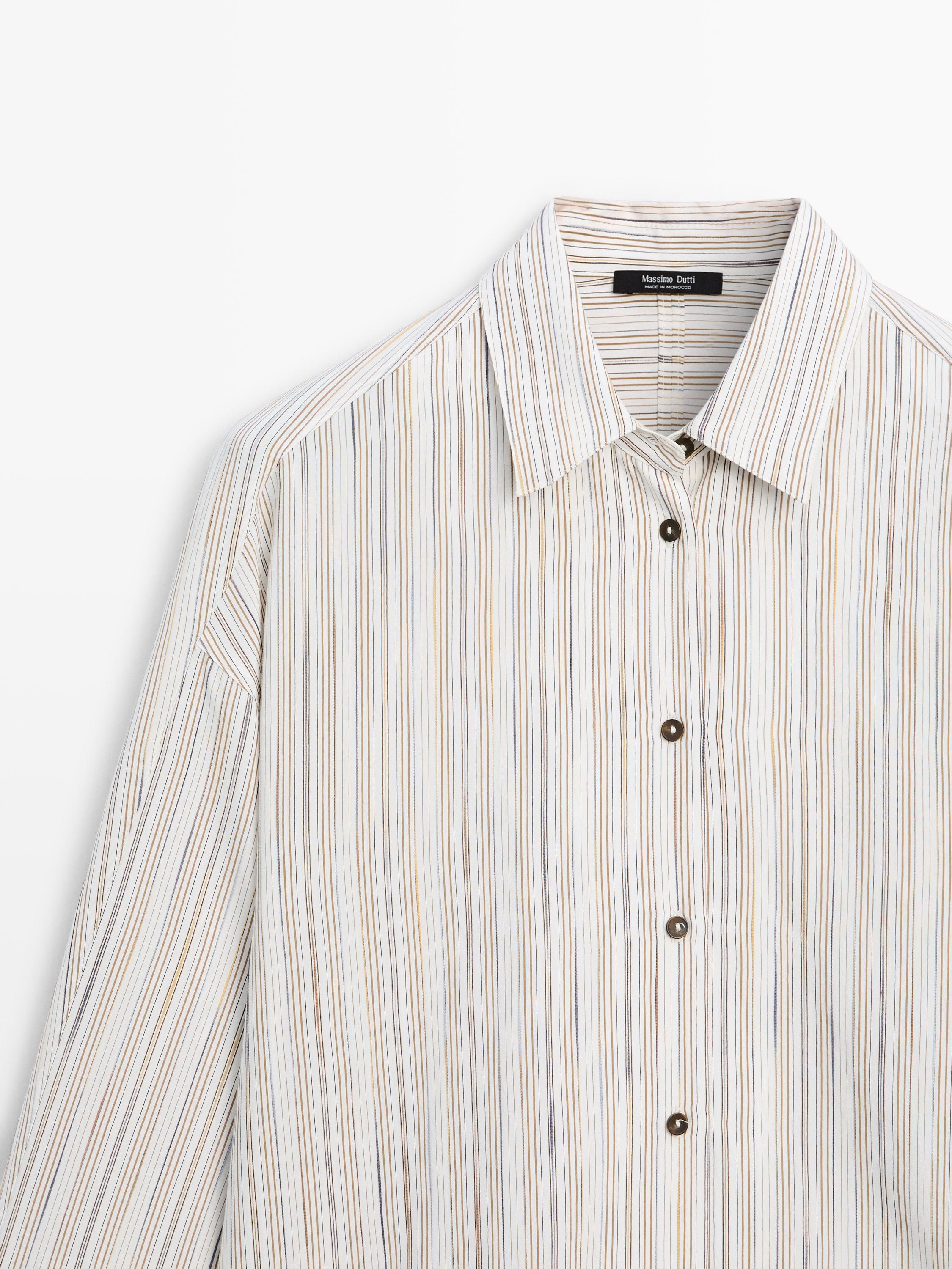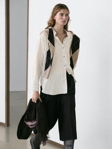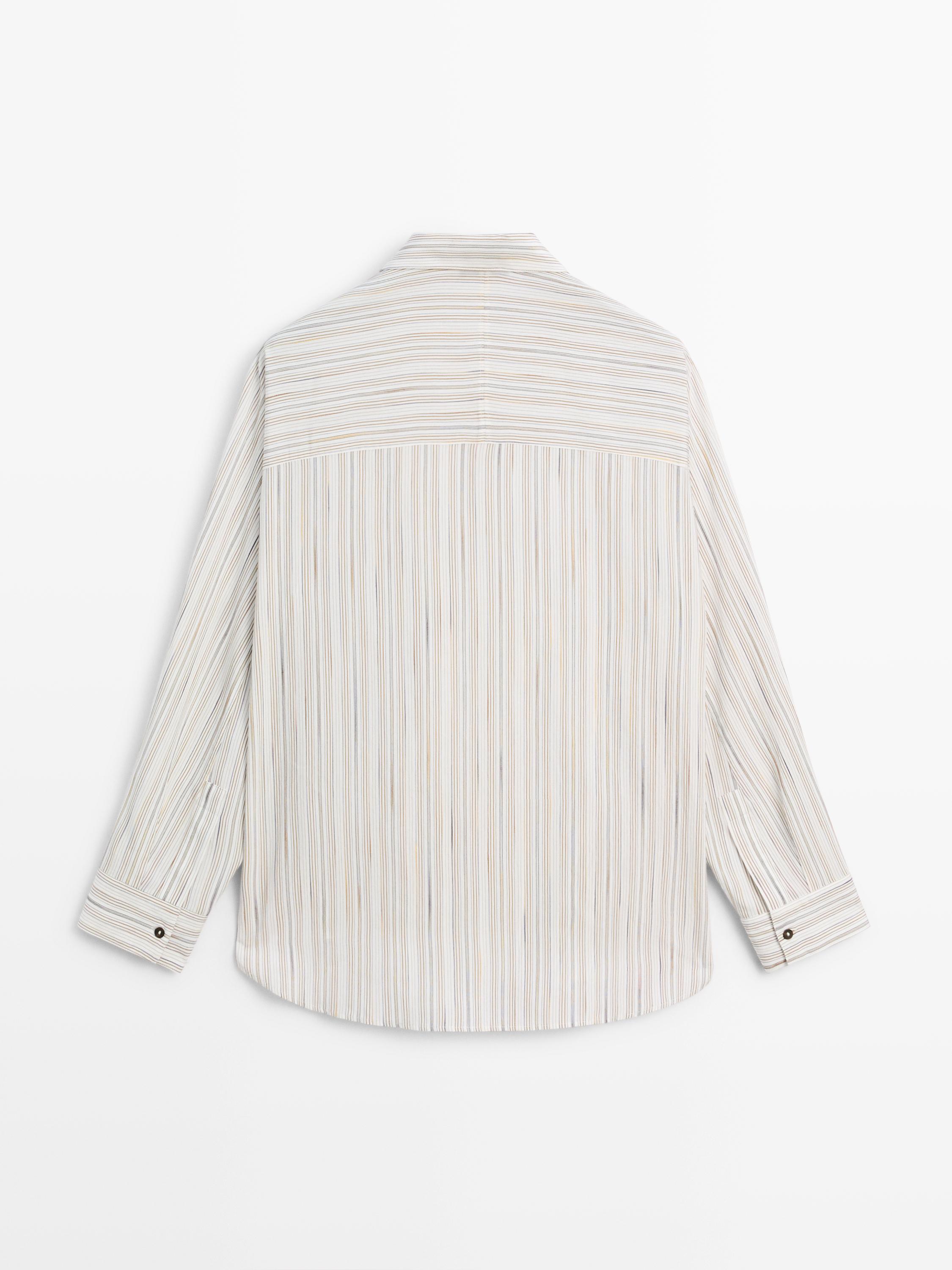 Massimo Dutti Рубашка из струящейся ткани в полоску, белый