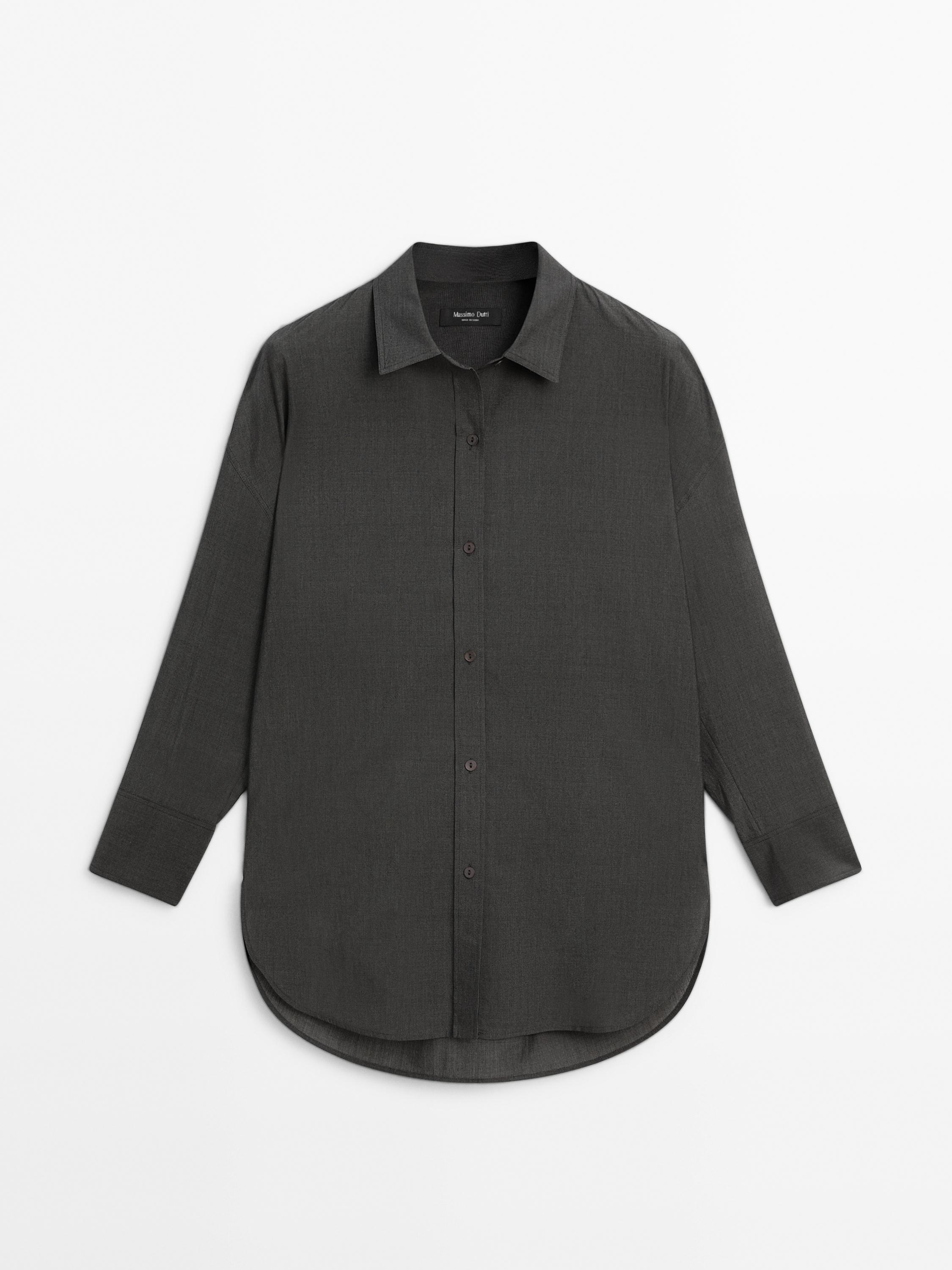 Massimo Dutti Рубашка оверсайз из смесового хлопка, антрацитово-серый