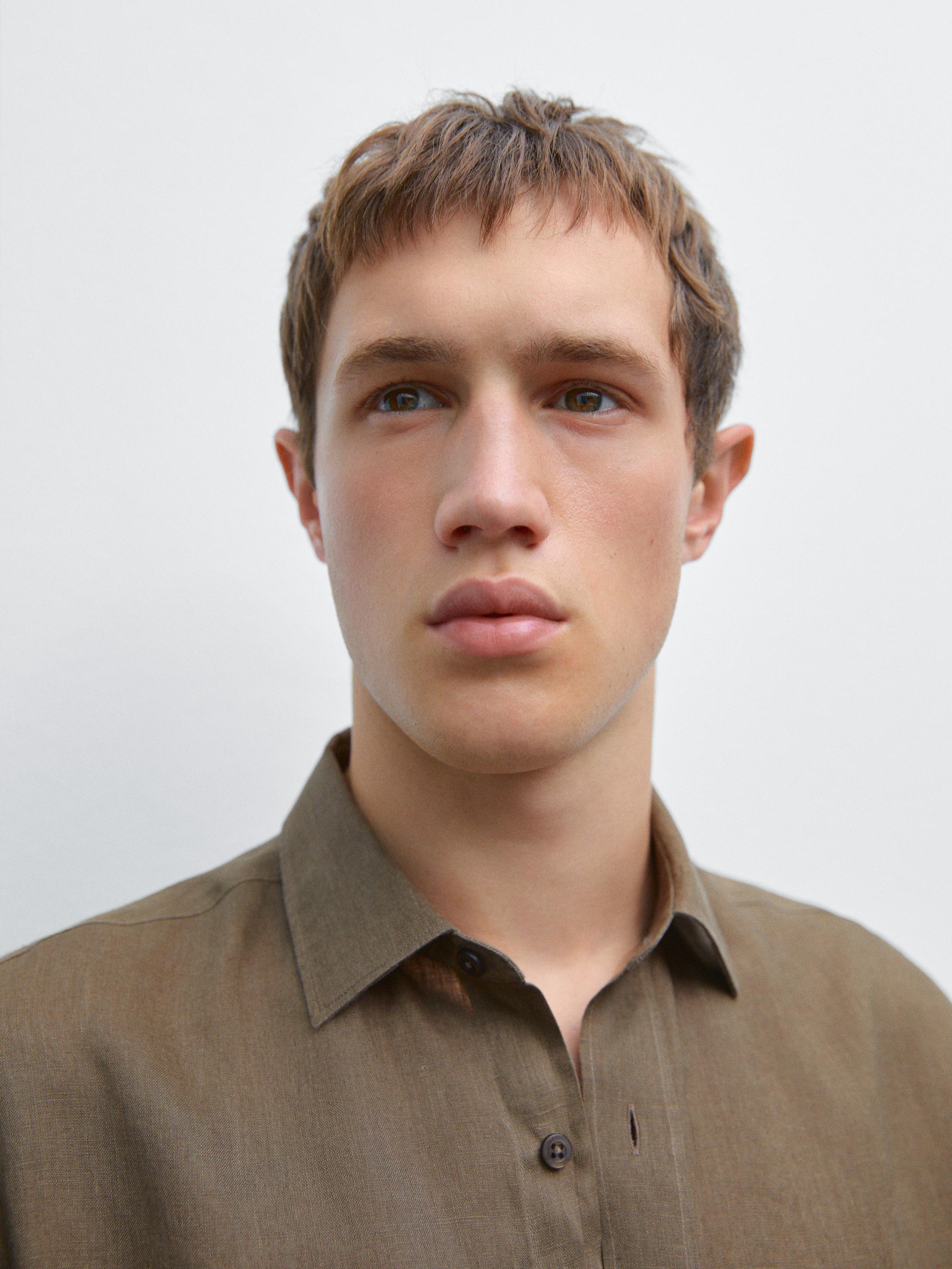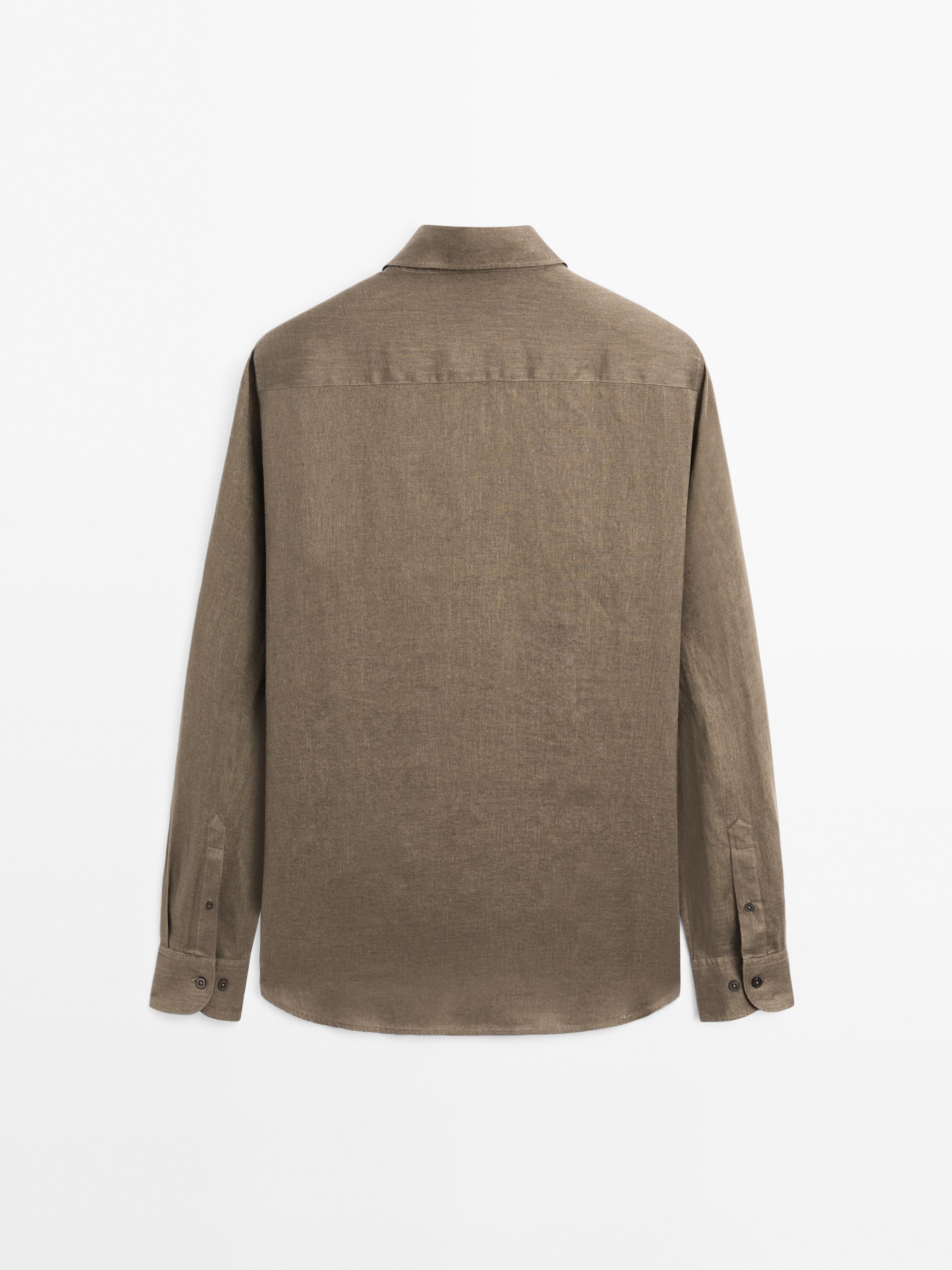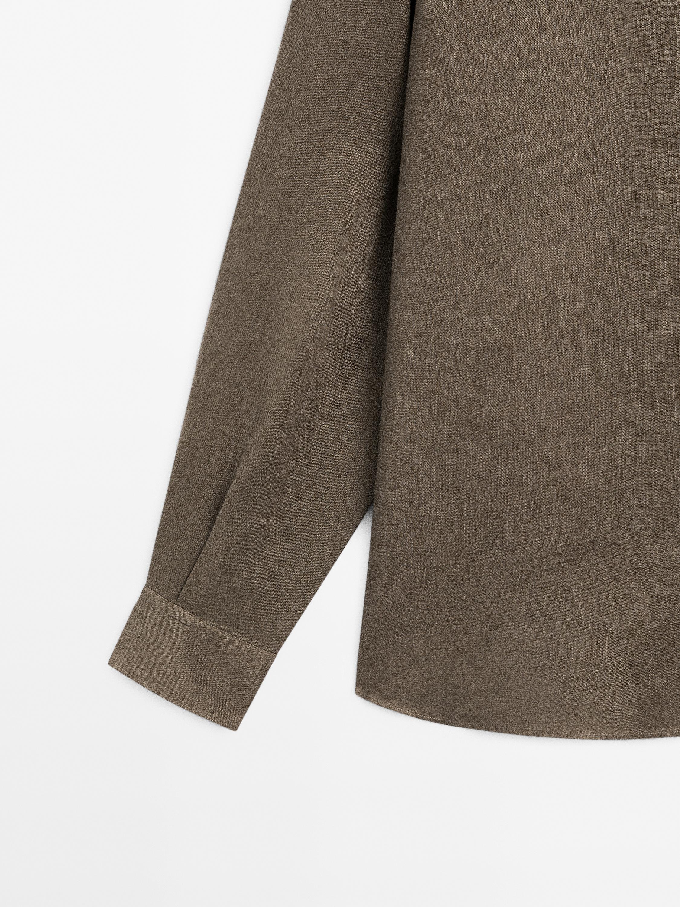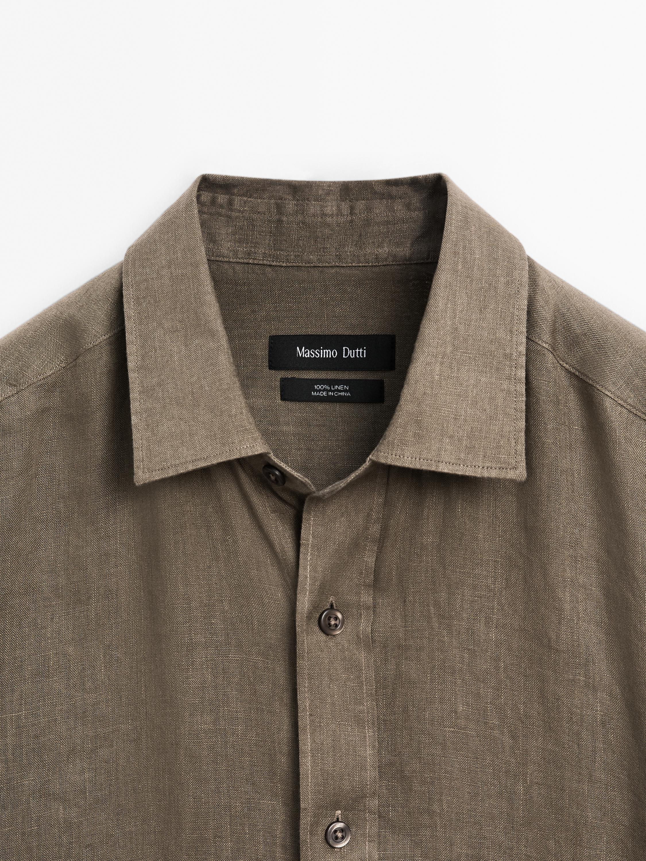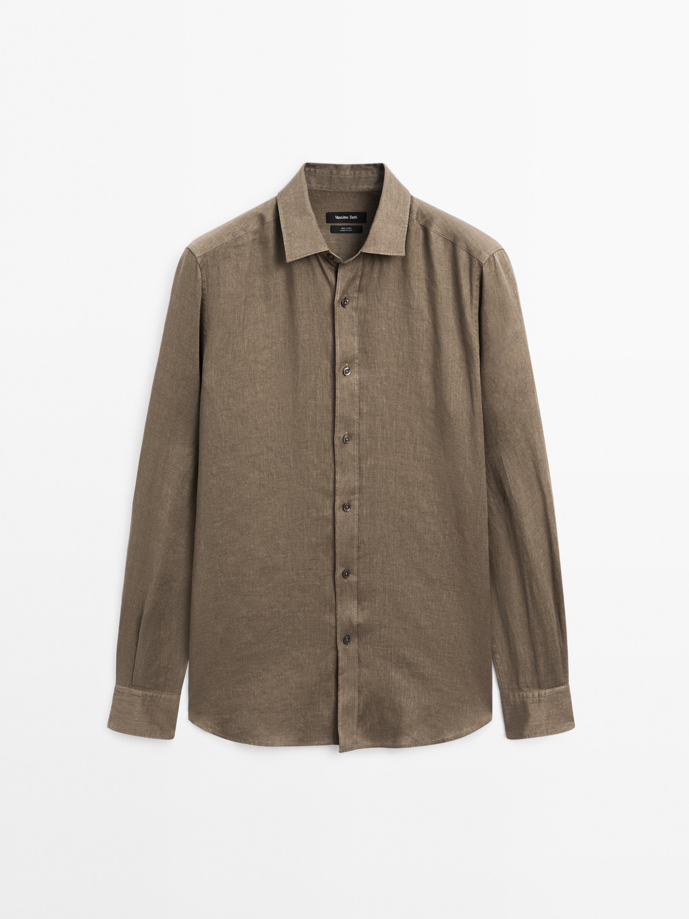 Massimo Dutti Рубашка приталенного кроя из 100% льна, хаки