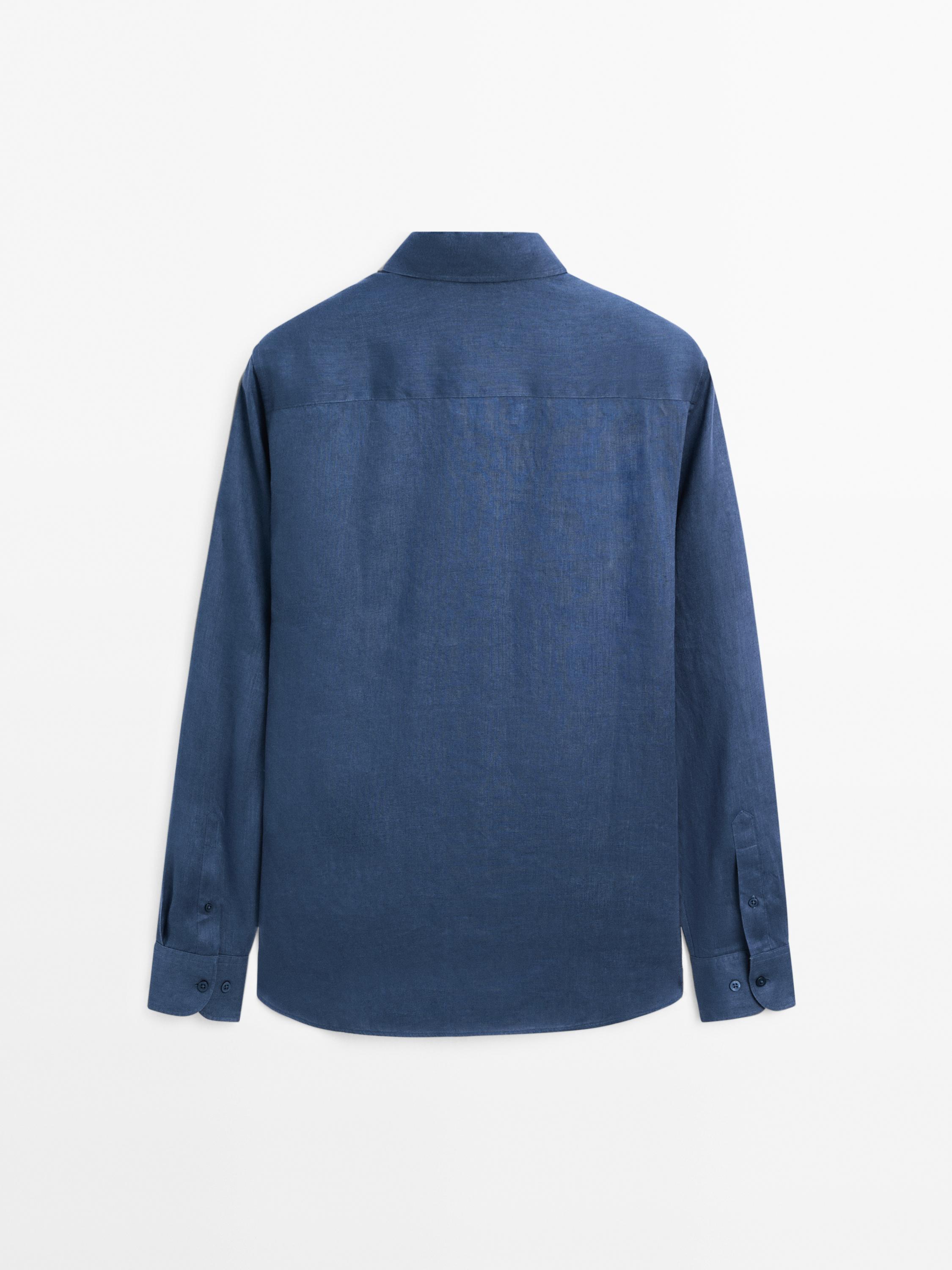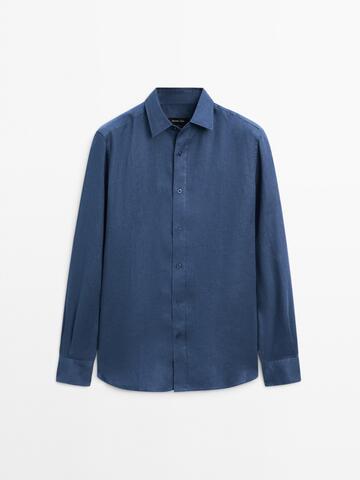 Massimo Dutti Рубашка приталенного кроя из 100% льна, синий