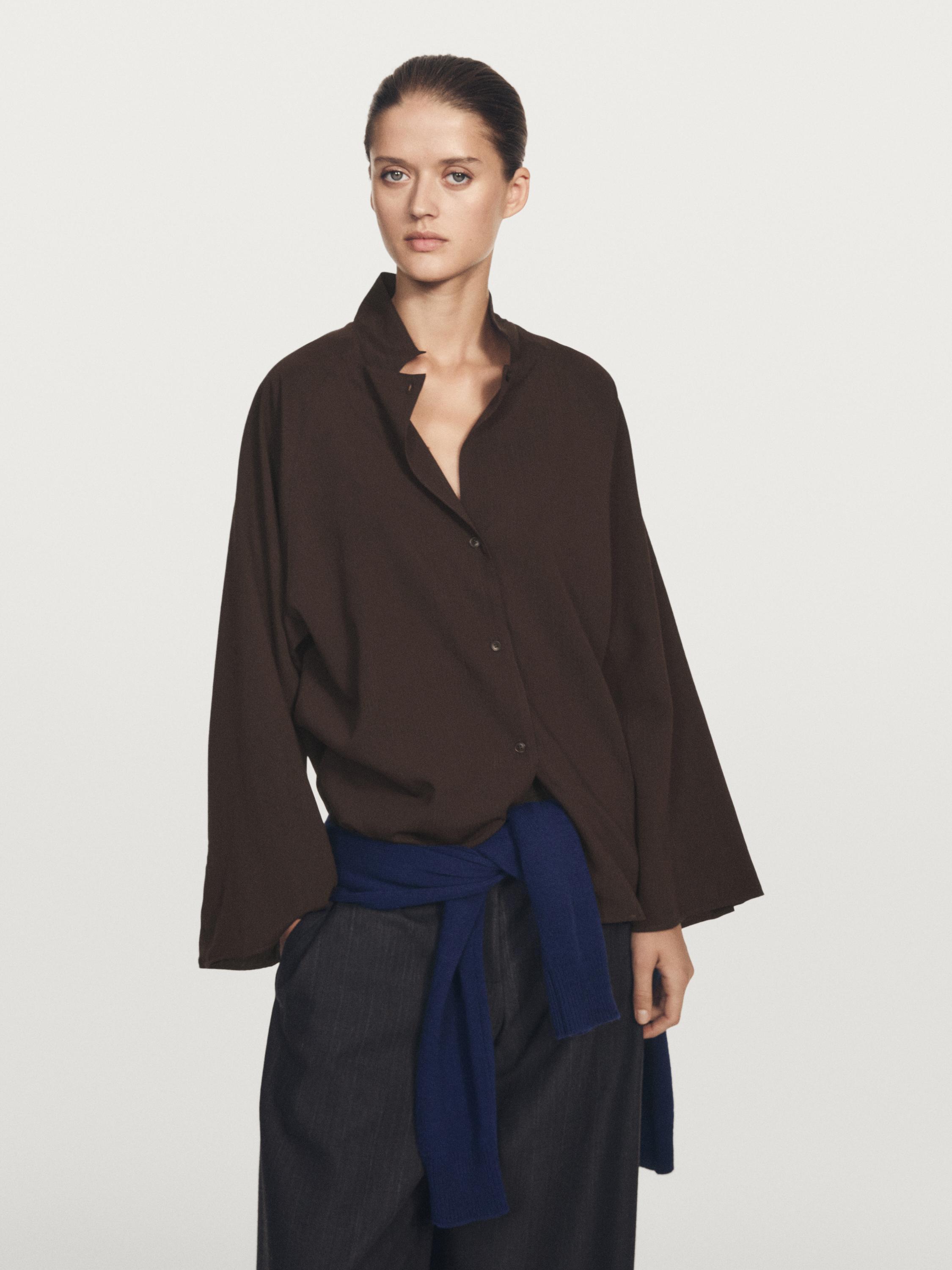 Massimo Dutti рубашка с рукавами реглан, коричневый