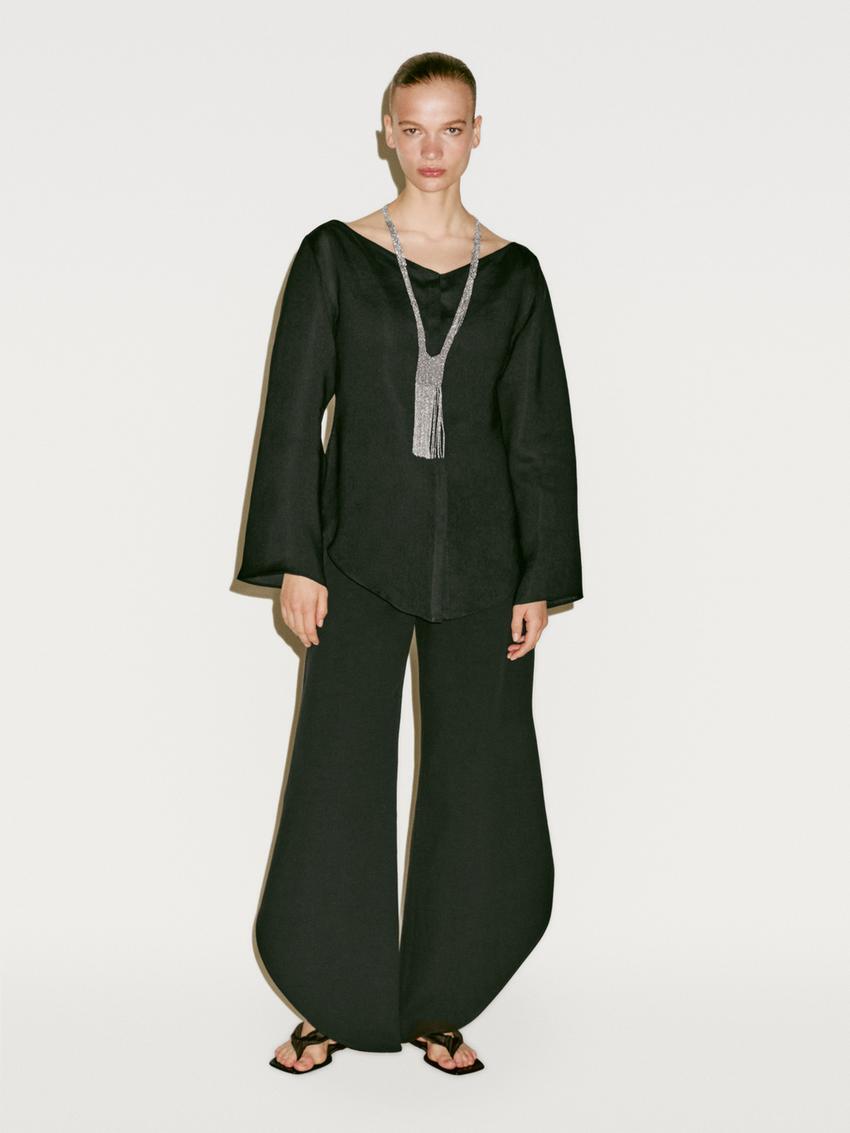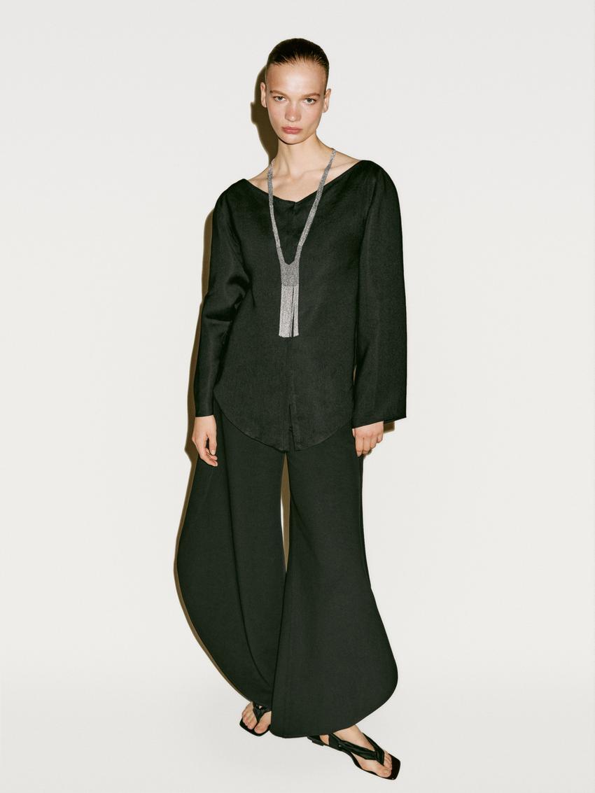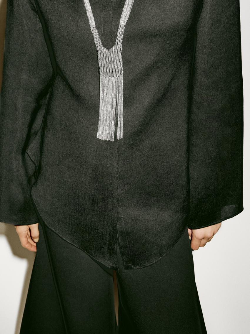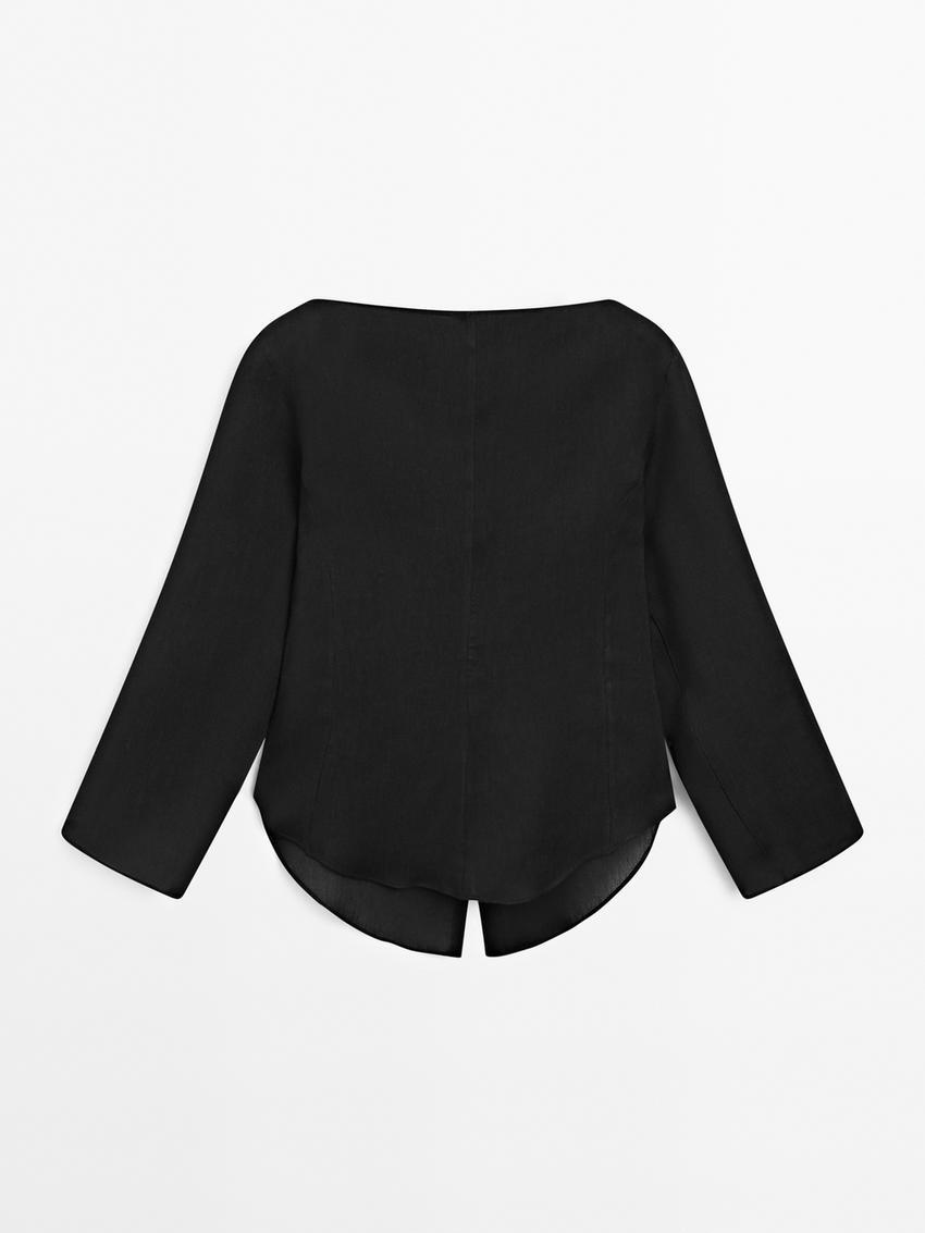 Massimo Dutti Рубашка с воротником-лодочкой из льняной смеси - Limited Edition, черный