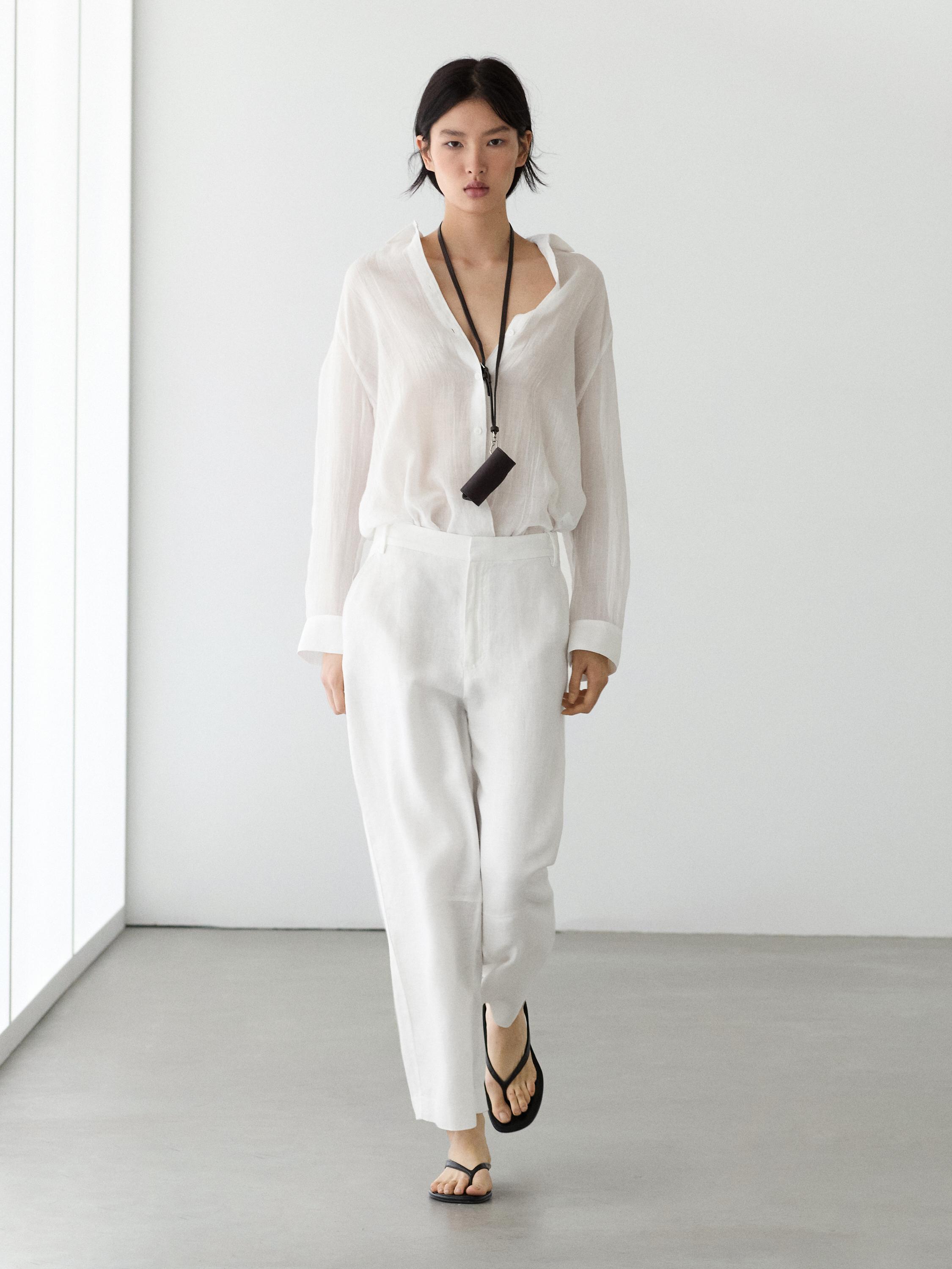 Massimo Dutti Рубашка свободного кроя с рубашечным воротником, белый