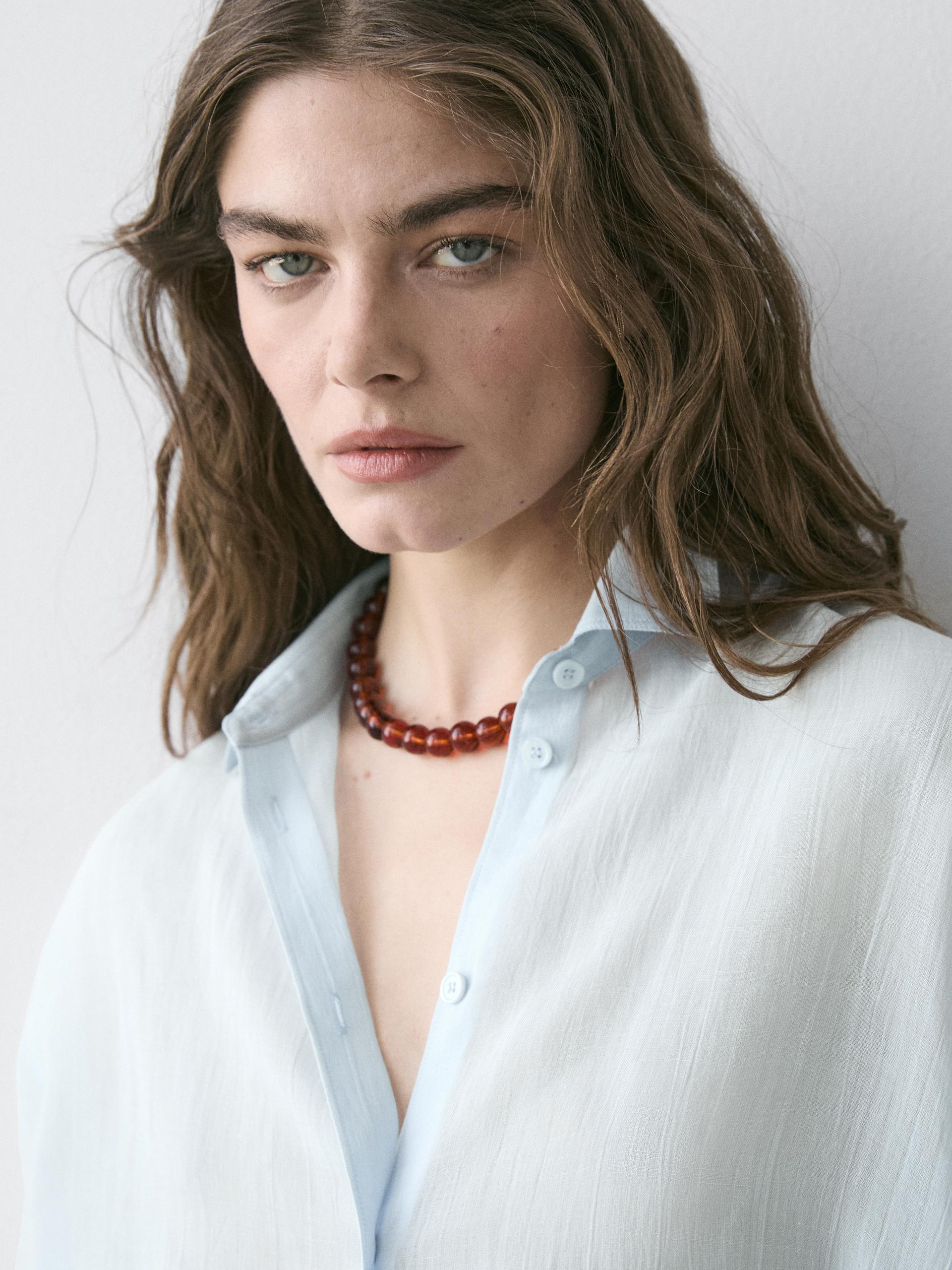 Massimo Dutti Рубашка свободного кроя с рубашечным воротником, небесно-голубой