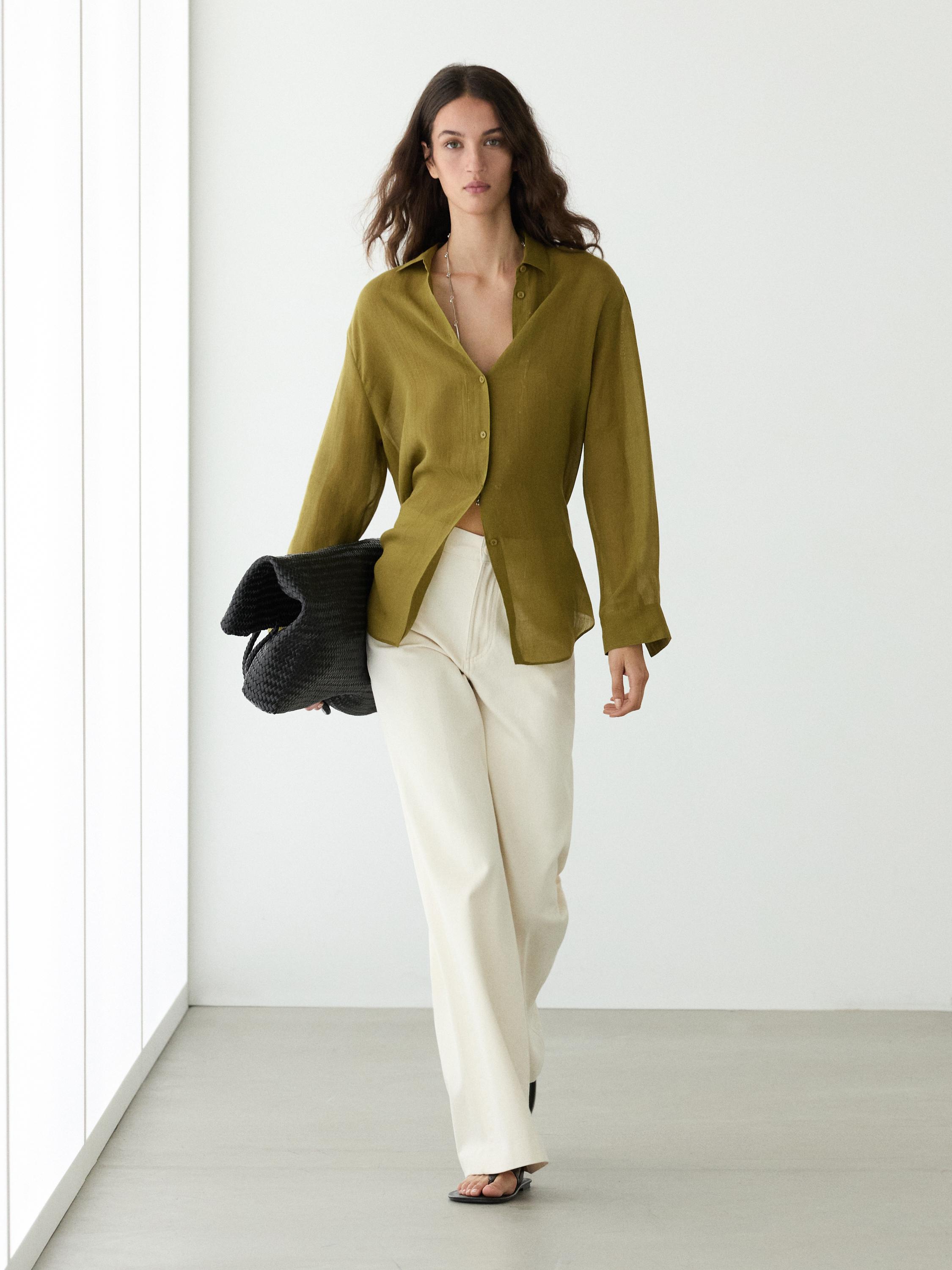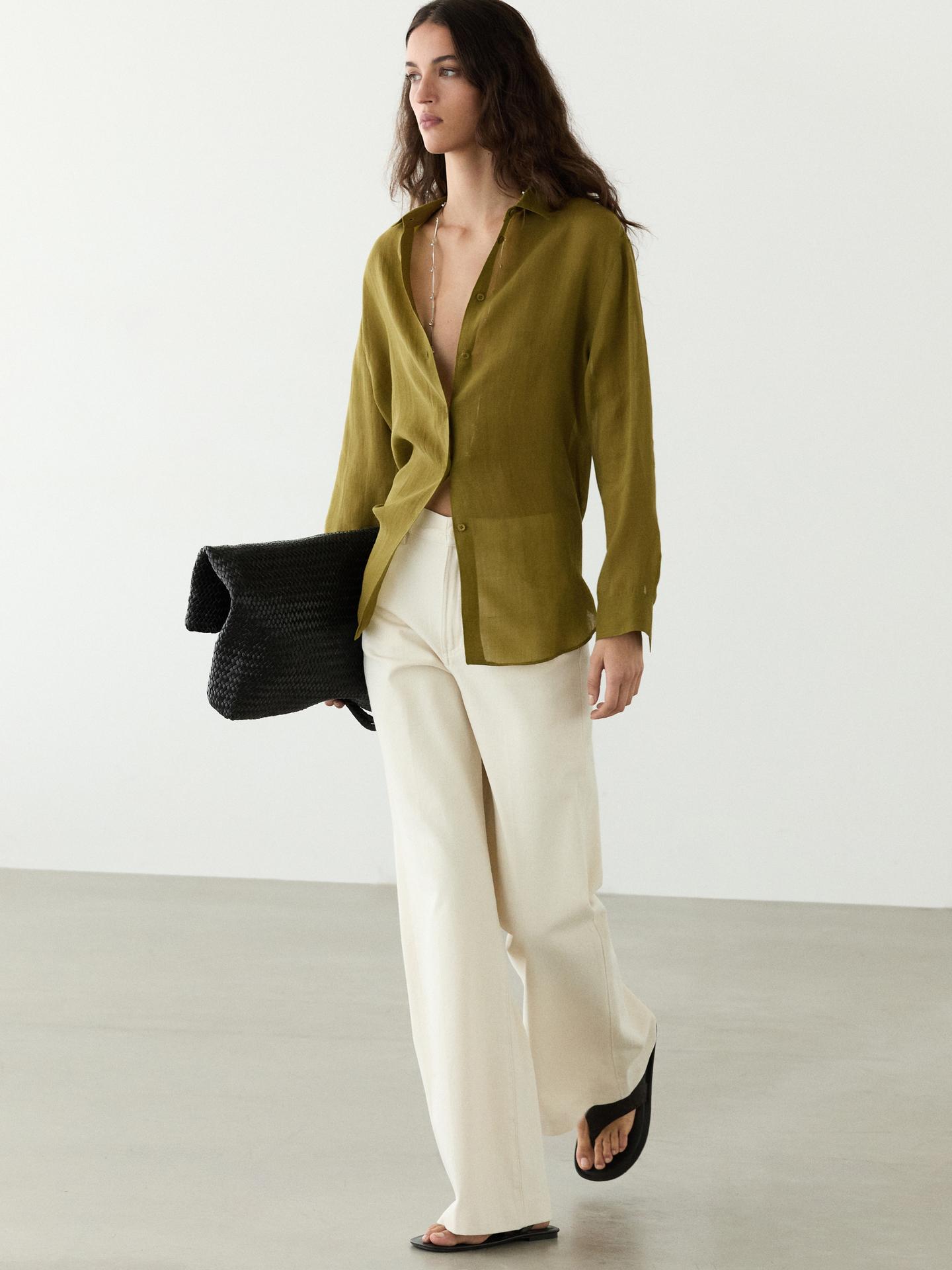 Massimo Dutti Рубашка свободного кроя с рубашечным воротником, зеленый