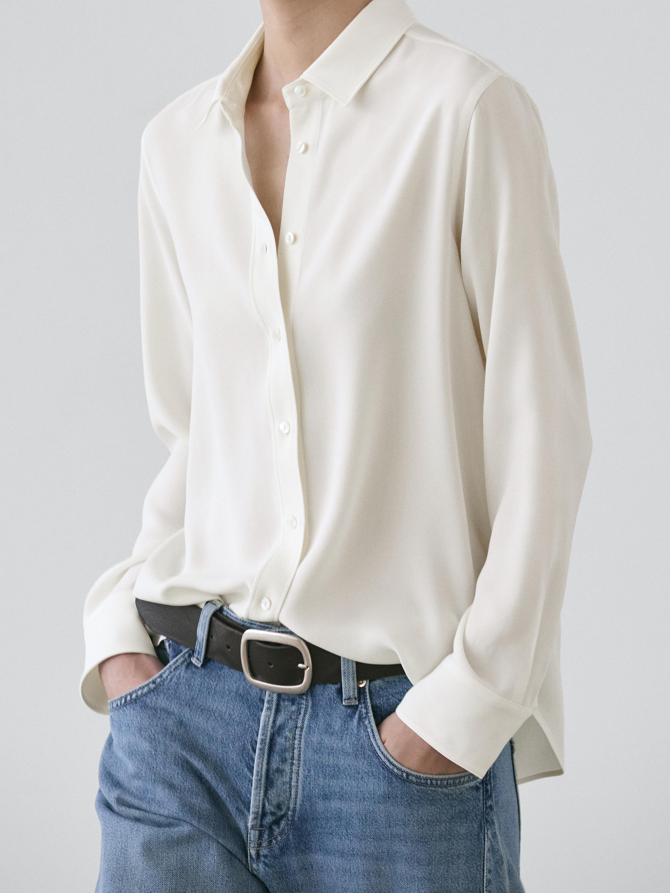 Massimo Dutti Рубашка свободного кроя с воротником, экрю