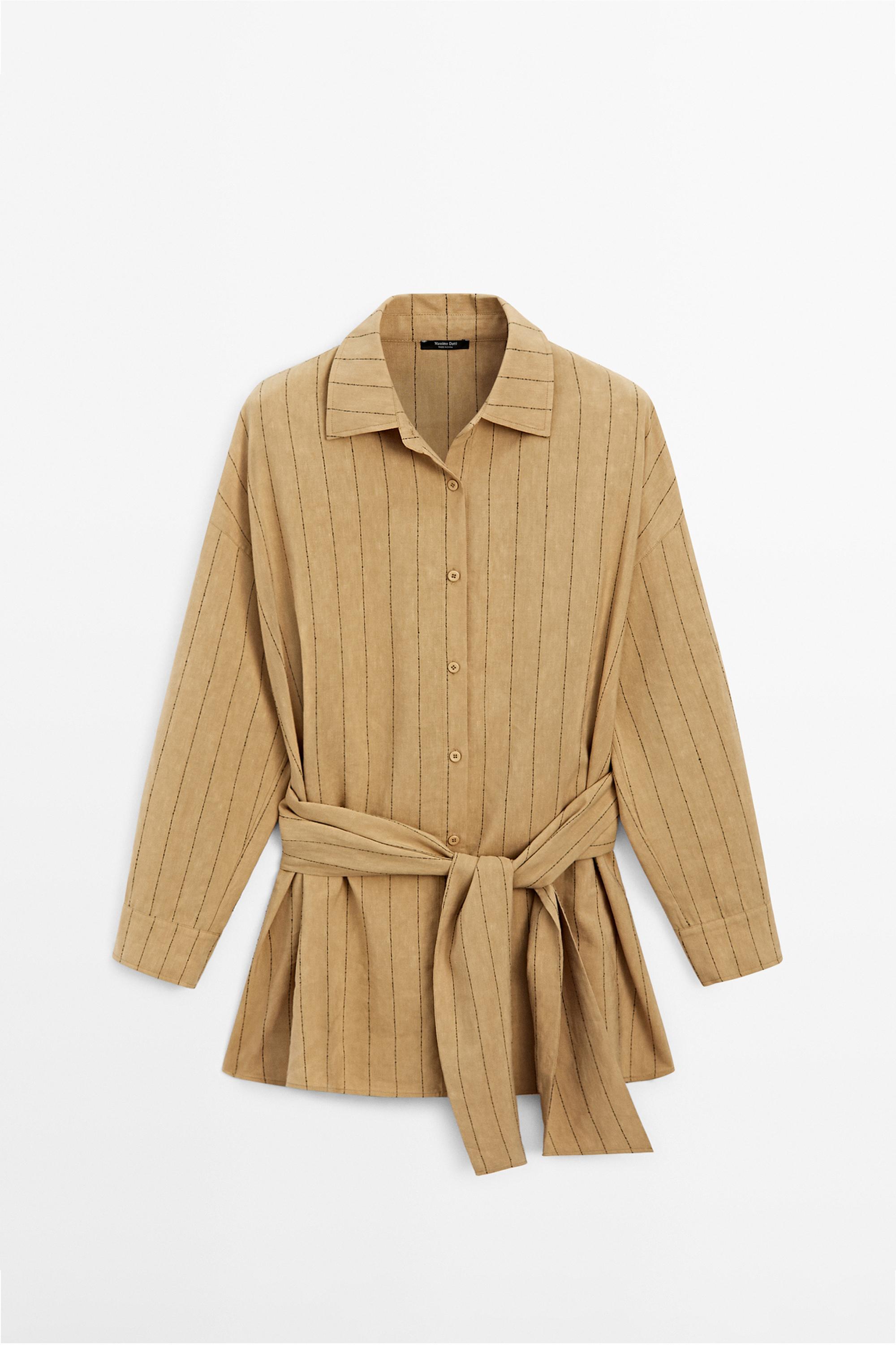 Massimo Dutti Рубашка свободного кроя в полоску с поясом, горчично-желтый