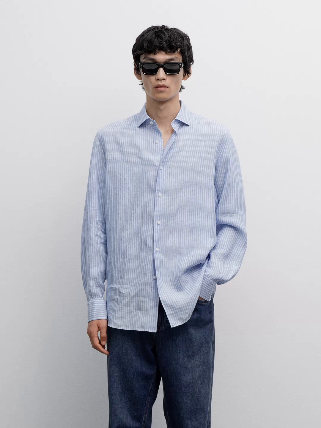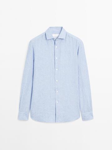 Стандартный крой: Этот фасон обеспечивает классический, но удобный стиль с немного большим пространством в области торса и рукавов для дополнительного комфорта. Длинные рукава с манжетами на пуговицах. Рубашечный воротник. Застежка на пуговицы спереди. В полоску. 100% лен.