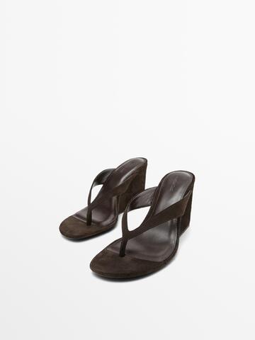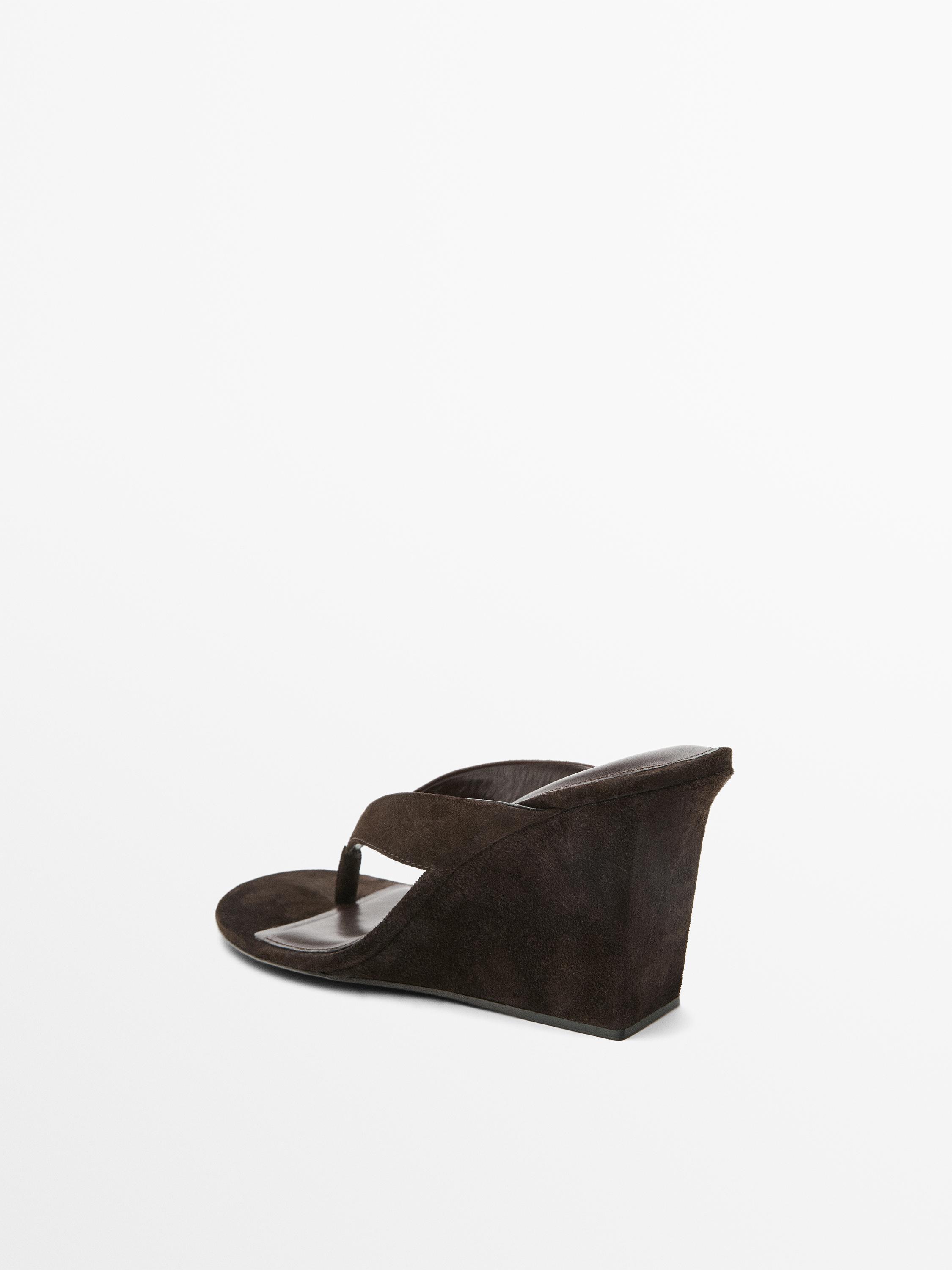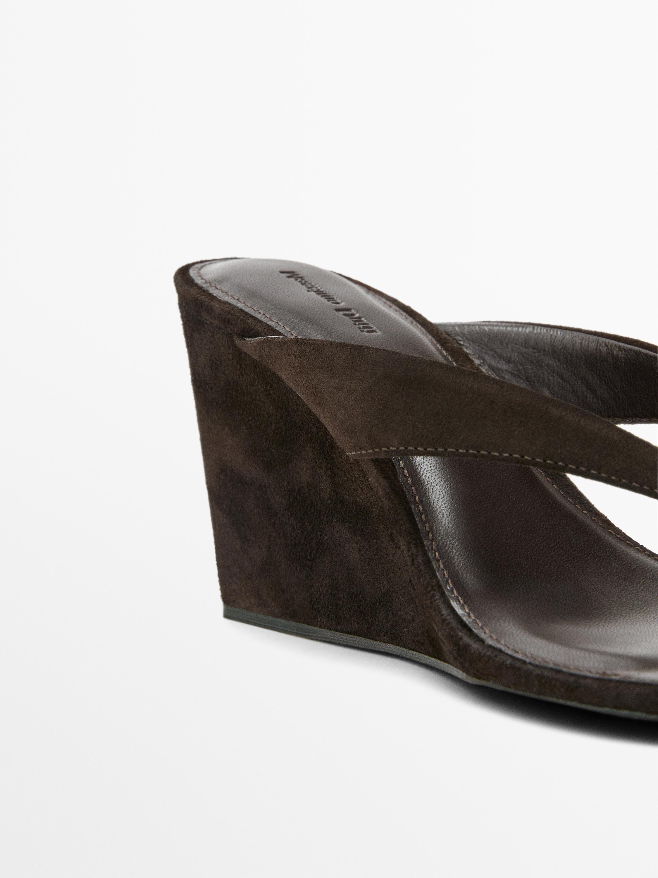 Massimo Dutti Сандалии на танкетке с разрезом на коже, коричневый