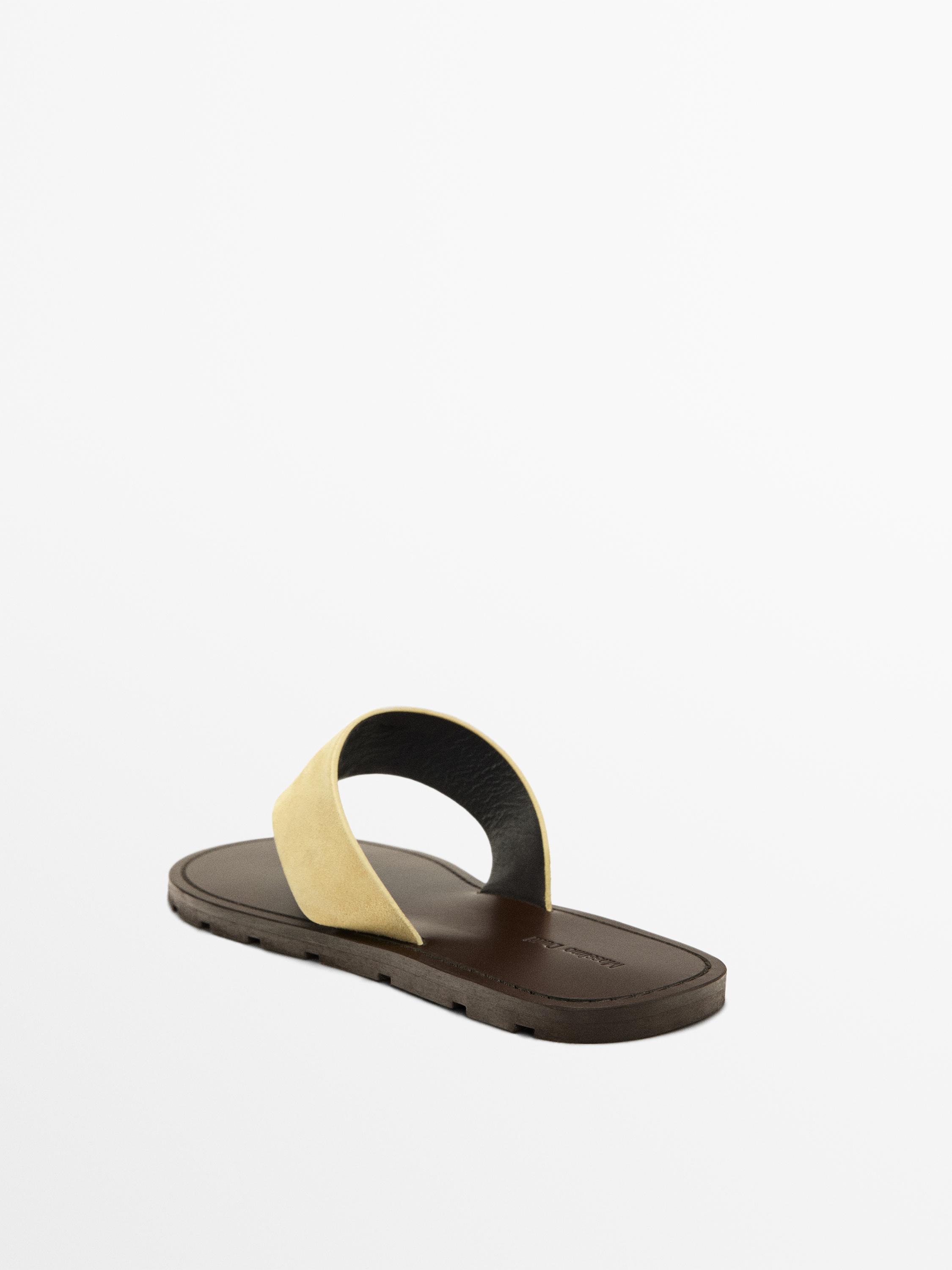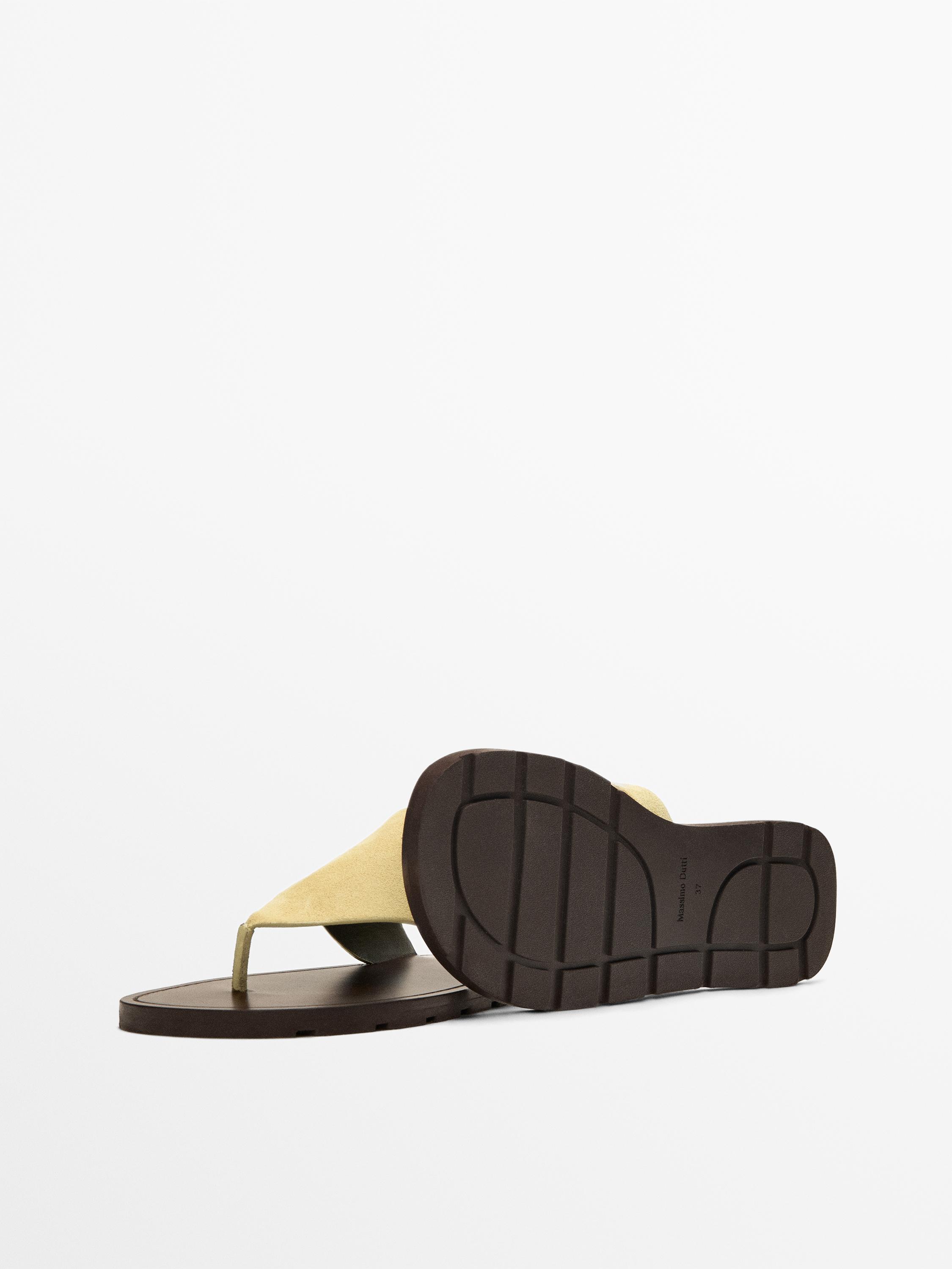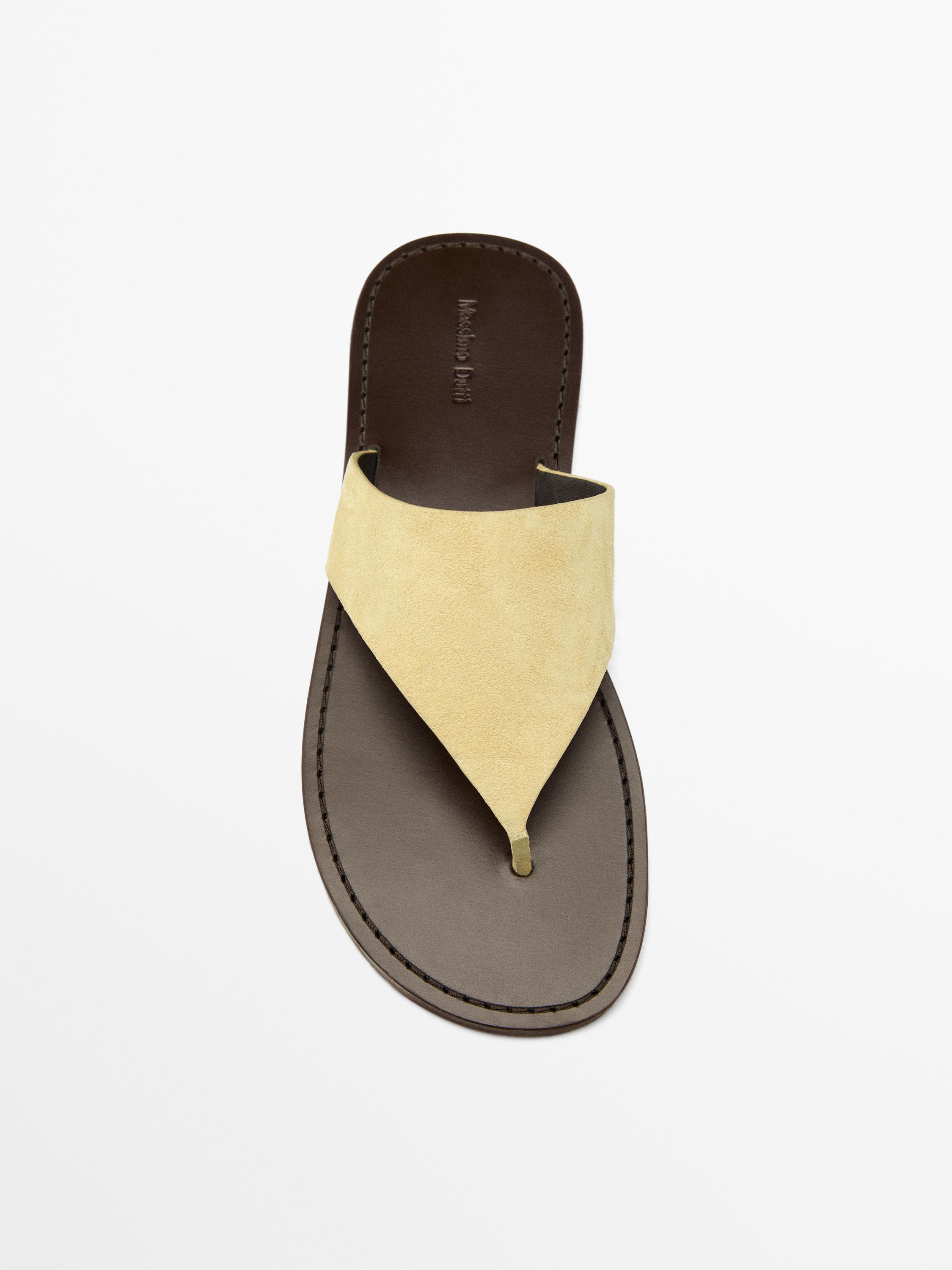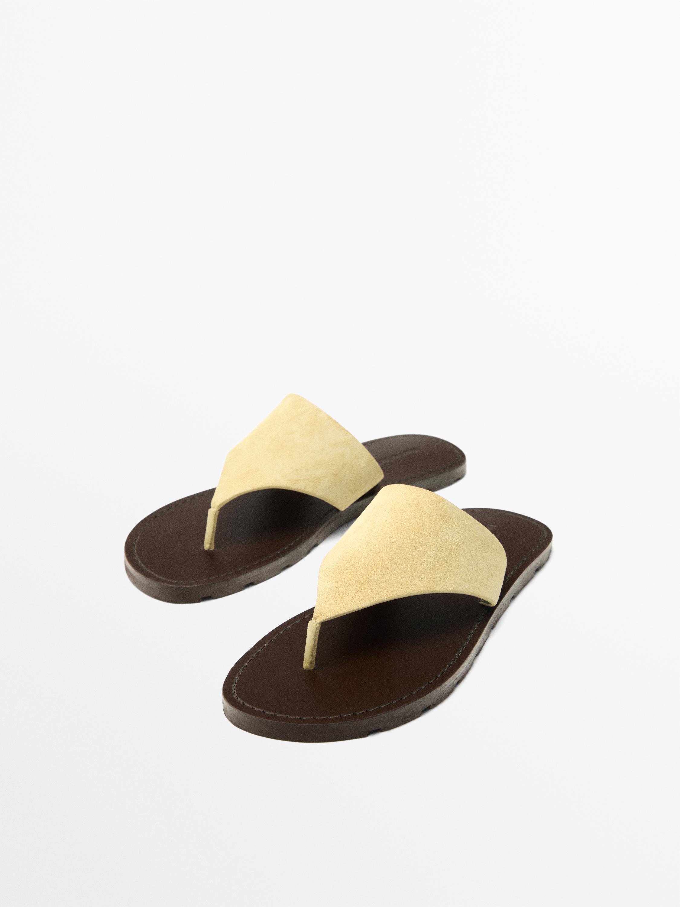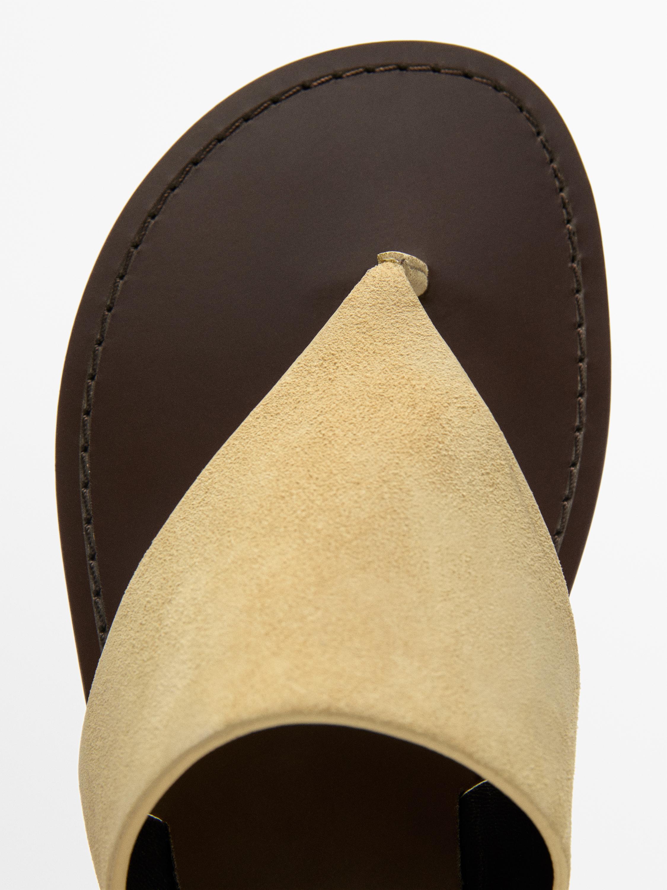 Massimo Dutti Сандалии с разделителем для пальцев ног из натуральной кожи, бежевый