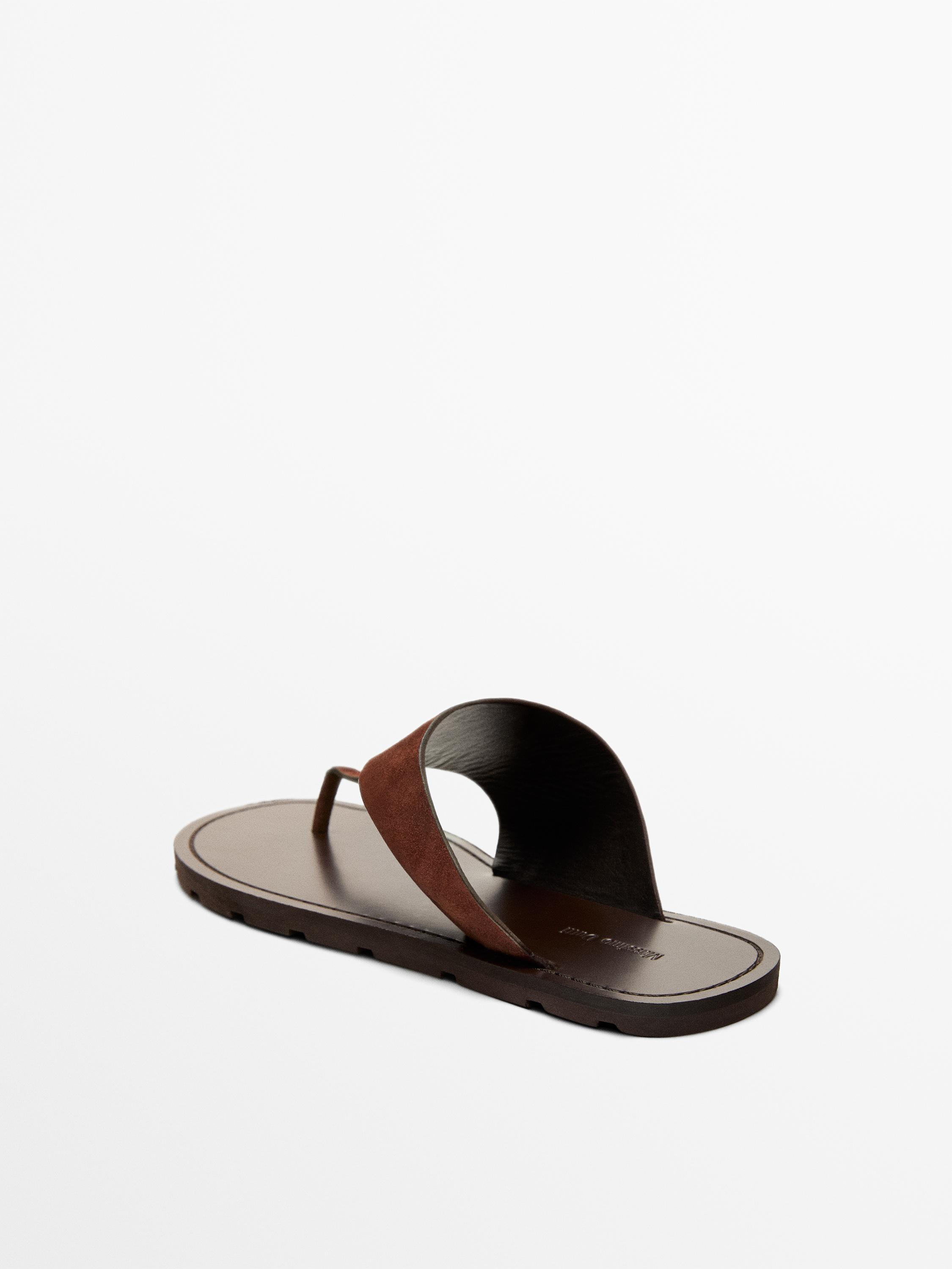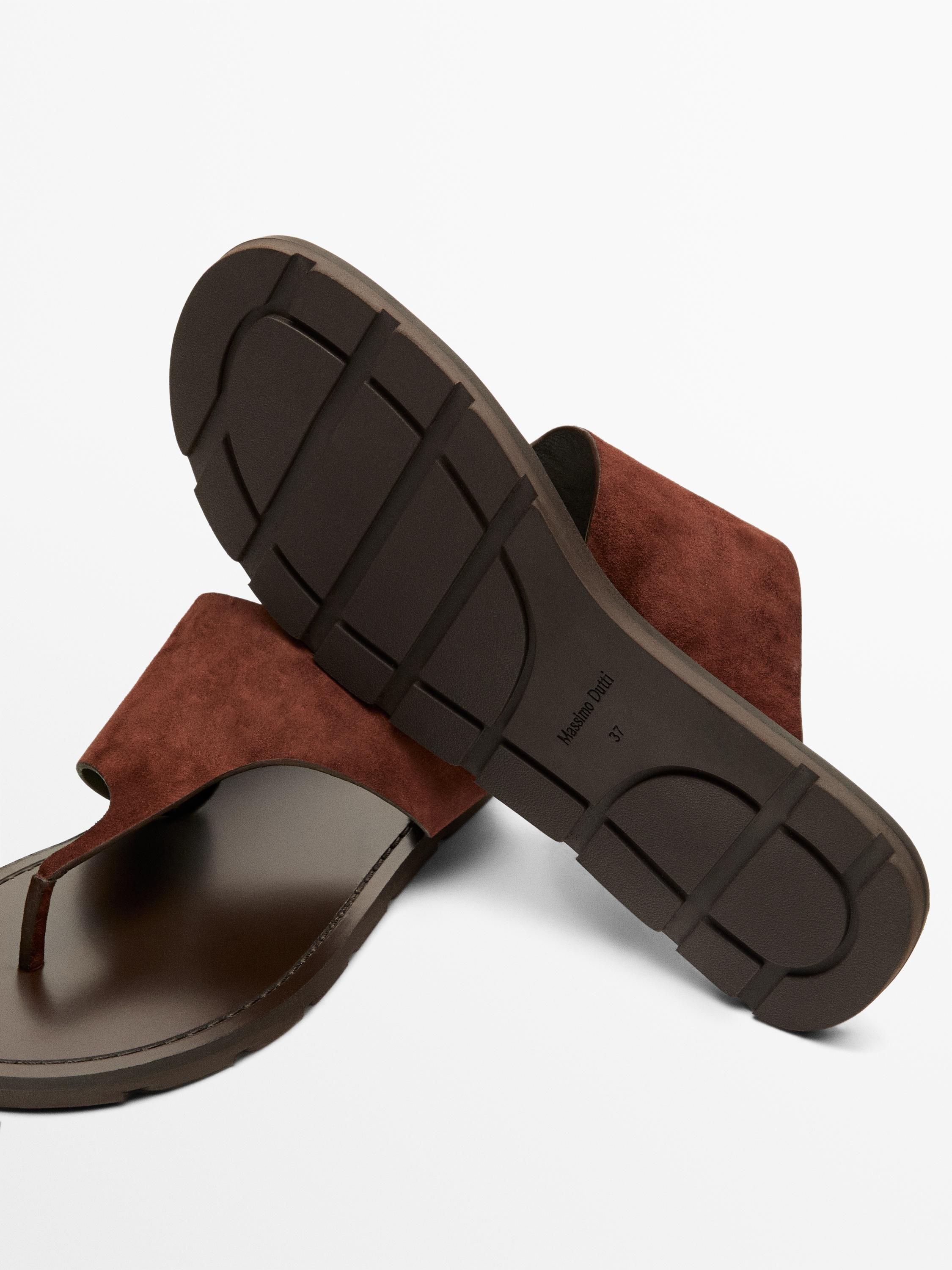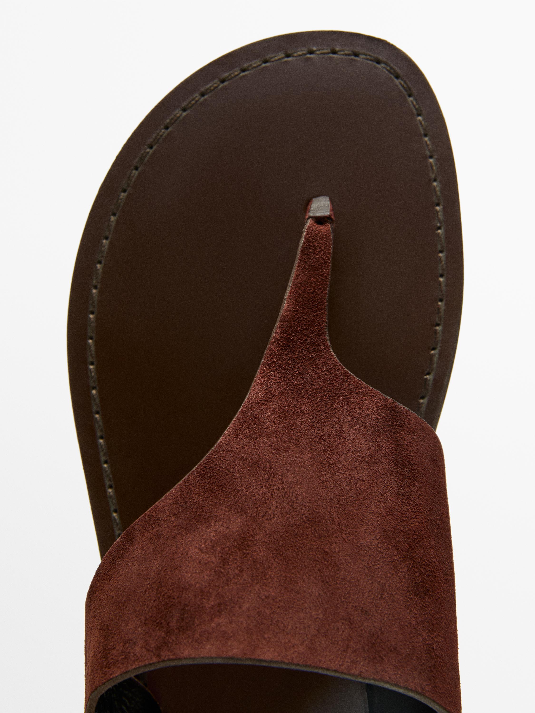 Massimo Dutti Сандалии с разделителем для пальцев ног из натуральной кожи, бургунди