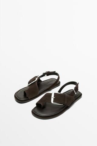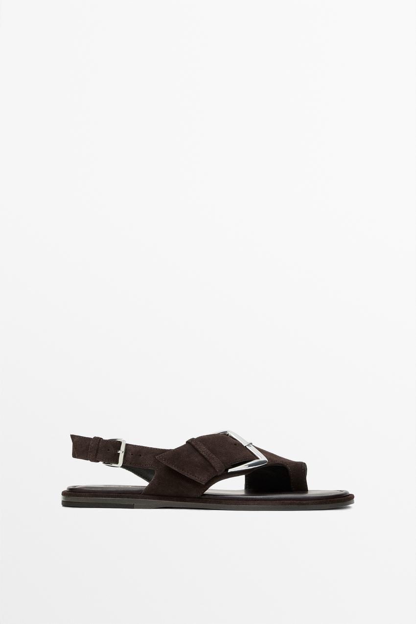 Massimo Dutti Сандалии-шлепанцы на плоской подошве с пряжкой, коричневый
